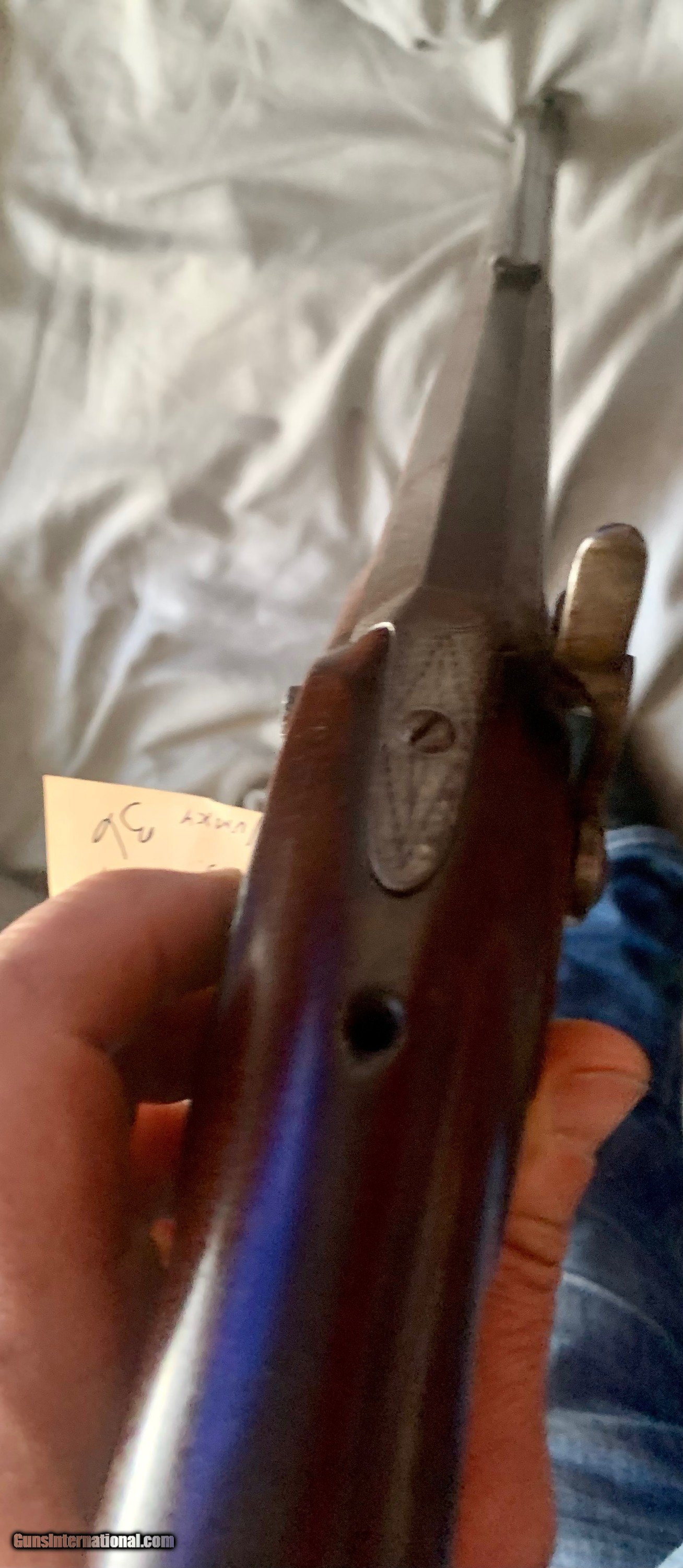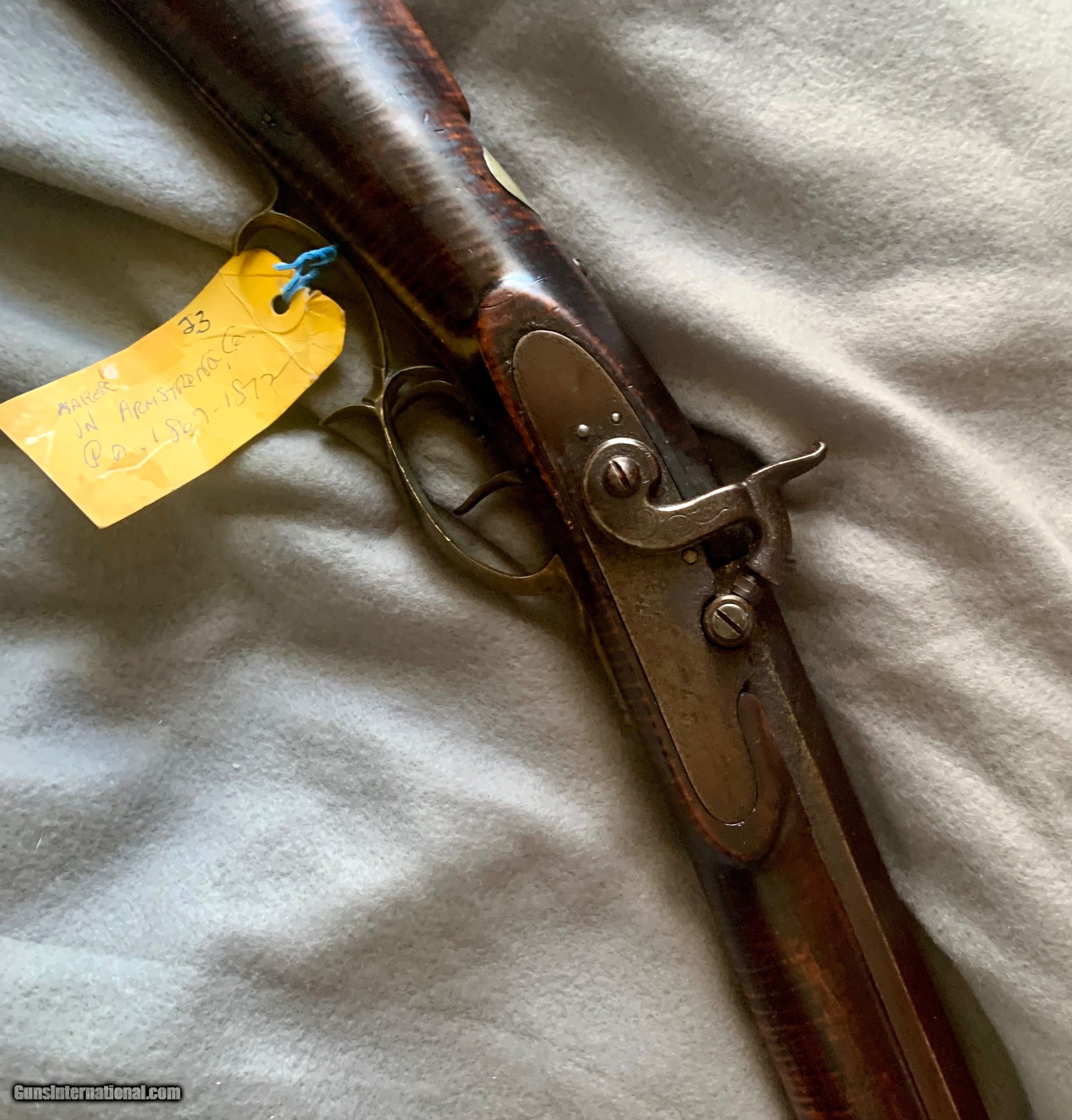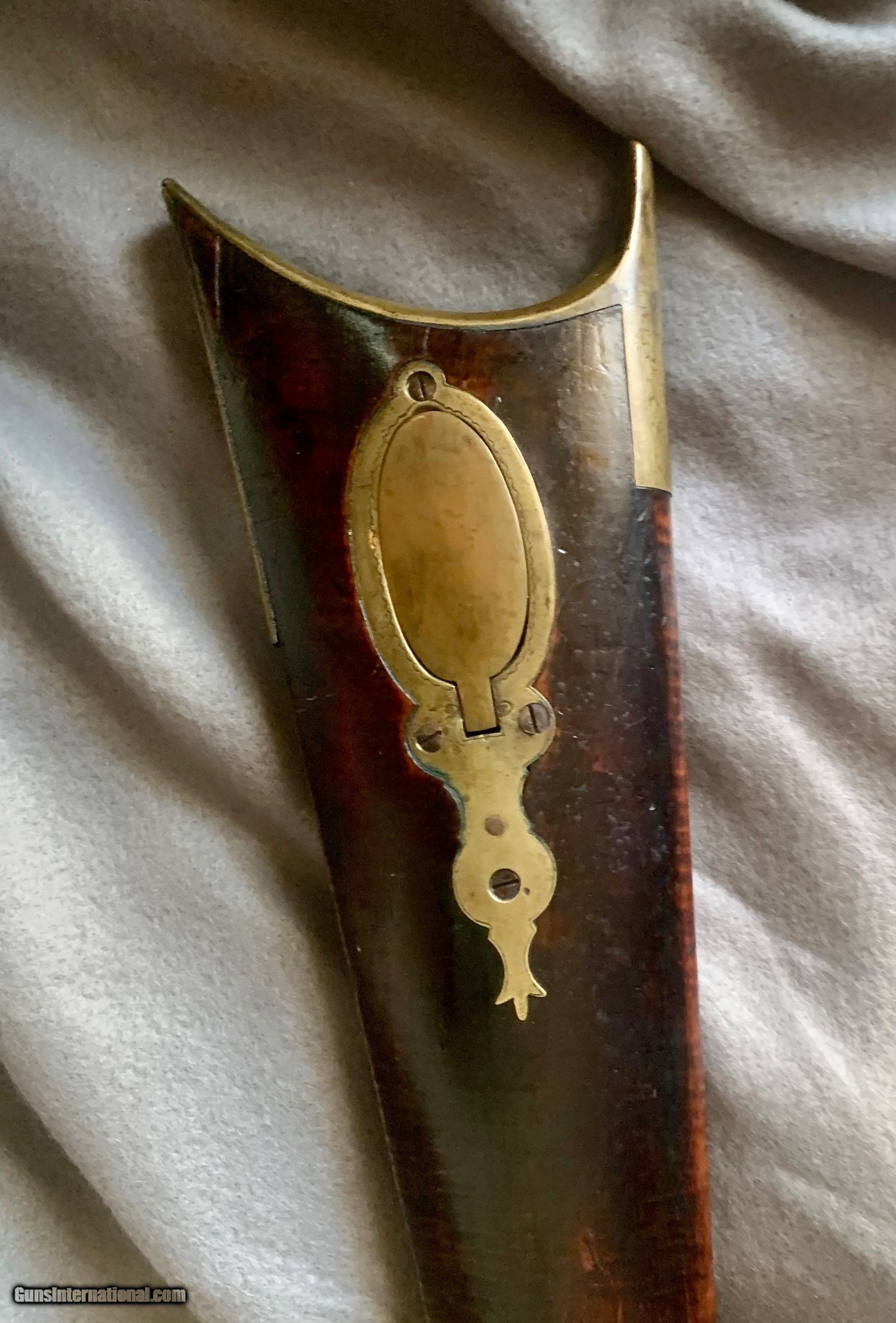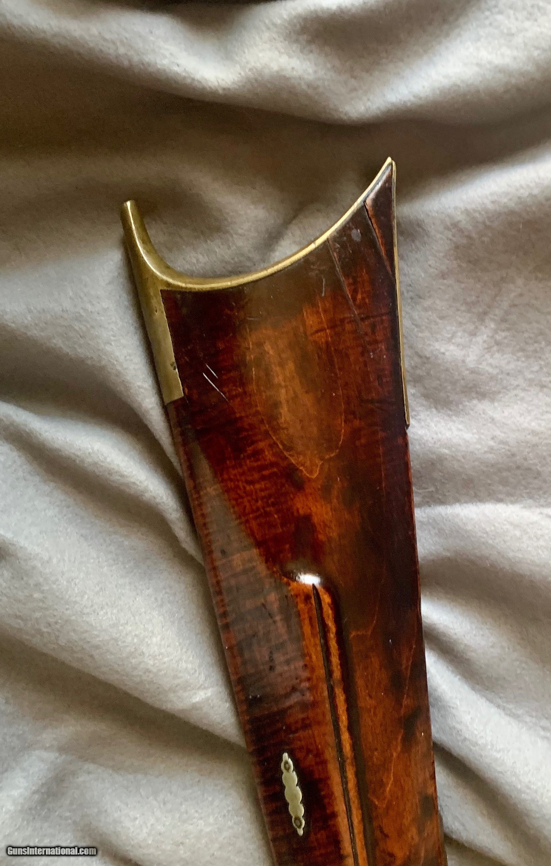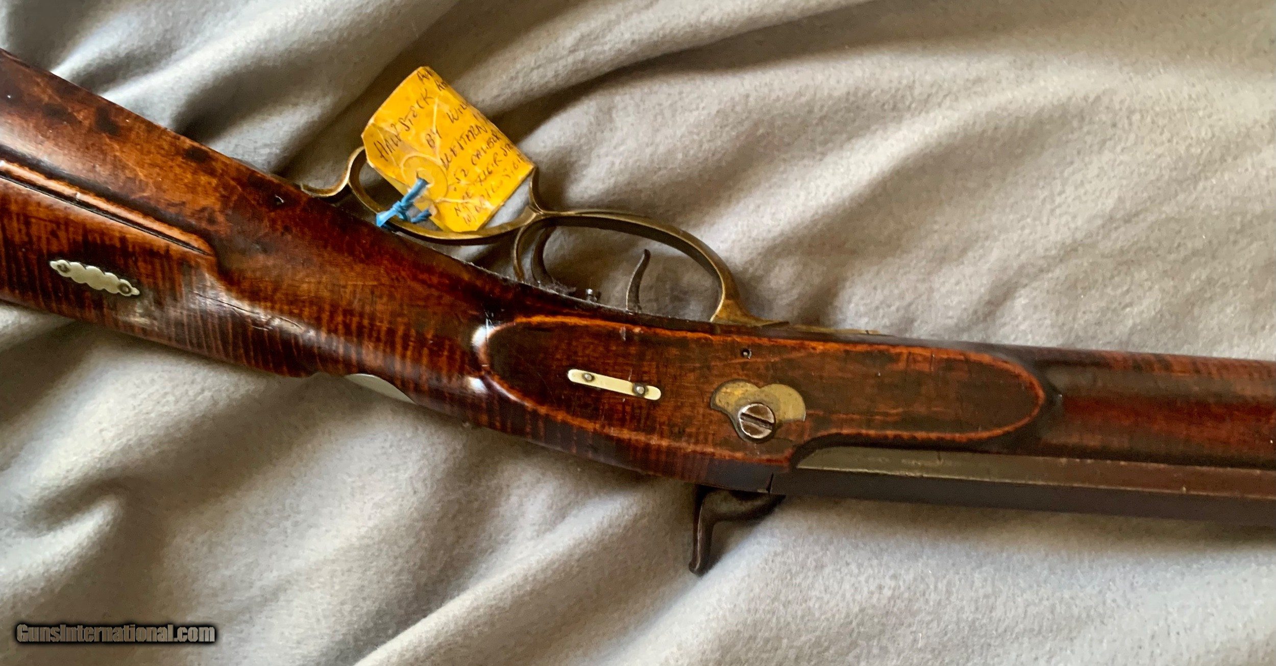 Description: Very fine William King percussion rifle of western PA c 1840's. .52 caliber, 37" heavy octagon barrel with original sights. signed script top rear of barrel. nice tiger striped maple stock. nice patchbox action performs as it should. cock, fire and safety set. offers/trades considered SOLD SOLD Antique: Yes |