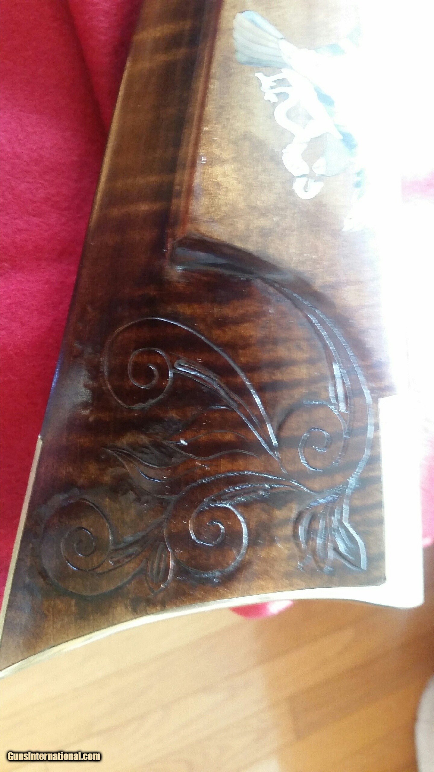 Description: custom made 45 cal early virginia stocked in A+A+A+A+ curly maple coleraine barrel 38 inches long round bottom rifled and alot of one of a kind castings barrel pins have inlays to protect the stock brass patch box with hidden release to open engraved carved has not been shot comes with 2 sets of sights primitive and williams peep sights ready to show off at deer camp SOLD Rifle Caliber: .45 Manufacturer: TONY ROBERTS Barrel Length: 38 INCHES Condition: EXCELLENT Metal Condition: EXCELLENT Wood Condition: EXCELLENT Bore Condition: PRISTINE Action: PERCUSSION Triggers: DOUBLE SET Stock: CURLY MAPLE Stock Drop: 2 1/2 Stock Comb: 5 Butt Pad: BRASS LOP: 13 3/4 Weight: 8 PNDS Sights: PEEP Manufacture Date: 2019 Engraving: YES Extras: LOTS |