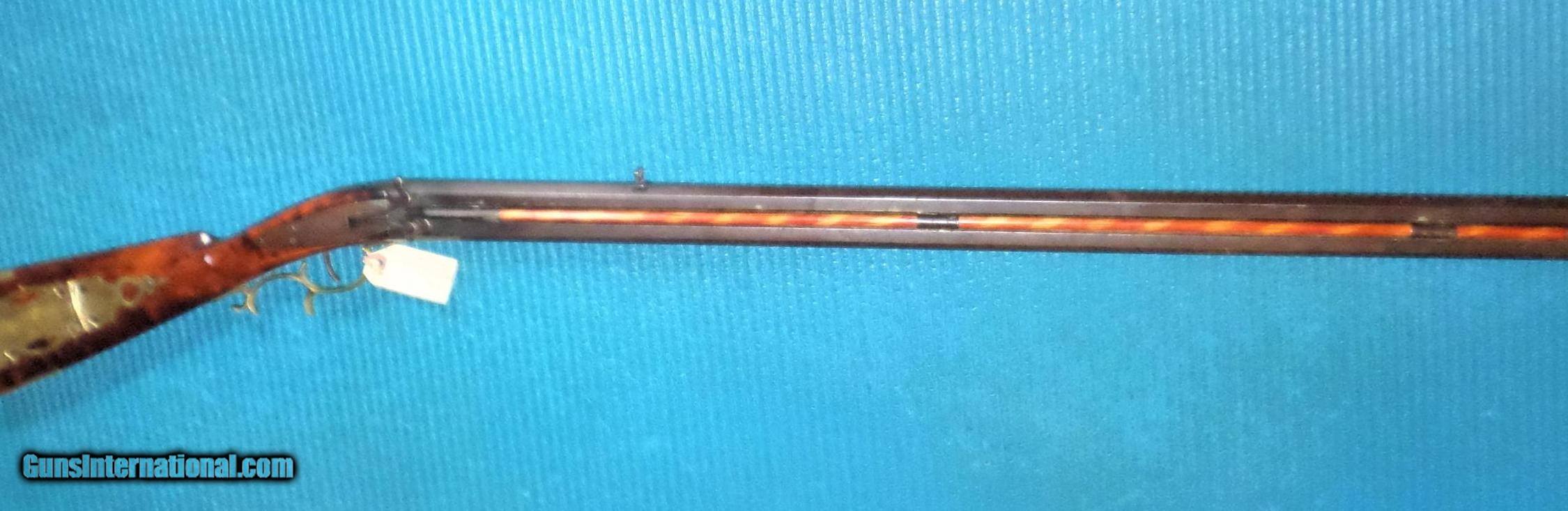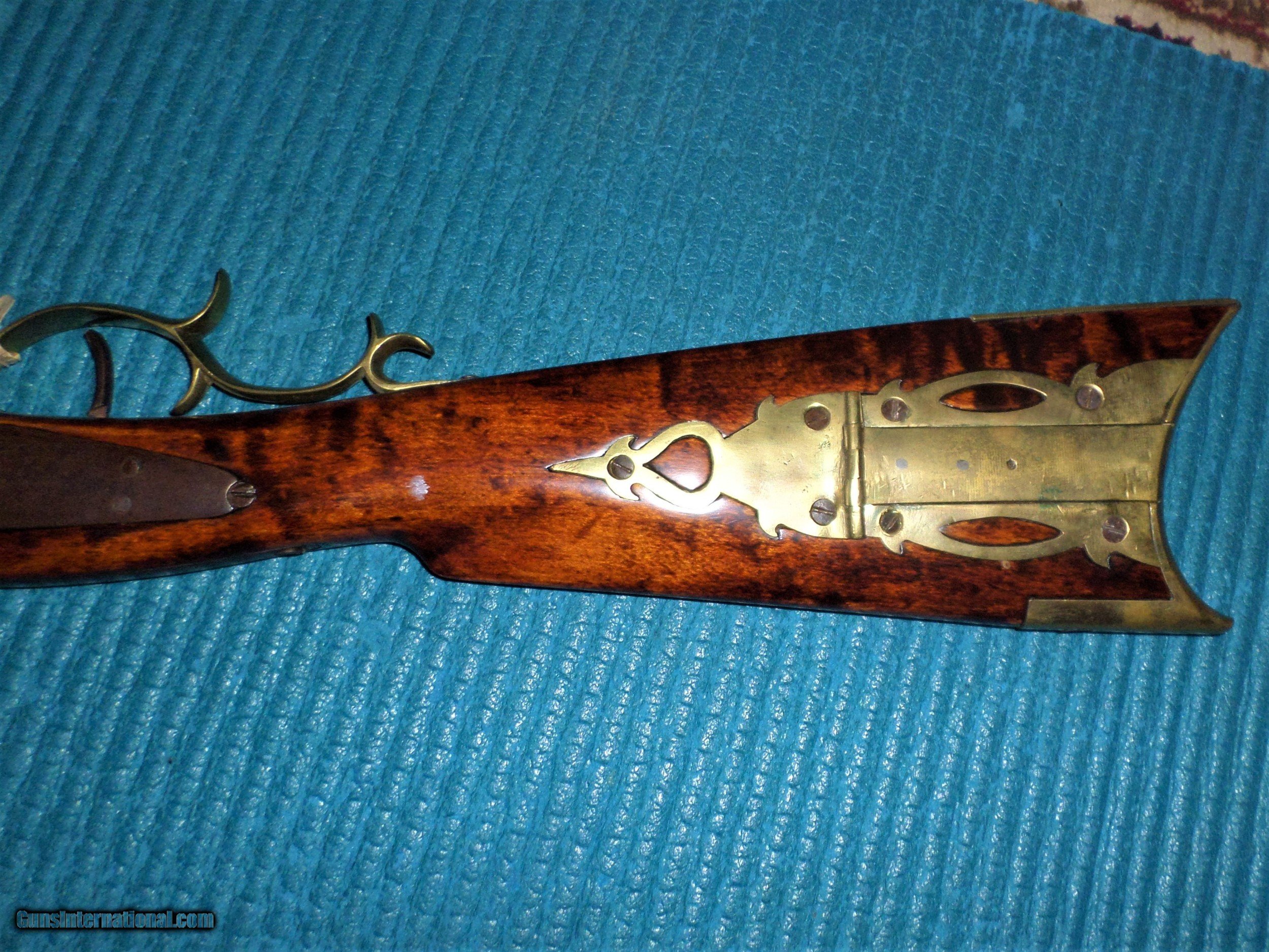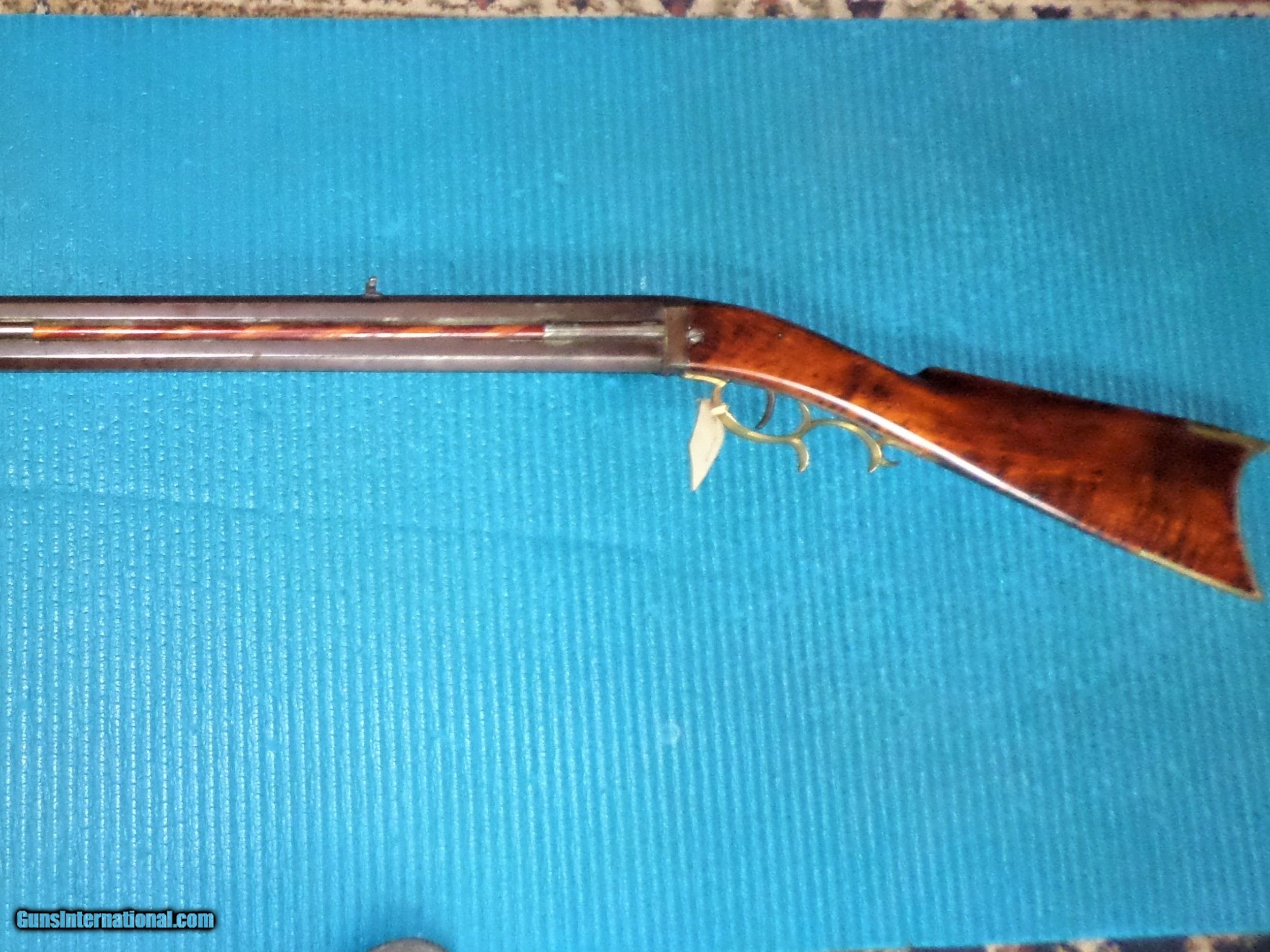 Description: Beautiful Unmarked "Mule Ear" Kentucky Rifle. .38 caliber rifle/ 28 gauge 34 1/2" Barrels, patchbox S. Ward of North Carolina Beautiful original patina SOLD |