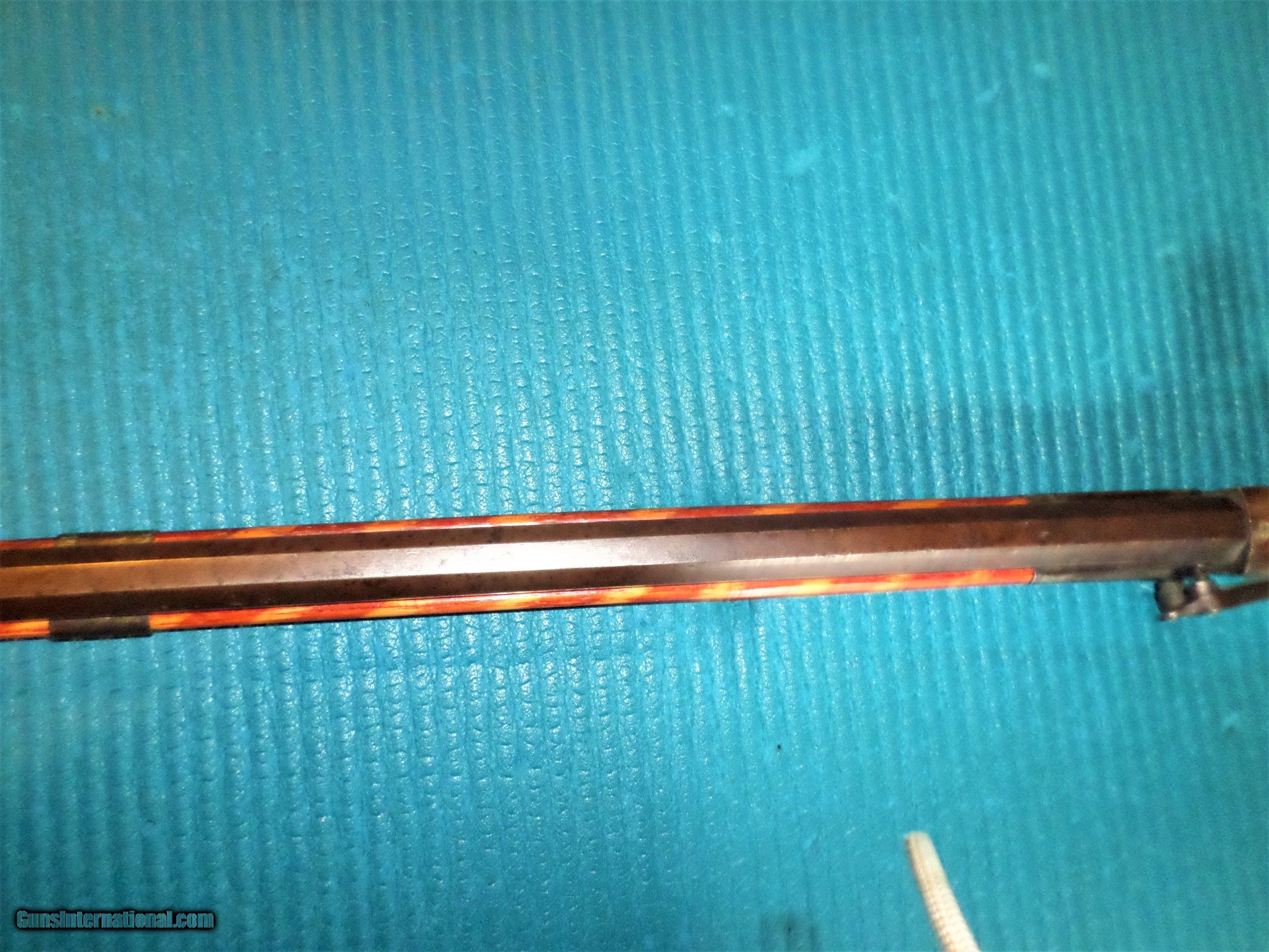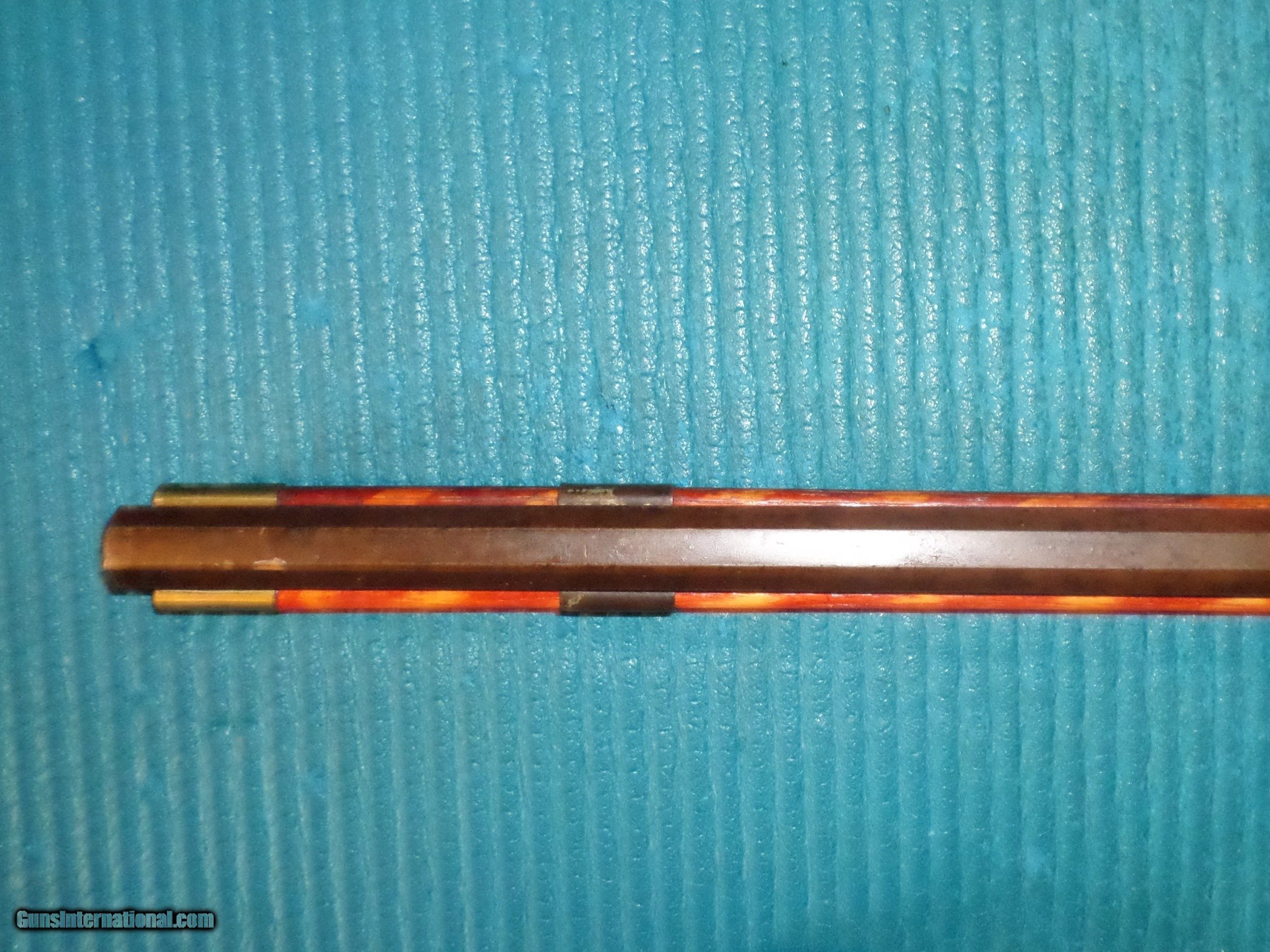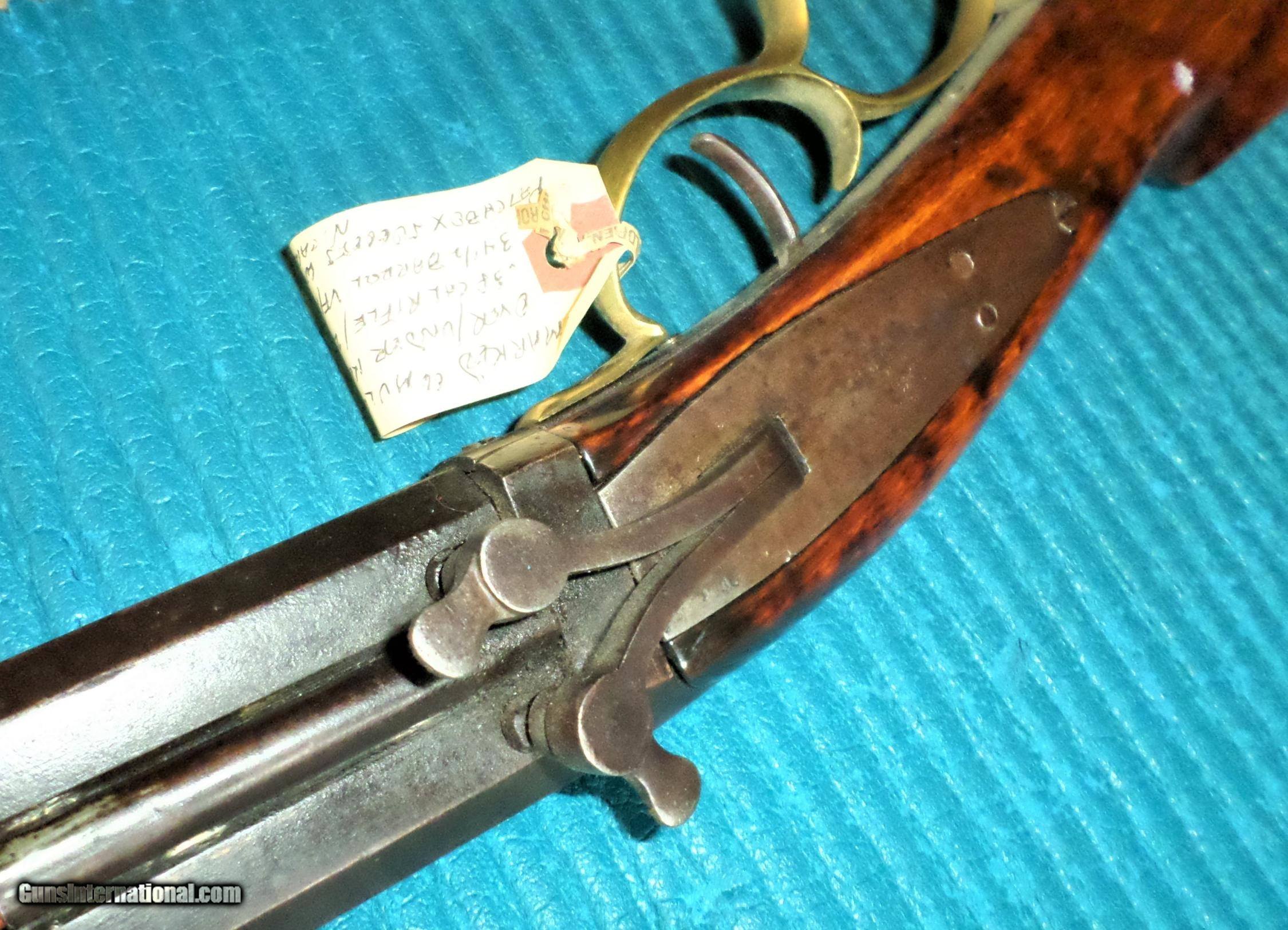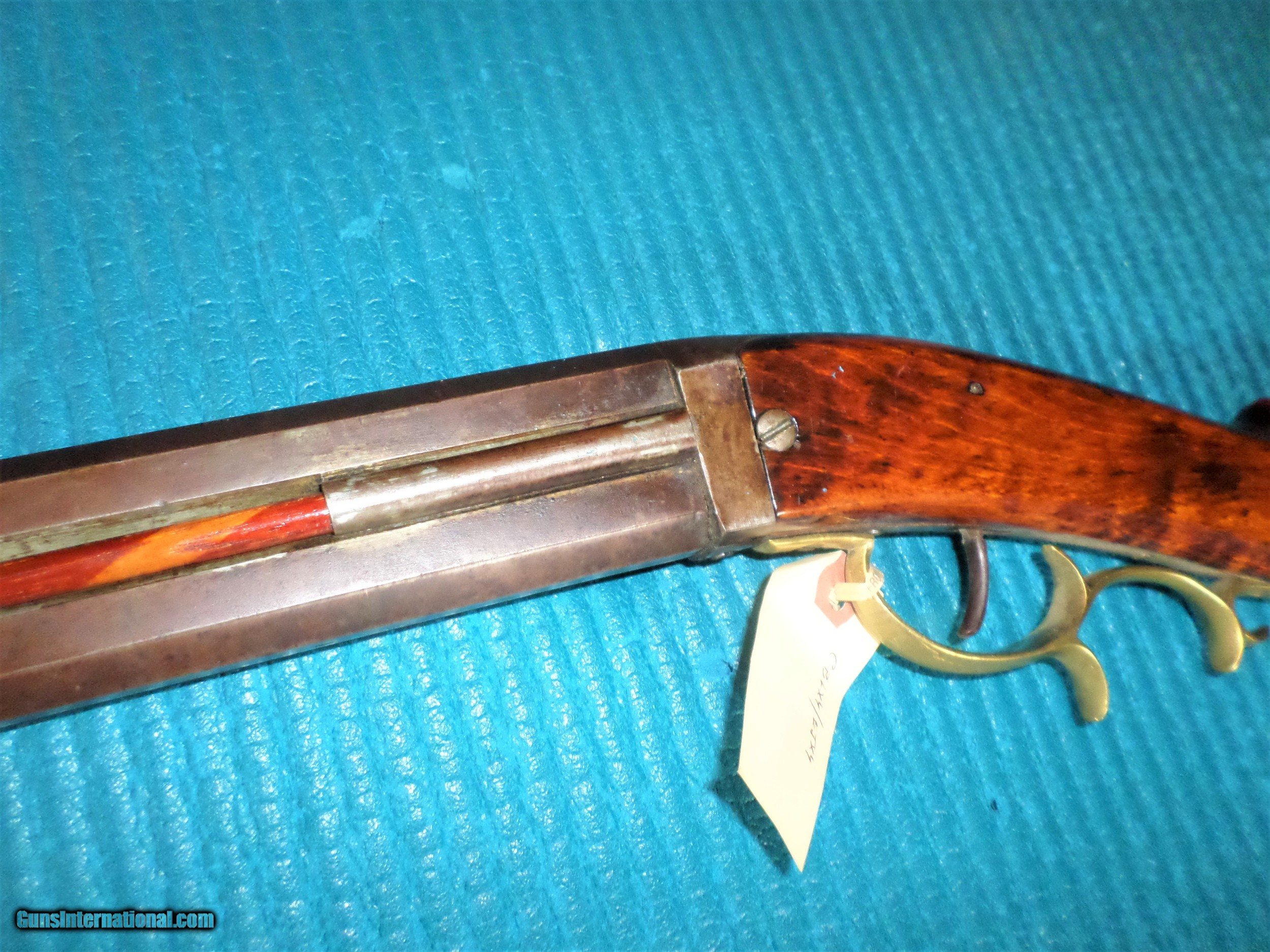 Description: Beautiful Unmarked "Mule Ear" Kentucky Rifle. .38 caliber rifle/ 28 gauge 34 1/2" Barrels, patchbox S. Ward of North Carolina Beautiful original patina SOLD |
