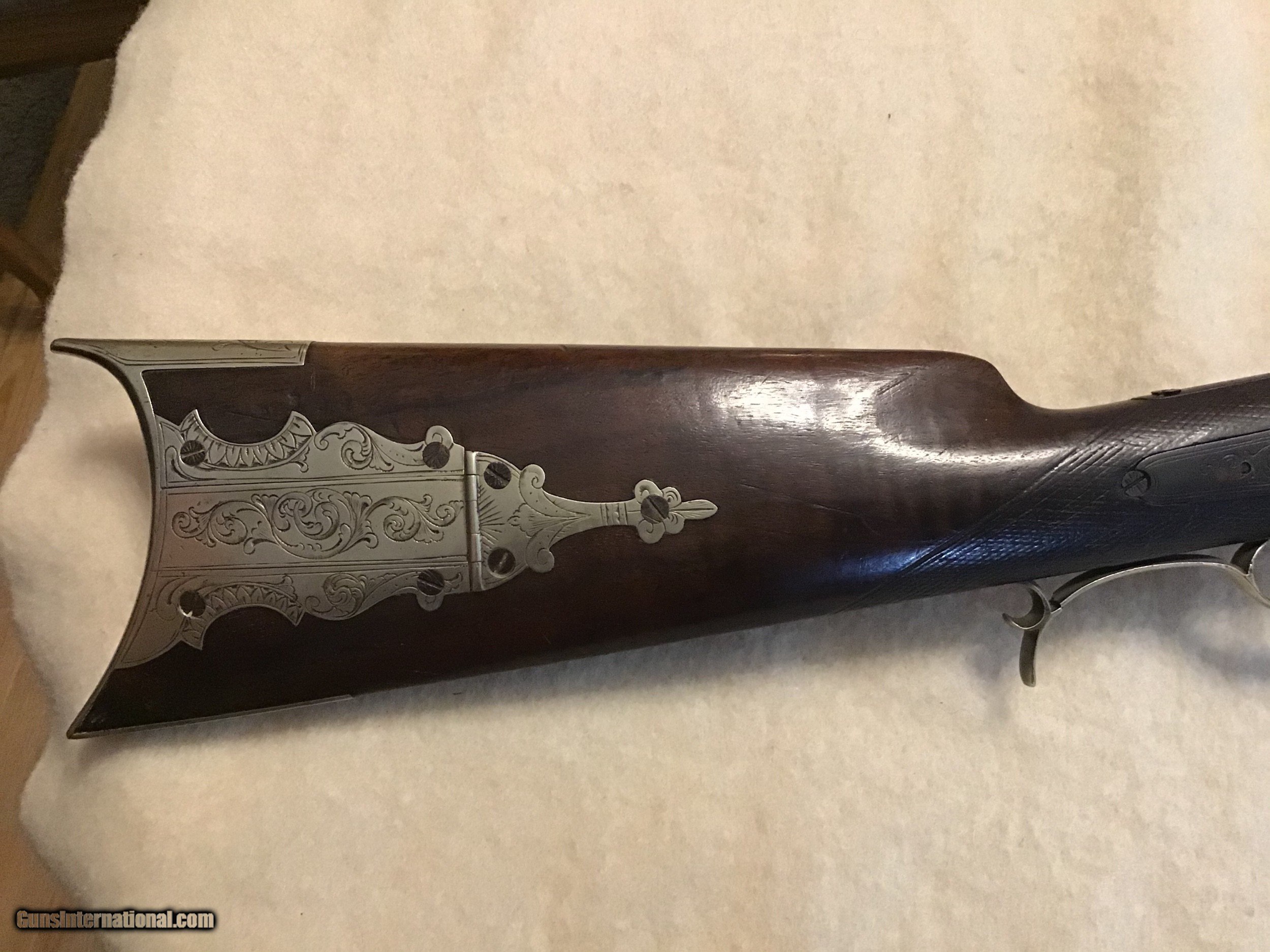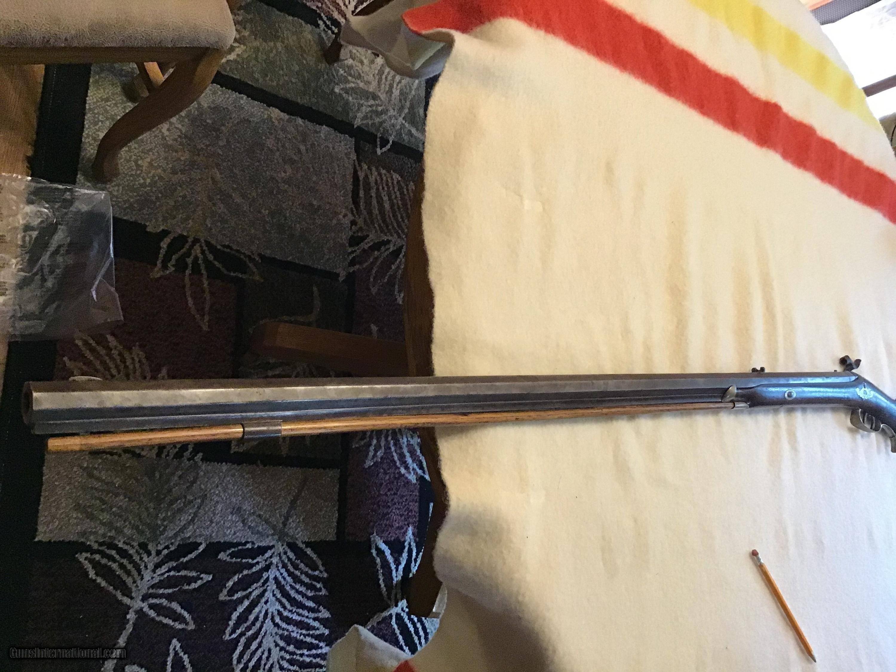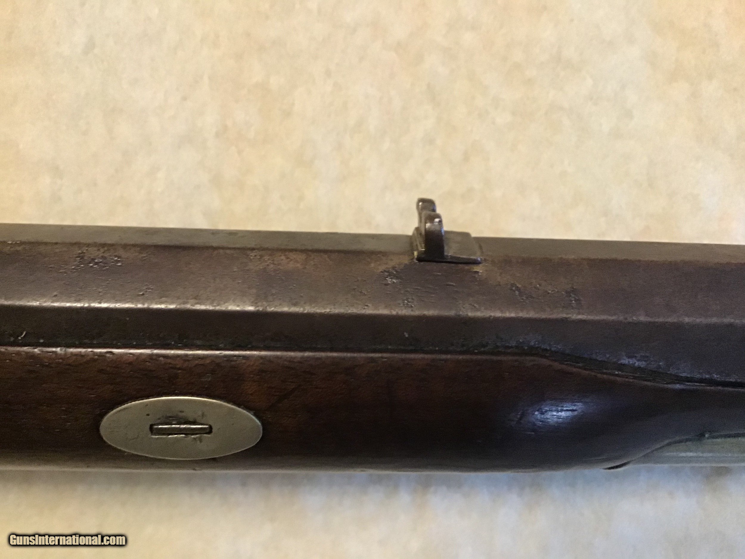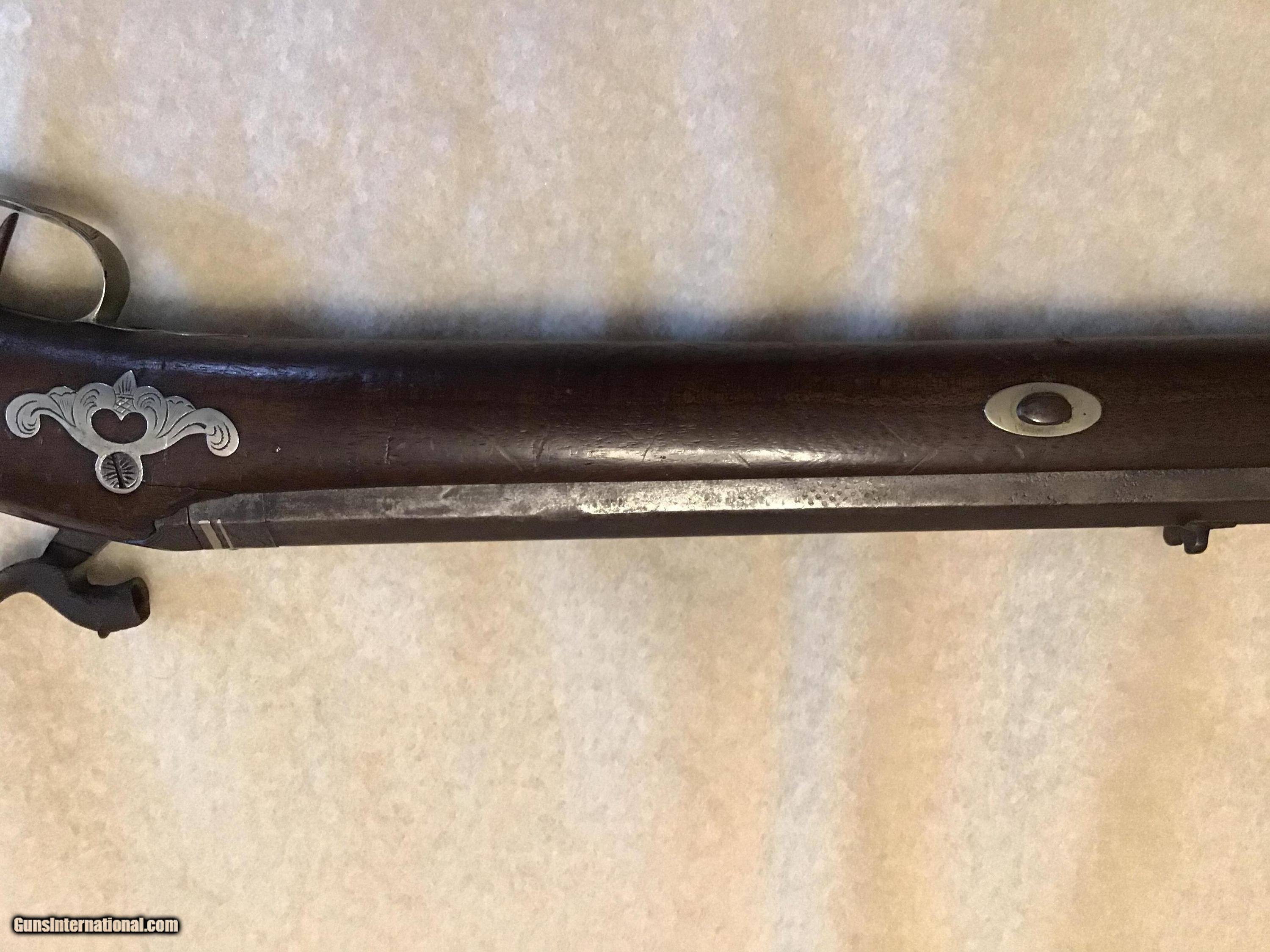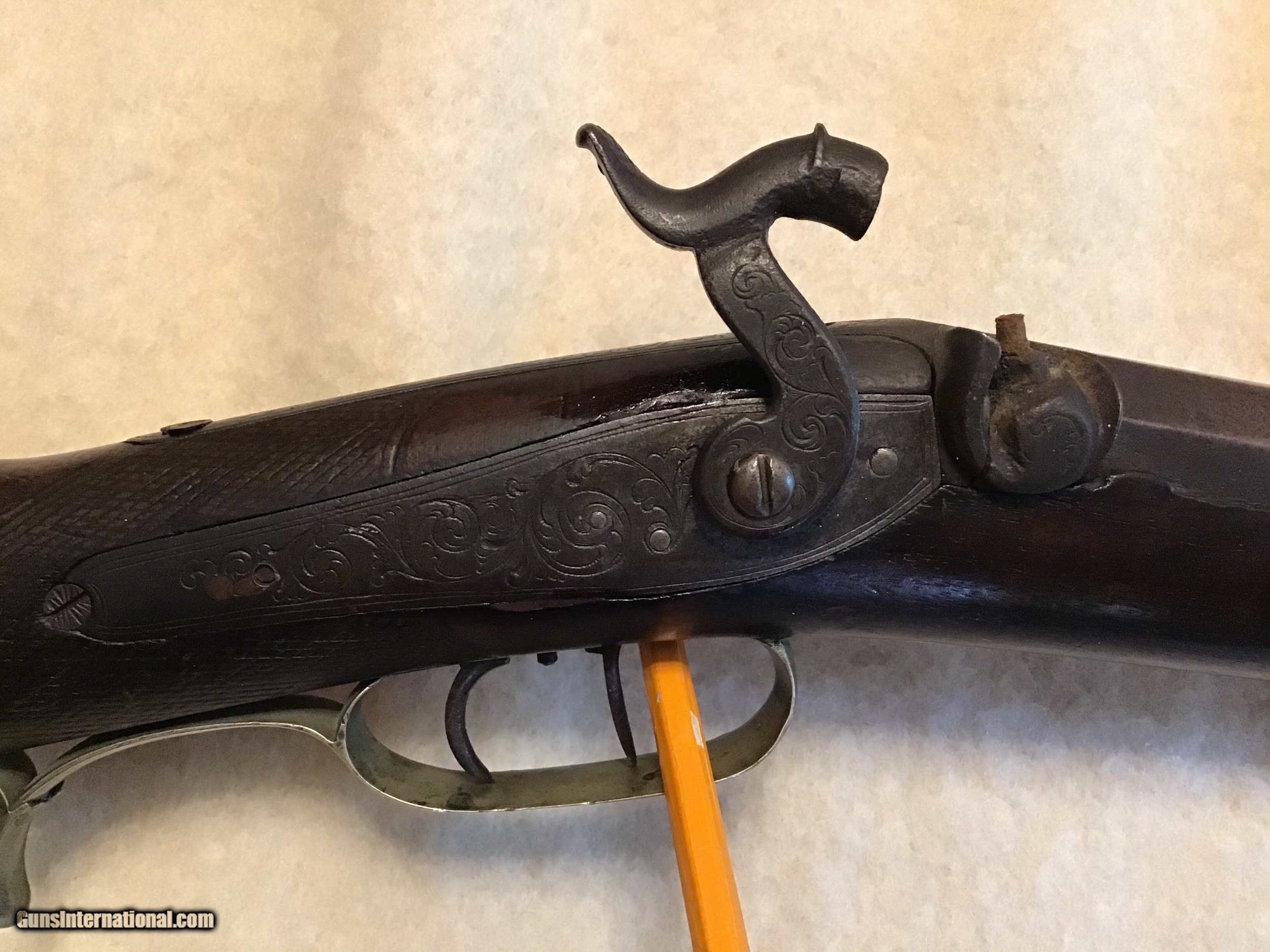 Description: on Hold Sale Pending. Kentucky/Pennsylvania/plains 50 caliber rifle marked D Fish, New York, circa 1845. Fish is listed in the Newy York gun makers book as in business before and after 1845. The lock and hammer are engraved with a working double set trigger. The 41 inch barely has both front and rear sights and is approximately 50 rifled calliber. The functioning brass patch box but plate and trigger gaurd are also engraved. There are also a deer and a brass inlay on the left side of the stock the half stock is nice but has several chips missing along the barrel channel visible in the photos. The lock and barrel have a brown patina. A nice old antique rifle. Feel free to contact me with any questions. Shipping will be actual cost approximately $50.00 by usps insured priority mail. On Hold Sale Pending SOLD Antique: Yes Manufacturer: D. Fish Barrel Length: 41” |