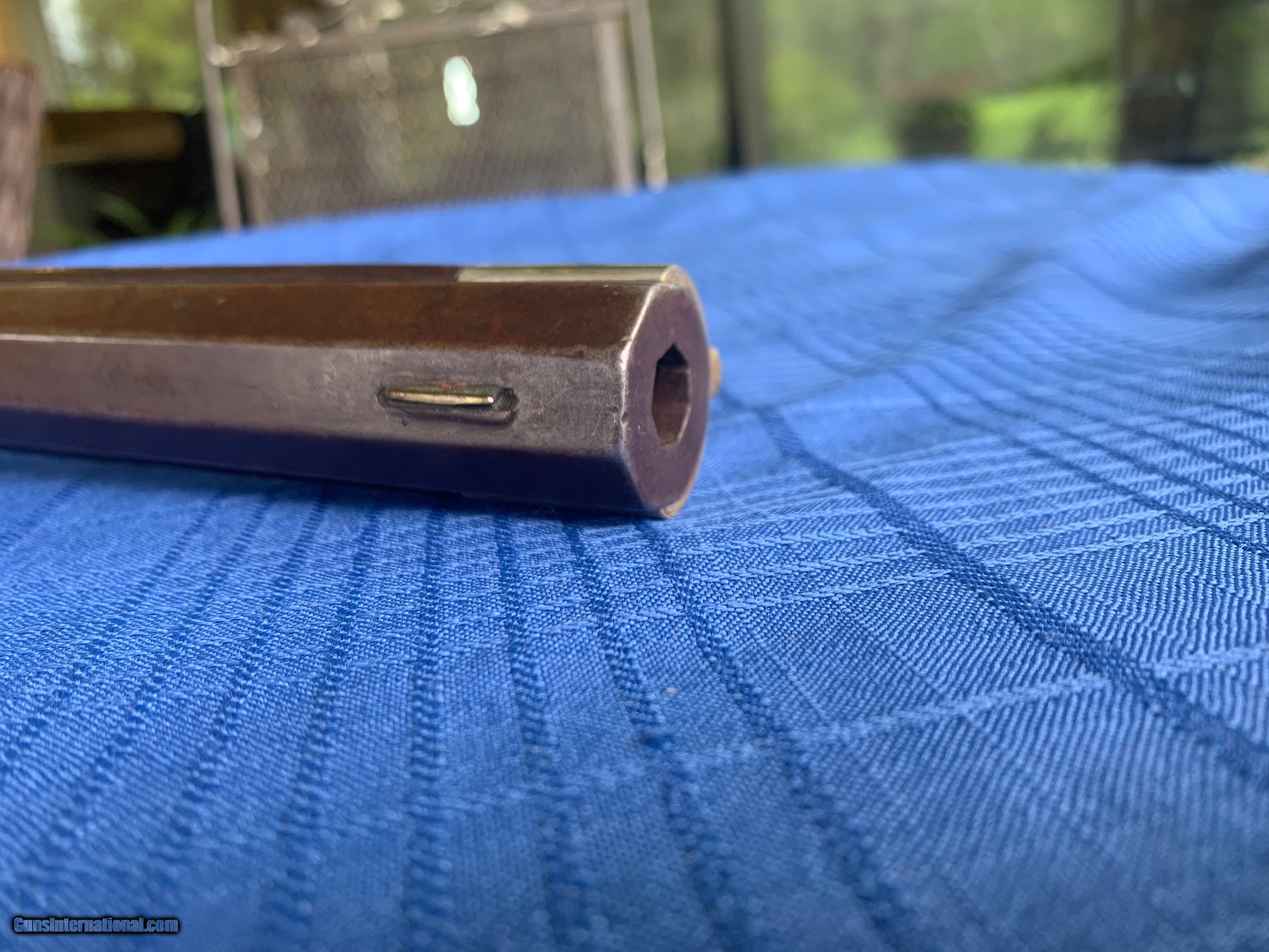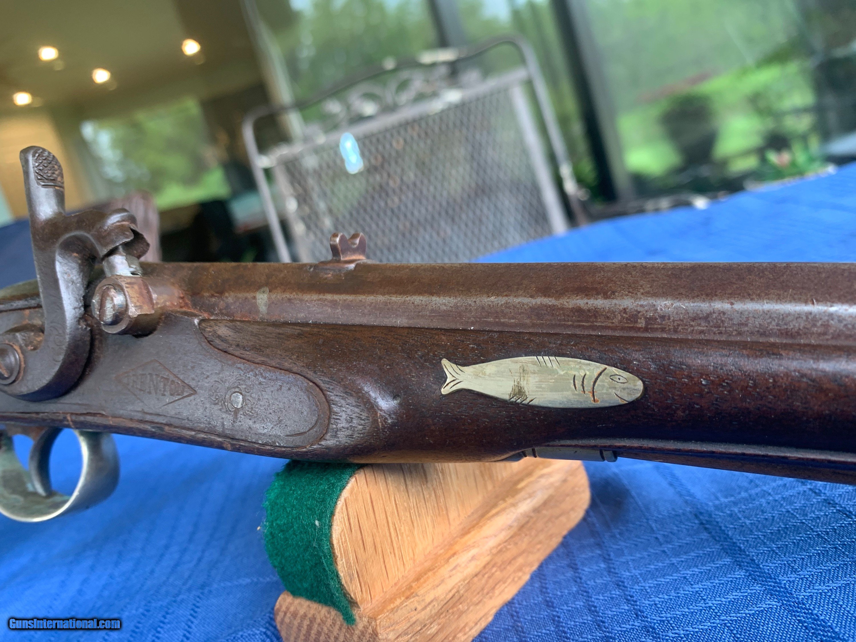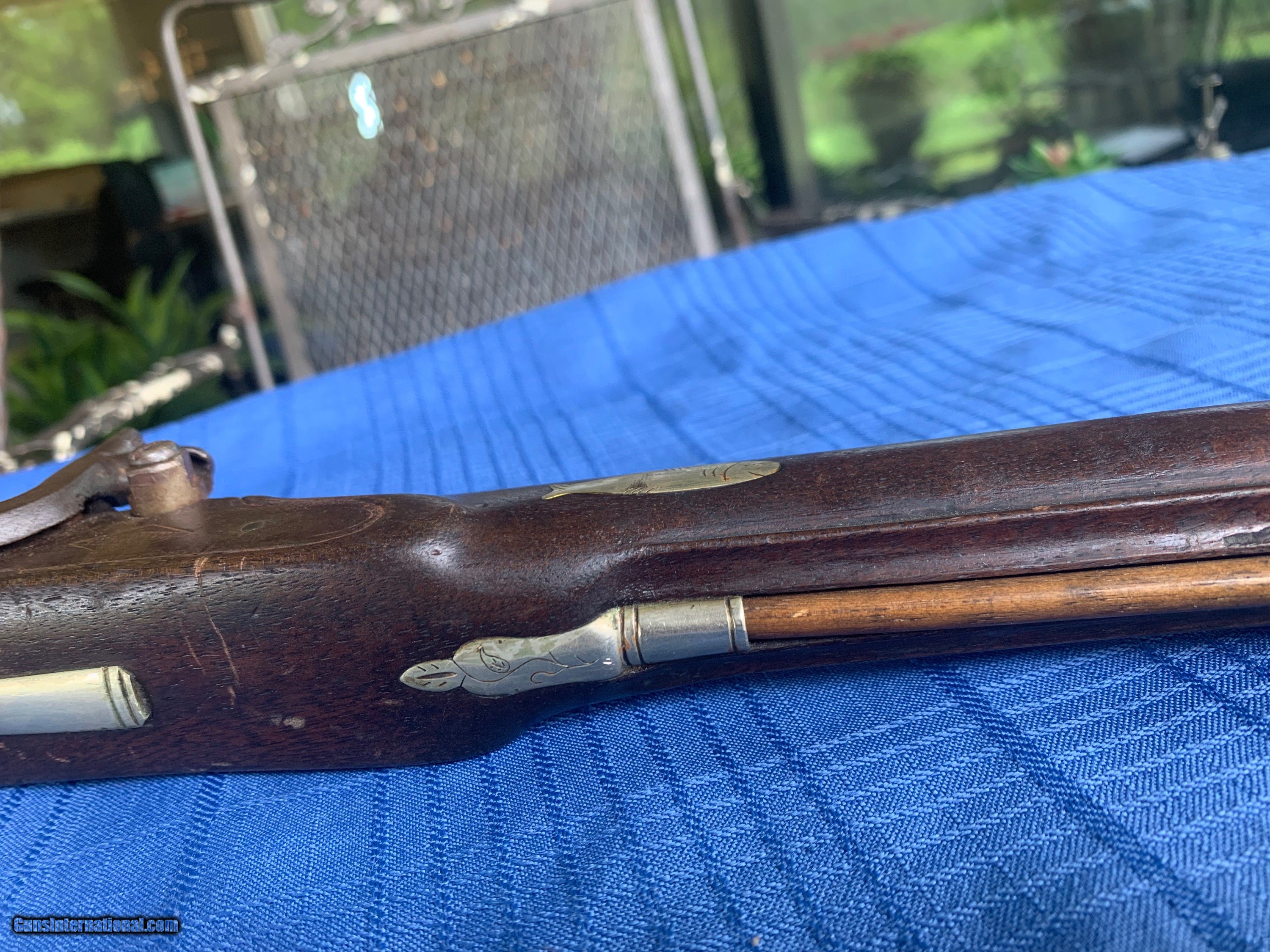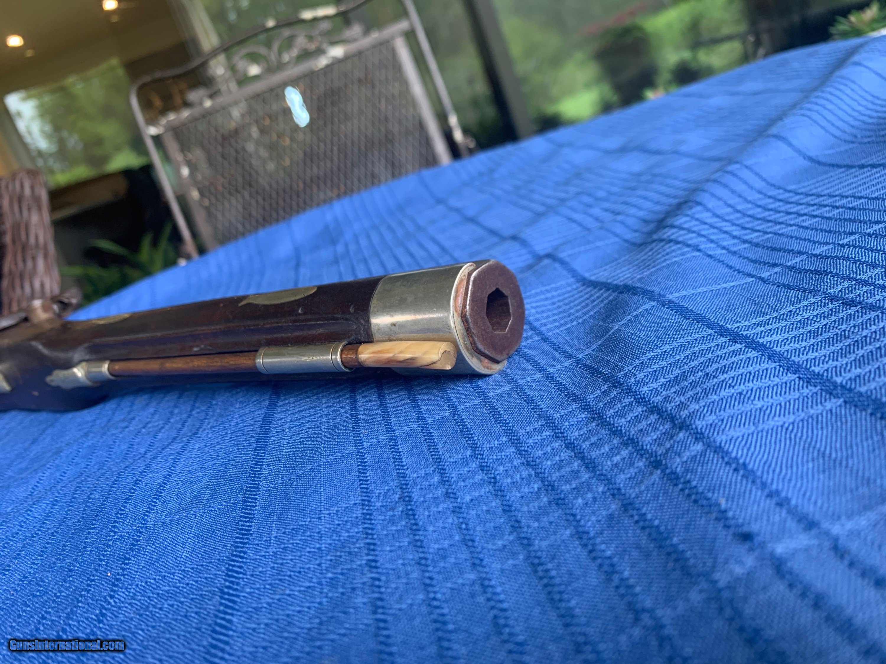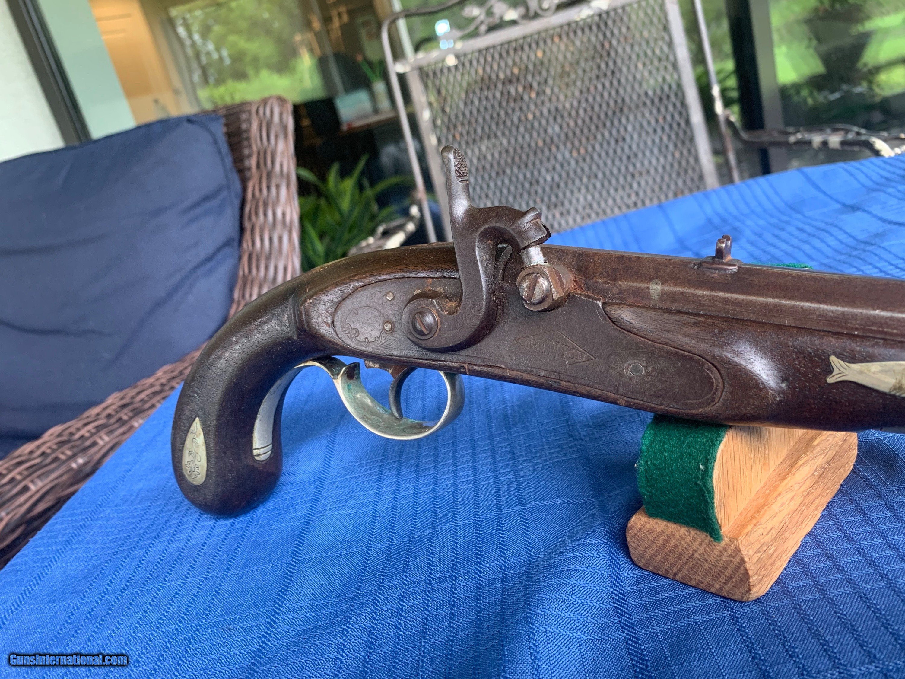 Description: Here's a Excellent Example of a American Kentucky pistol 45 caliber! Barrel measures Apx . 10" Rifled Bore. Very well made percussion pistol with Fish and flower inlays . The lock is marked TRENTON . No other markings visible on the outside of gun . Barrel has a nice even brown patina . Walnut stock is in very good condition with scars a mars from use . The original finish on wood has so slight freckling around the grip . Bore and mechanics very good ! Guns in excellent working condition! Very nice American Kentucky Pistol ! Please review my photos and please email me with any questions ? 3 day inspection as allways! Thank you for looking , Little Jo SOLD Antique: Yes Manufacturer: American Model: Kentucky Pistol Condition: Very Good ! |