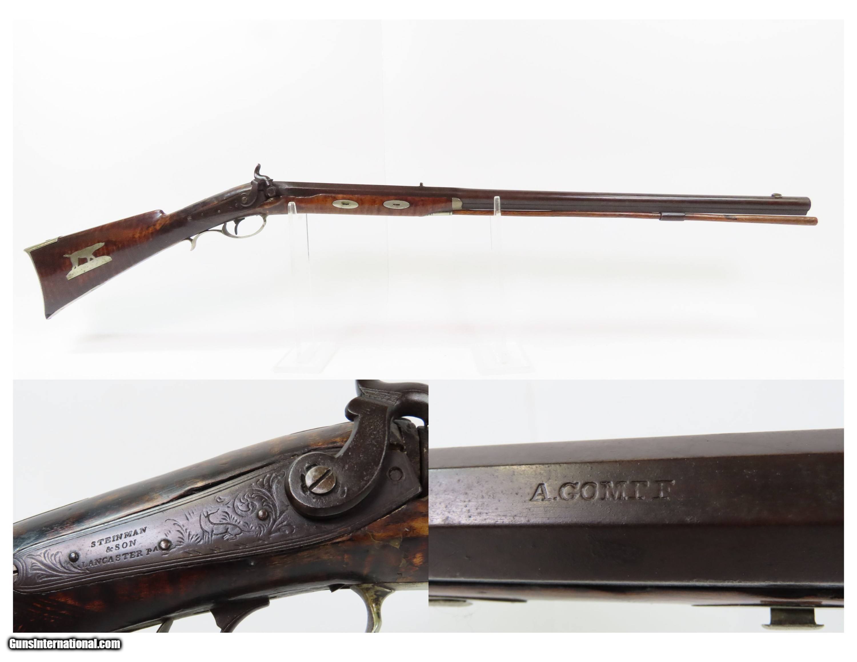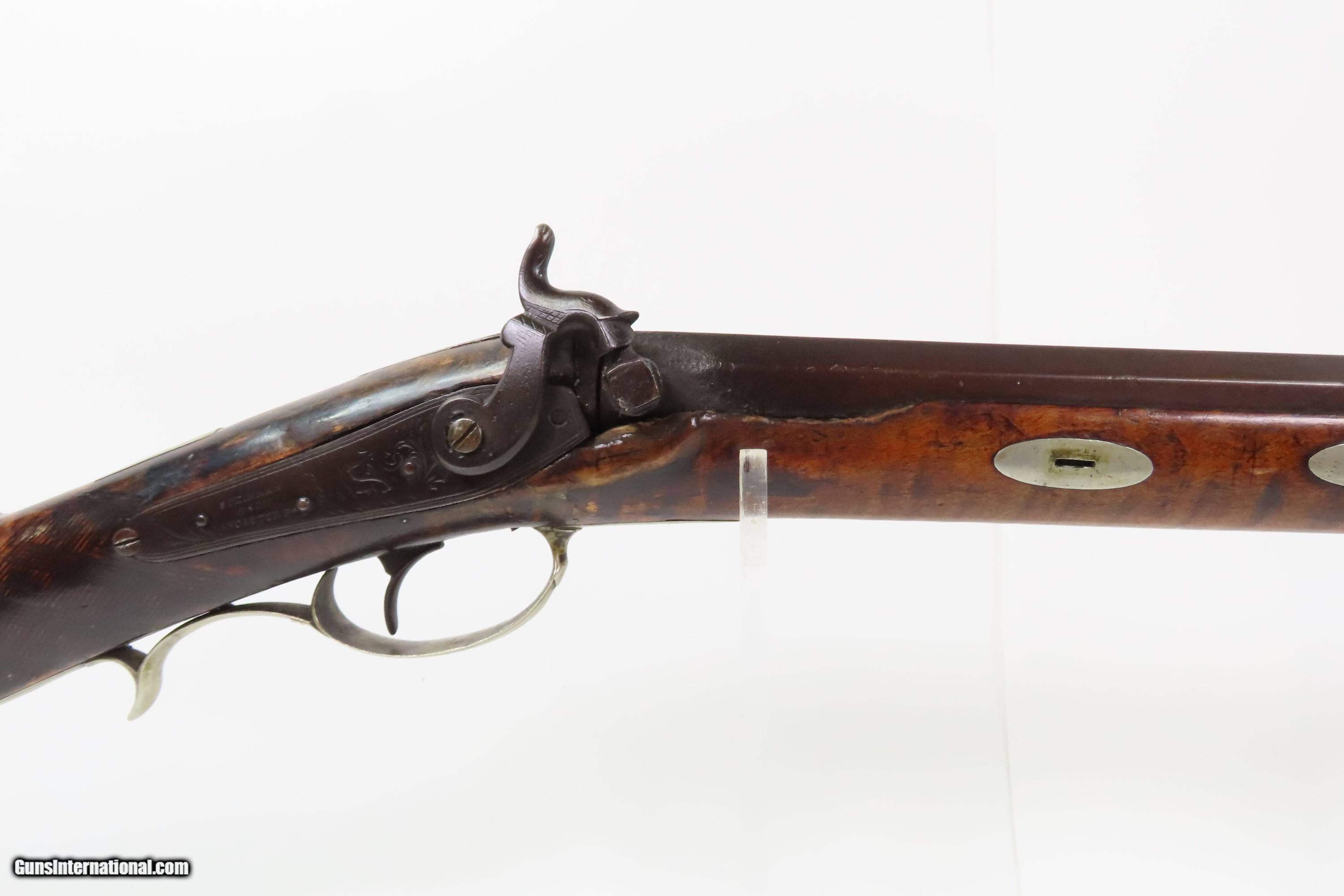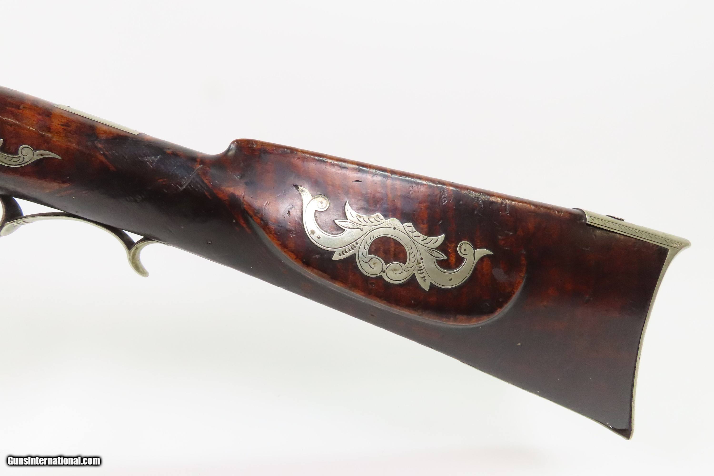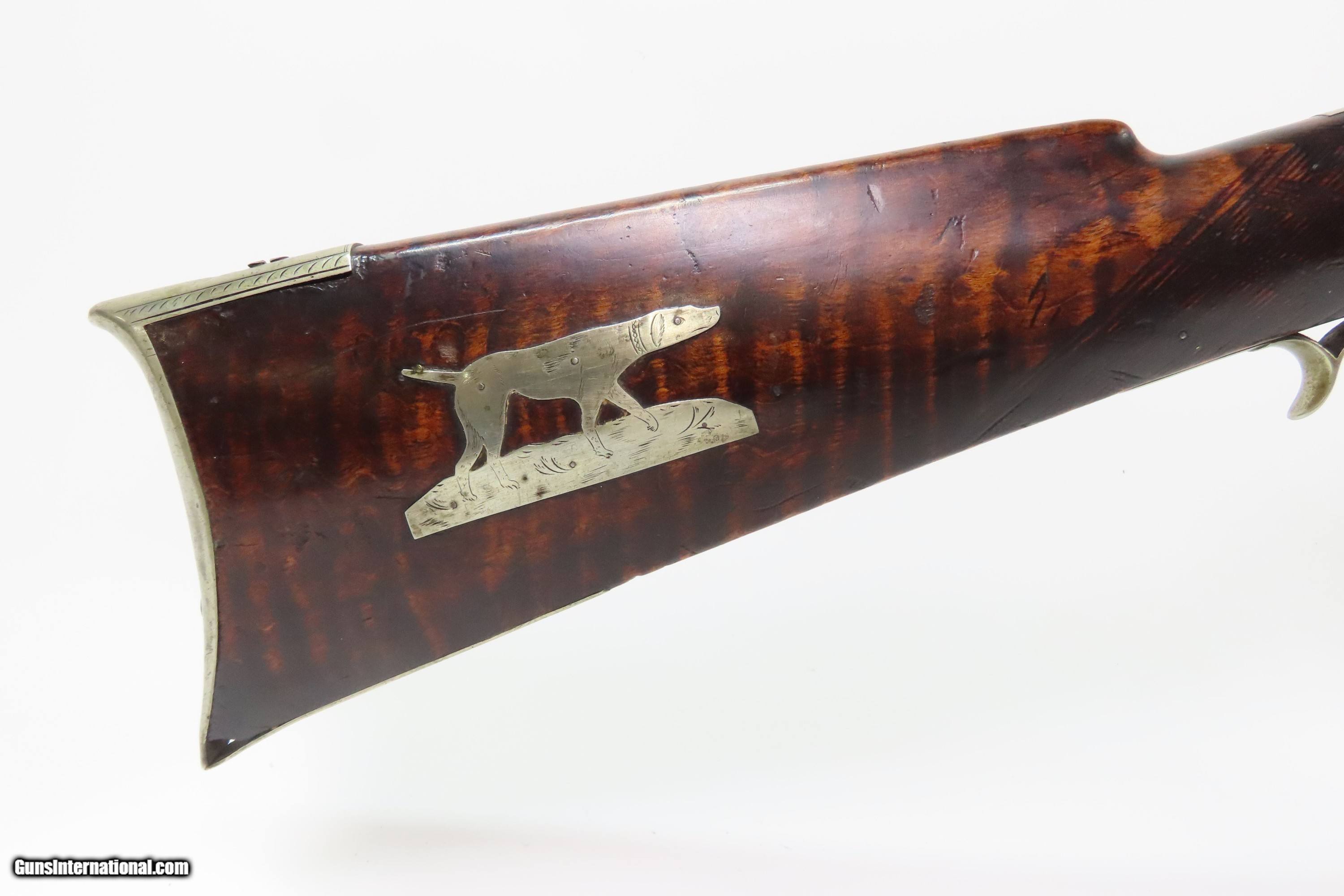 LANCASTER, PENNSYLVANIA Antique GOMPF Long Rifle GERMAN SILVER DOG BACK ACTION Engraved GAME GETTING Homestead Rifle