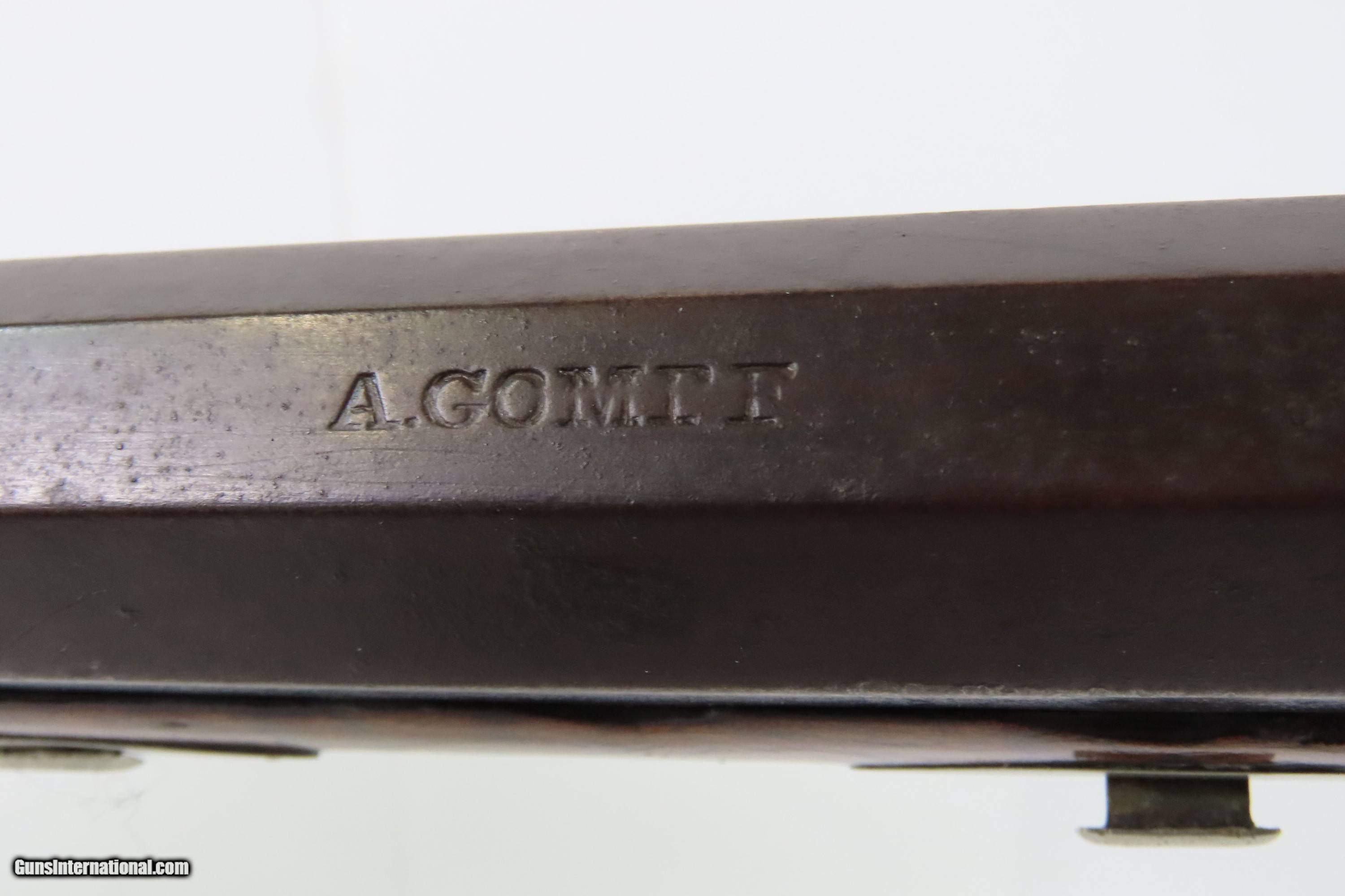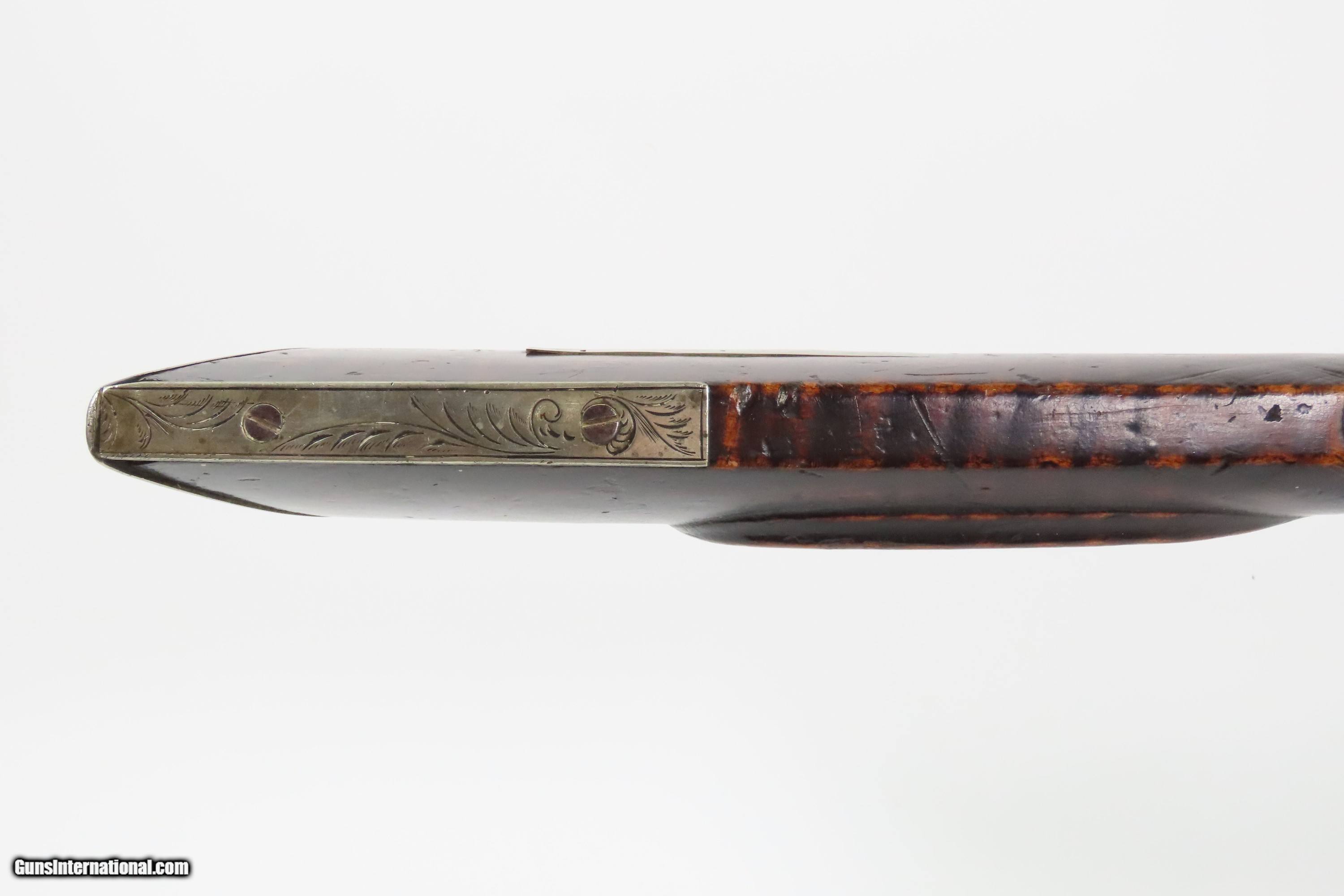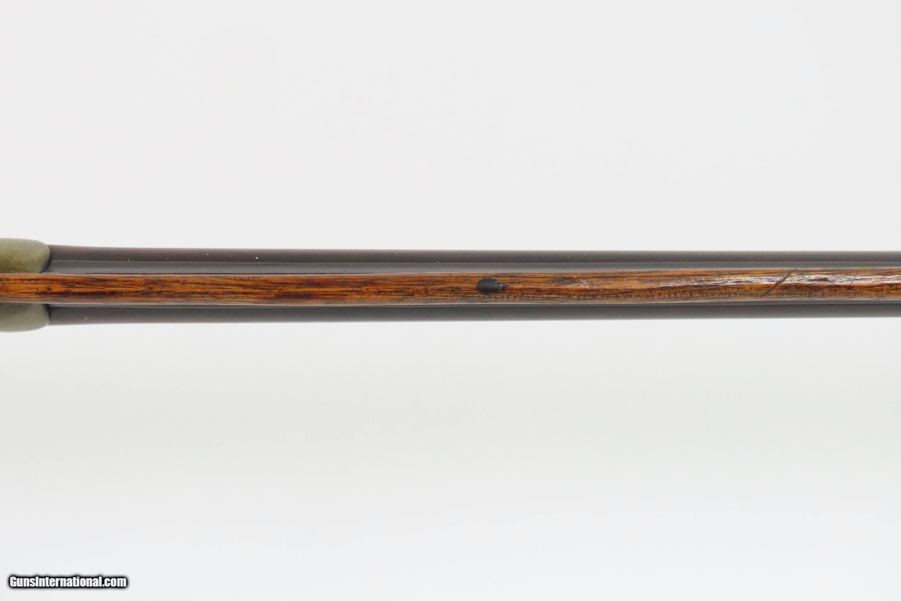 Description: LANCASTER, PENNSYLVANIA Antique GOMPF Long Rifle GERMAN SILVER DOG BACK ACTION Engraved GAME GETTING Homestead Rifle Here we present an antique A. Gompf Long Rifle made circa the mid-1800s in Lancaster, Pennsylvania. Andrew Gompf was a gunsmith located on North Queen Street in Lancaster between 1829 and about 1849. The lock is marked “STEINMAN/& SON/LANCASTER, PA” and the barrel is marked “A.GOMPF”. The name plate at the top of the wrist of the stock is marked “M. EHRMAN”. This example’s stout octagonal barrel is in .60 caliber, large enough to take medium to large sized game or to defend the homestead against unwanted aggression. Rifle manufacture in the mid-to-late 19th Century was rapidly changing over from thousands of craftsmen all over the United States and on the Frontier making and selling their wares, to the large factories with standardized assembly lines and modern manufacturing techniques. Many of the maker’s names of these percussion rifles have been lost over time. The overall condition is good. Dark patina throughout. Strong action. The stock has a repair under the front of the lock. The bore is smooth and dim. This piece has nicely figured wood and is trimmed in German silver hardware throughout, making it a handsome piece. Own the original! This is a legitimate antique and not a reproduction. Barrel is 28-1/2 inches. Caliber: .60 Percussion Overall condition as seen in photos. Very Fast. Very Safe. FREE SHIPPING WORLDWIDE. Delivered directly to your door by express mail! Guaranteed AUTHENTIC & Includes CERTIFICATE OF AUTHENTICITY. ancestryguns $1800 #254127 Antique: Yes Price: $1,800.00 Buy Now Pay with ![]() Contact Seller |