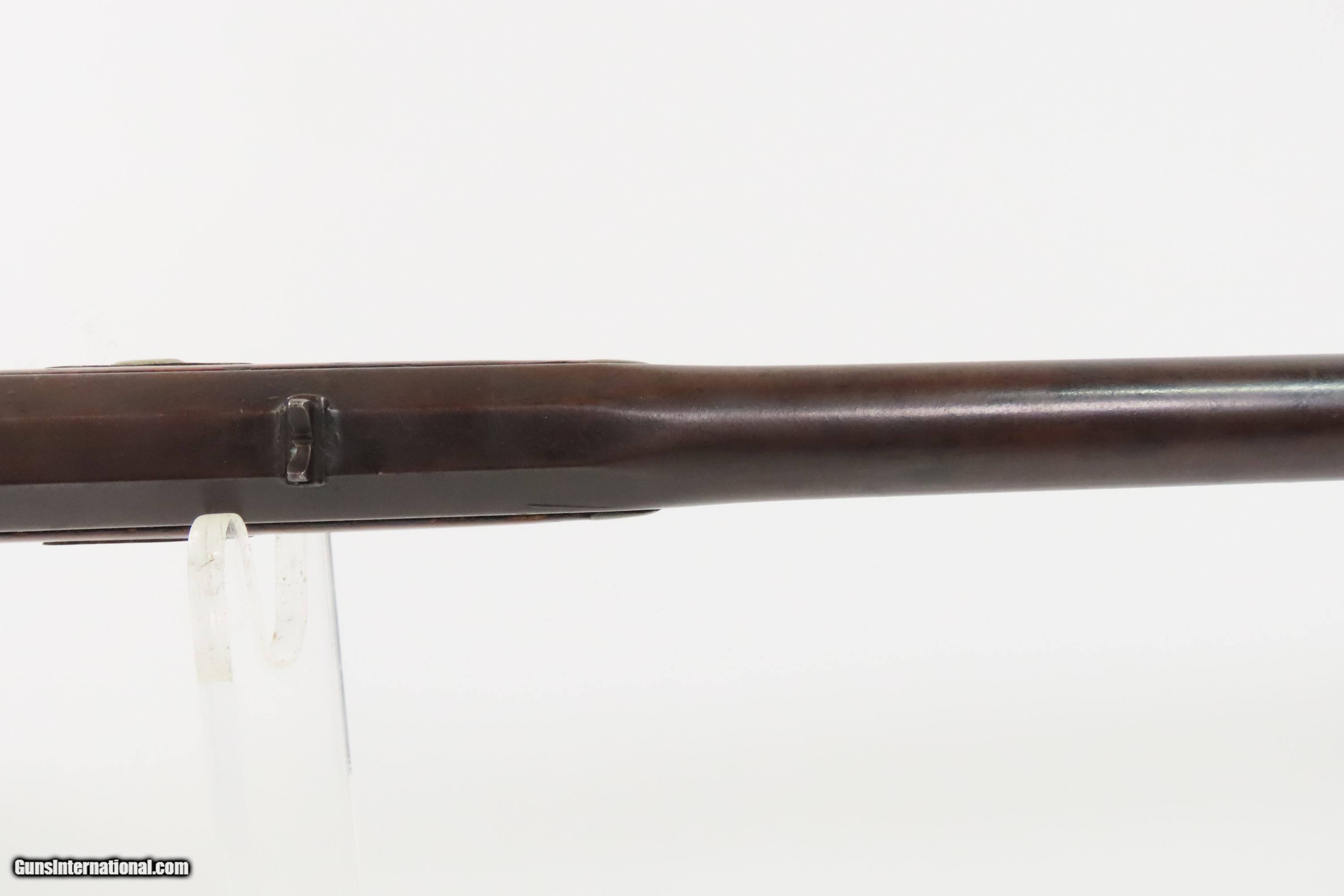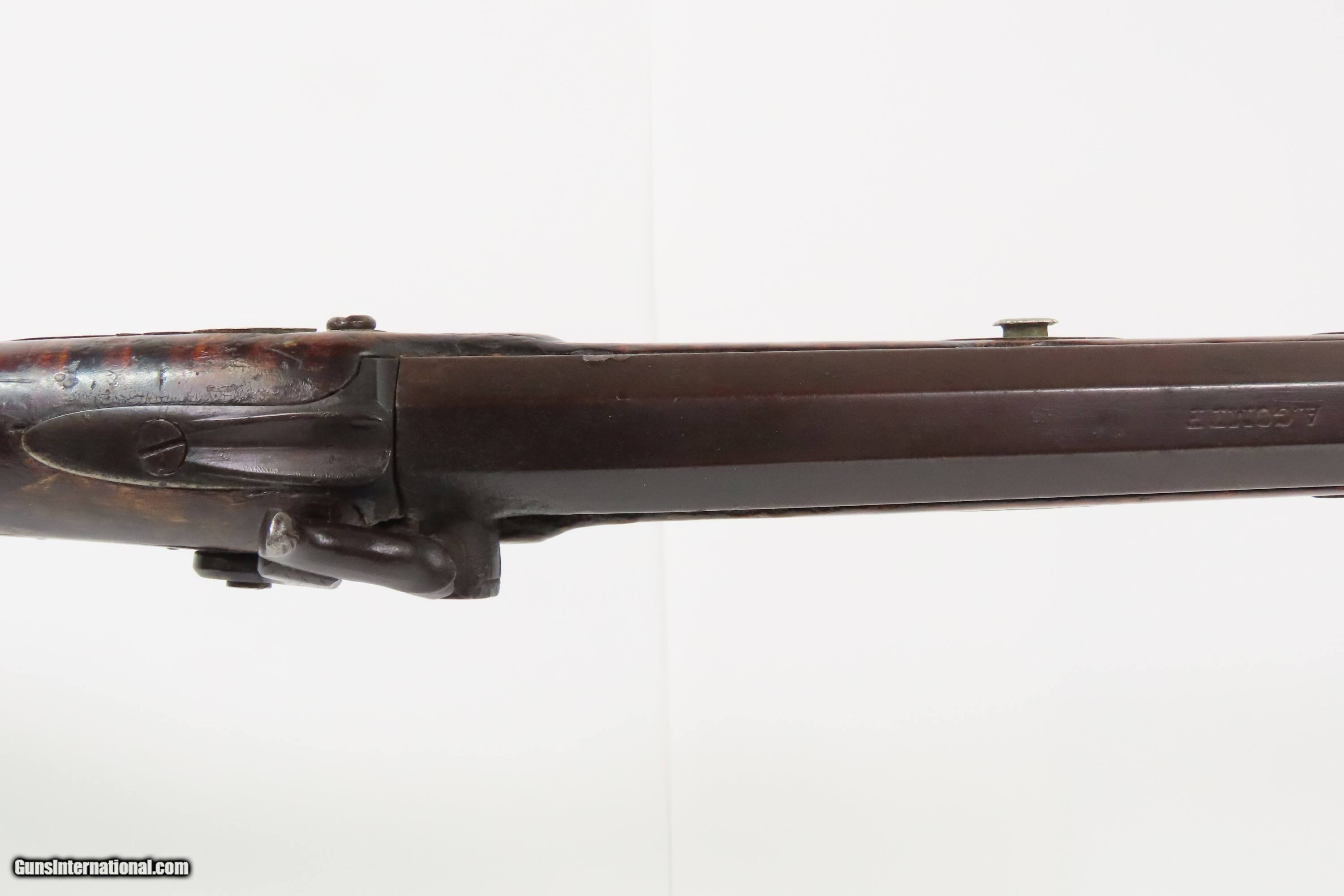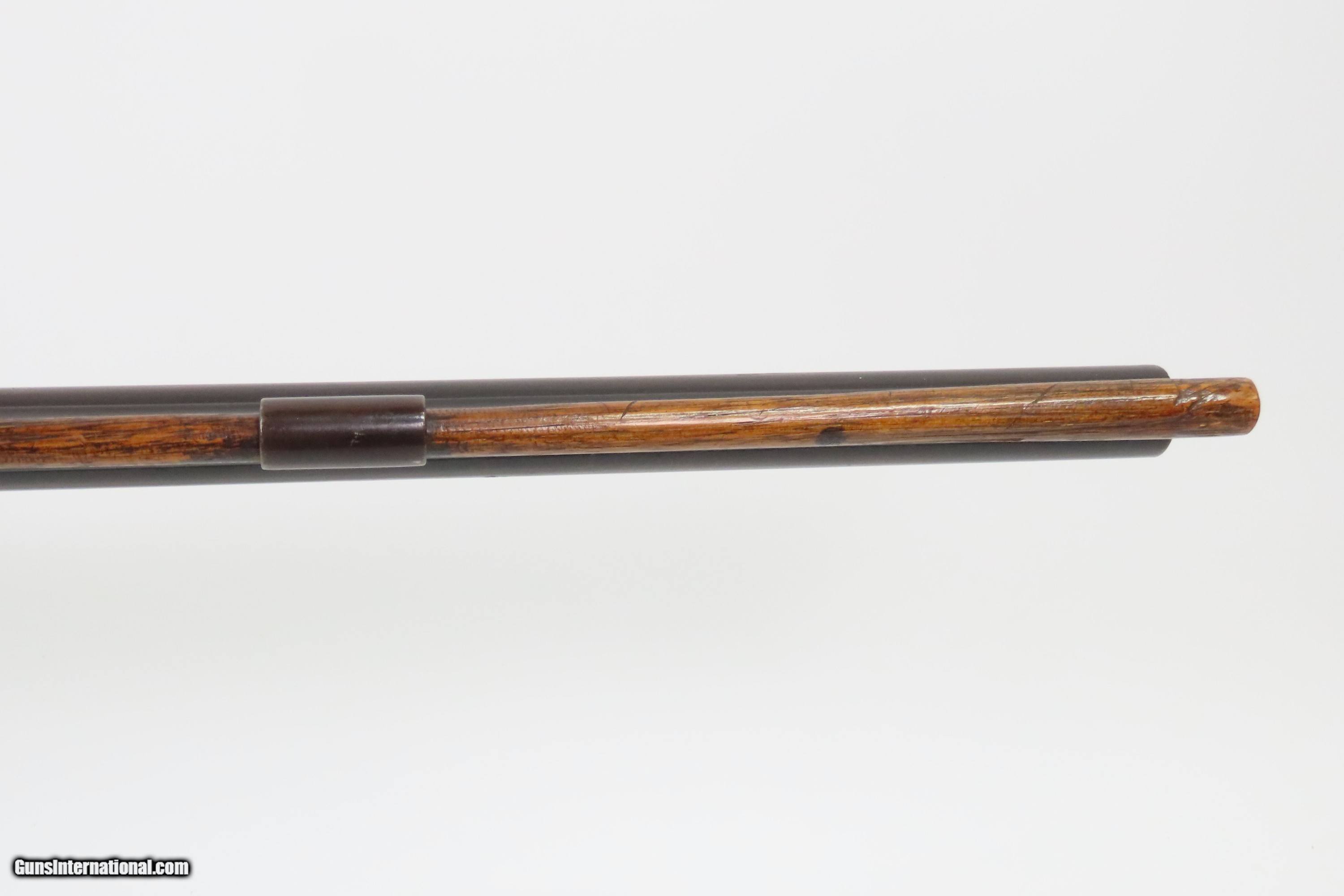 Description: LANCASTER, PENNSYLVANIA Antique GOMPF Long Rifle GERMAN SILVER DOG BACK ACTION Engraved GAME GETTING Homestead Rifle Here we present an antique A. Gompf Long Rifle made circa the mid-1800s in Lancaster, Pennsylvania. Andrew Gompf was a gunsmith located on North Queen Street in Lancaster between 1829 and about 1849. The lock is marked “STEINMAN/& SON/LANCASTER, PA” and the barrel is marked “A.GOMPF”. The name plate at the top of the wrist of the stock is marked “M. EHRMAN”. This example’s stout octagonal barrel is in .60 caliber, large enough to take medium to large sized game or to defend the homestead against unwanted aggression. Rifle manufacture in the mid-to-late 19th Century was rapidly changing over from thousands of craftsmen all over the United States and on the Frontier making and selling their wares, to the large factories with standardized assembly lines and modern manufacturing techniques. Many of the maker’s names of these percussion rifles have been lost over time. The overall condition is good. Dark patina throughout. Strong action. The stock has a repair under the front of the lock. The bore is smooth and dim. This piece has nicely figured wood and is trimmed in German silver hardware throughout, making it a handsome piece. Own the original! This is a legitimate antique and not a reproduction. Barrel is 28-1/2 inches. Caliber: .60 Percussion Overall condition as seen in photos. Very Fast. Very Safe. FREE SHIPPING WORLDWIDE. Delivered directly to your door by express mail! Guaranteed AUTHENTIC & Includes CERTIFICATE OF AUTHENTICITY. ancestryguns $1800 #254127 Antique: Yes Price: $1,800.00 Buy Now Pay with ![]() Contact Seller |