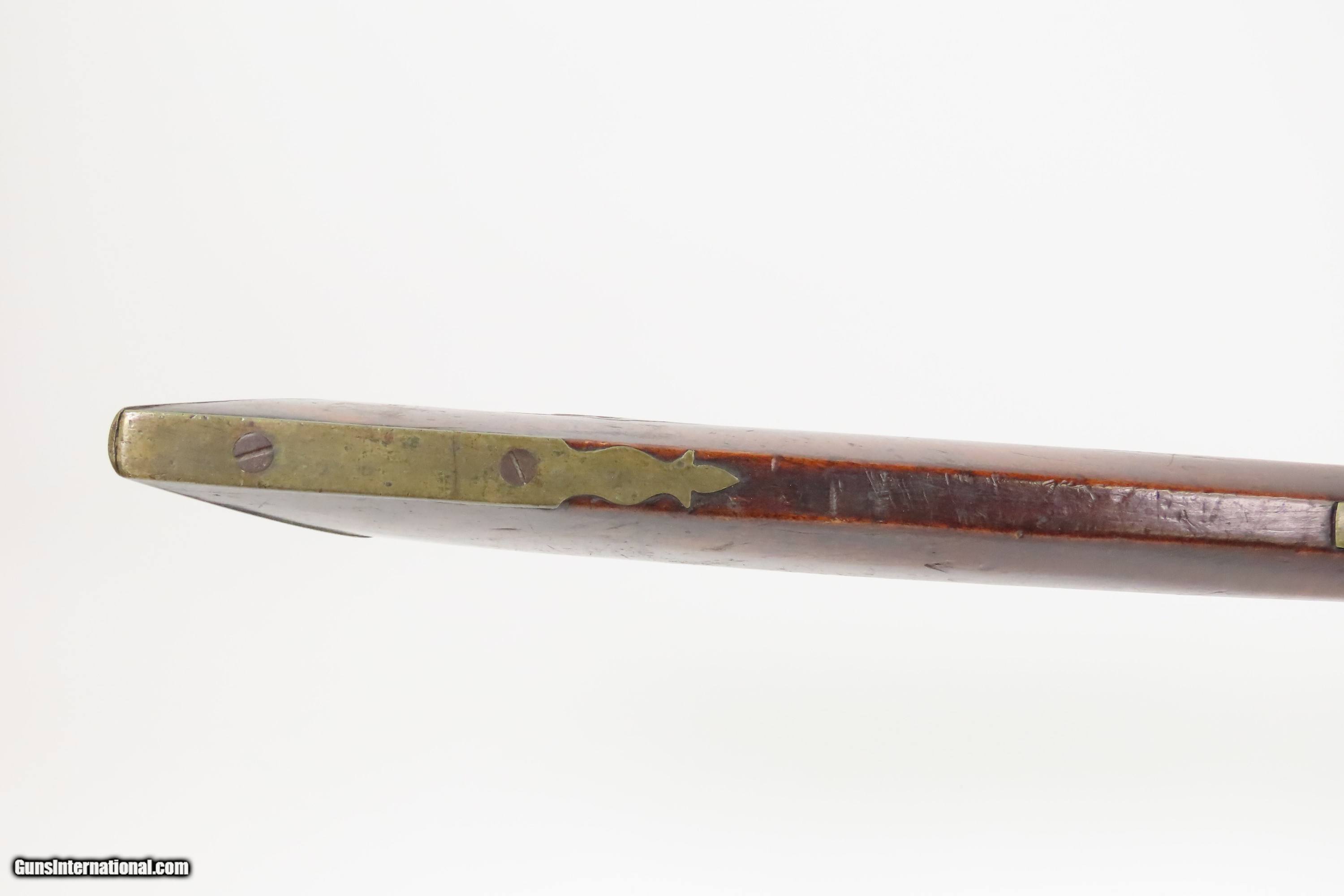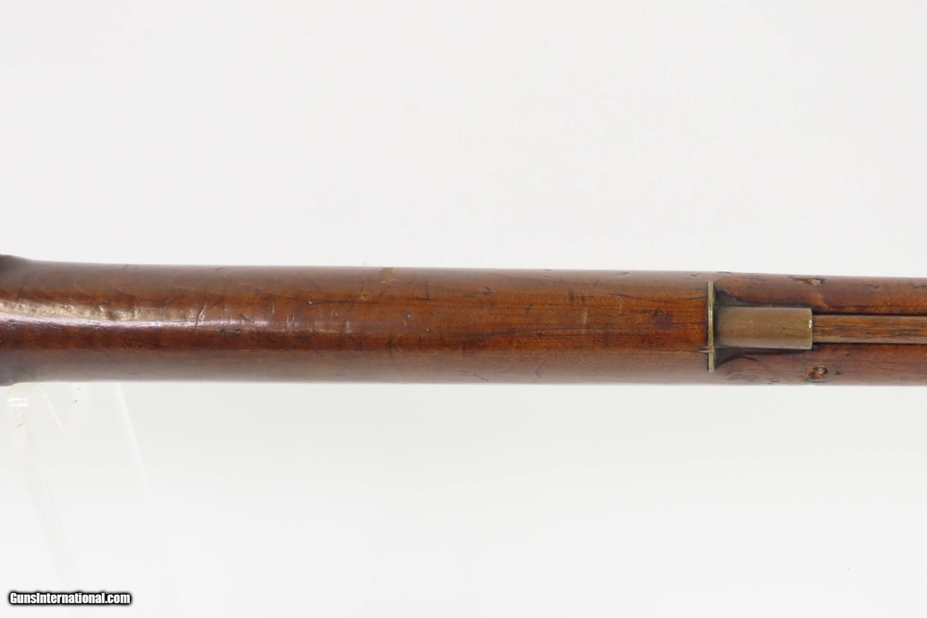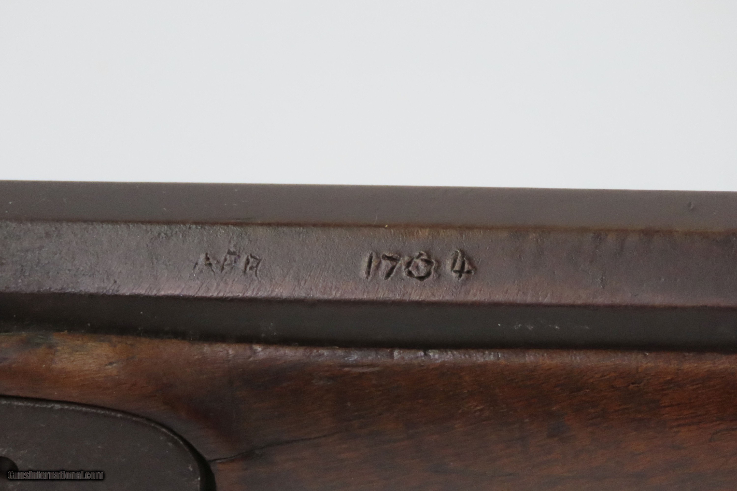 Description: Mid-1800s Antique AMERICAN Half Stock Percussion HOMESTEAD/HUNTING Rifle Game Getting Rifle w/ Indian/Native THEMED CARVINGS Here we present an antique Percussion Half Stock Rifle made circa the mid-1800s. The percussion rifle was a type of rifle that utilized the percussion lock mechanism to fire a bullet or musket ball. The Percussion lock mechanism was an evolution of the flintlock mechanism used on earlier muskets and rifles, with the percussion rifle being introduced somewhere around 1820. The percussion rifle had a slight advantage when it came to rate of fire over its flintlock counterparts. The use of a percussion cap reduced the reloading time, meaning the average number of shots per minute would consistently fall between three and four per minute. The percussion lock was also very reliable in wet conditions, and the reverse is true for the flintlocks with the primer not being affected by having water in contact with it, while the powder was virtually incapable of being exposed to water. This example’s stout octagonal barrel is in .32 caliber, large enough to take small to medium sized game or to defend the homestead against unwanted aggression. Rifle manufacture in the mid-to-late 19th Century was rapidly changing over from thousands of craftsmen all over the United States and on the Frontier making and selling their wares, to the large factories with standardized assembly lines and modern manufacturing techniques. Many of the maker’s names of these percussion rifles have been lost over time. This is one such example. This rifle would have also been used to put food on the table or defend the homestead against unwanted intruders! The overall condition is good. Original dark brown patina. The stock has a crack through the wrist with some movement and a repair at the rear of lock but remains solid. Good rifled bore. Strong action. The blade is missing from the front sight. “A.F.R 1074” marked on the right barrel flat. Hand carvings are present on the left buttstock. Own the original! This is a legitimate antique and not a reproduction. Barrel is 43 inches. Caliber: .32 Percussion Overall condition as seen in photos. Very Fast. Very Safe. FREE SHIPPING WORLDWIDE. Delivered directly to your door by express mail! Guaranteed AUTHENTIC & Includes CERTIFICATE OF AUTHENTICITY. ancestryguns $1800 #250640 SOLD Antique: Yes |