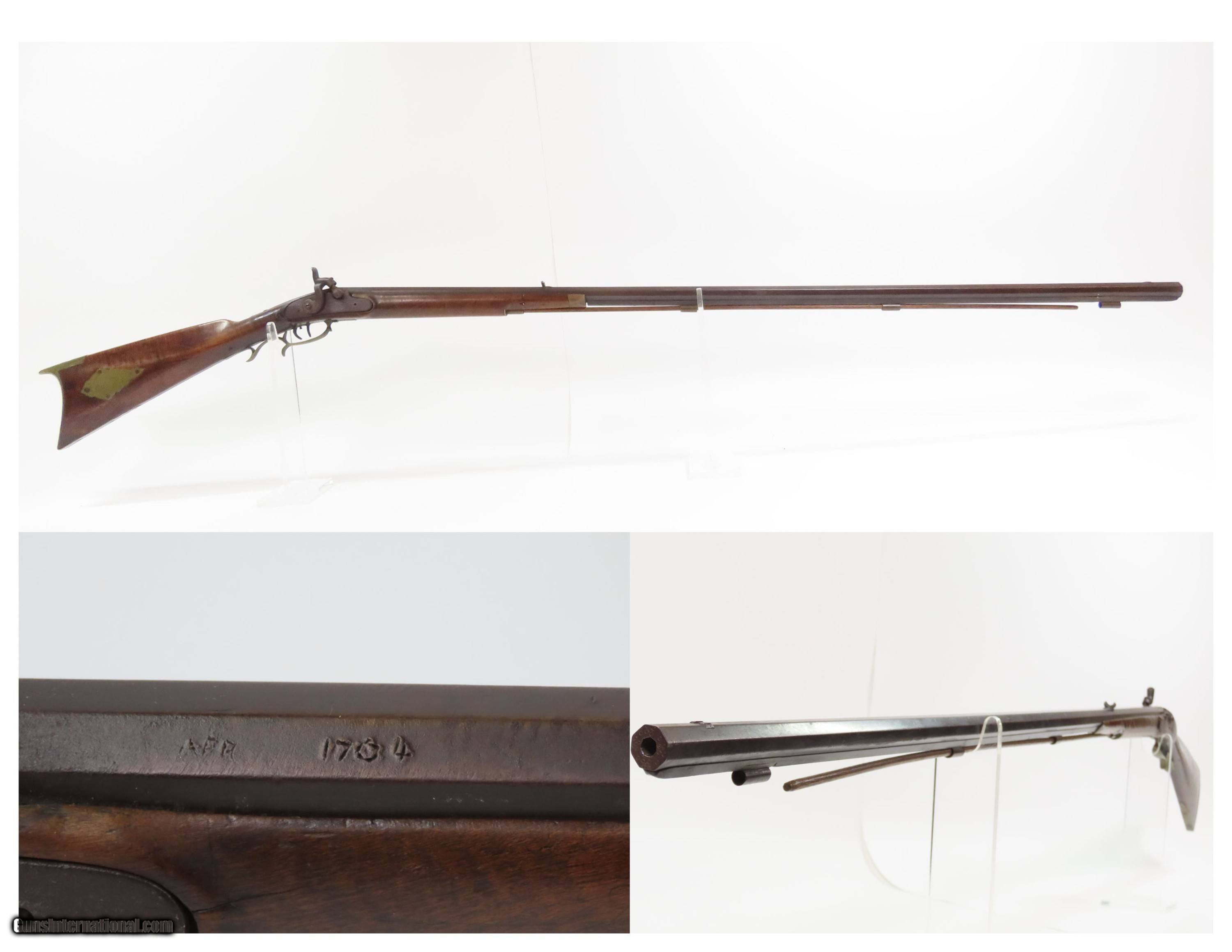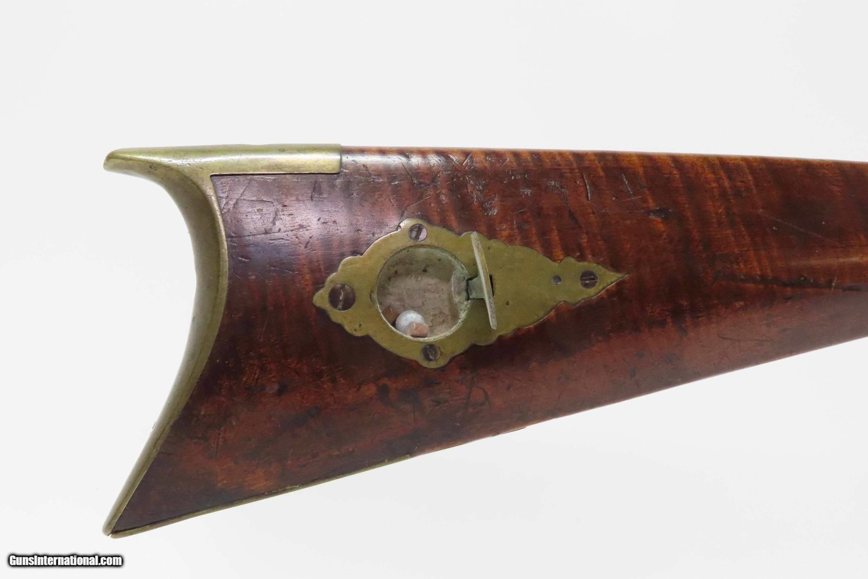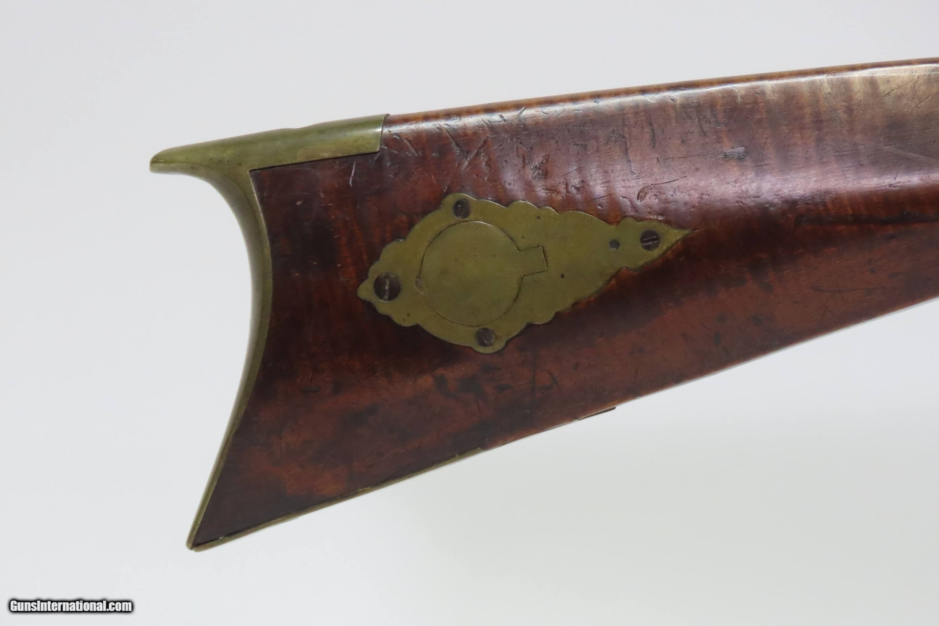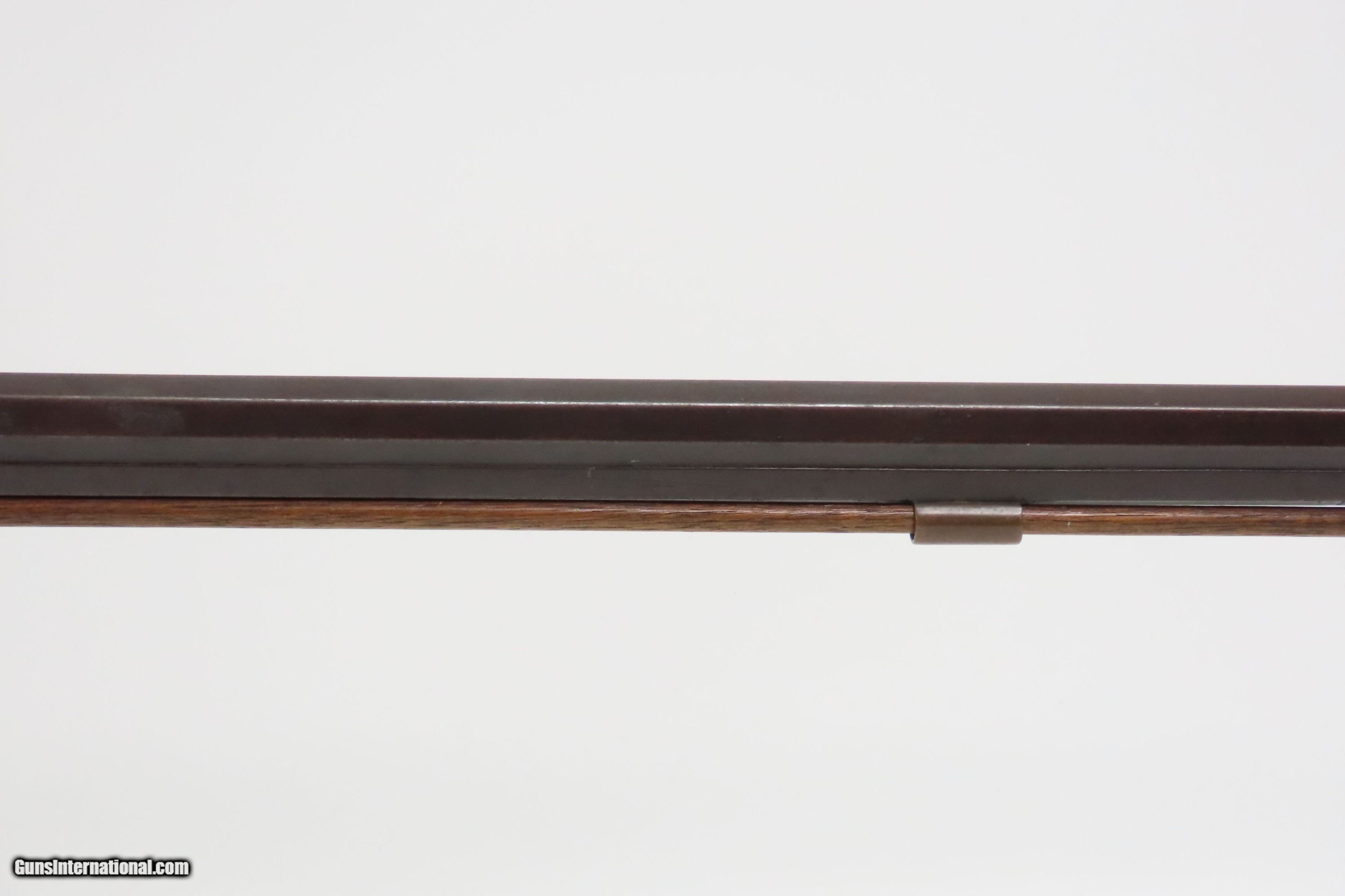 Description: Mid-1800s Antique AMERICAN Half Stock Percussion HOMESTEAD/HUNTING Rifle Game Getting Rifle w/ Indian/Native THEMED CARVINGS Here we present an antique Percussion Half Stock Rifle made circa the mid-1800s. The percussion rifle was a type of rifle that utilized the percussion lock mechanism to fire a bullet or musket ball. The Percussion lock mechanism was an evolution of the flintlock mechanism used on earlier muskets and rifles, with the percussion rifle being introduced somewhere around 1820. The percussion rifle had a slight advantage when it came to rate of fire over its flintlock counterparts. The use of a percussion cap reduced the reloading time, meaning the average number of shots per minute would consistently fall between three and four per minute. The percussion lock was also very reliable in wet conditions, and the reverse is true for the flintlocks with the primer not being affected by having water in contact with it, while the powder was virtually incapable of being exposed to water. This example’s stout octagonal barrel is in .32 caliber, large enough to take small to medium sized game or to defend the homestead against unwanted aggression. Rifle manufacture in the mid-to-late 19th Century was rapidly changing over from thousands of craftsmen all over the United States and on the Frontier making and selling their wares, to the large factories with standardized assembly lines and modern manufacturing techniques. Many of the maker’s names of these percussion rifles have been lost over time. This is one such example. This rifle would have also been used to put food on the table or defend the homestead against unwanted intruders! The overall condition is good. Original dark brown patina. The stock has a crack through the wrist with some movement and a repair at the rear of lock but remains solid. Good rifled bore. Strong action. The blade is missing from the front sight. “A.F.R 1074” marked on the right barrel flat. Hand carvings are present on the left buttstock. Own the original! This is a legitimate antique and not a reproduction. Barrel is 43 inches. Caliber: .32 Percussion Overall condition as seen in photos. Very Fast. Very Safe. FREE SHIPPING WORLDWIDE. Delivered directly to your door by express mail! Guaranteed AUTHENTIC & Includes CERTIFICATE OF AUTHENTICITY. ancestryguns $1800 #250640 SOLD Antique: Yes |