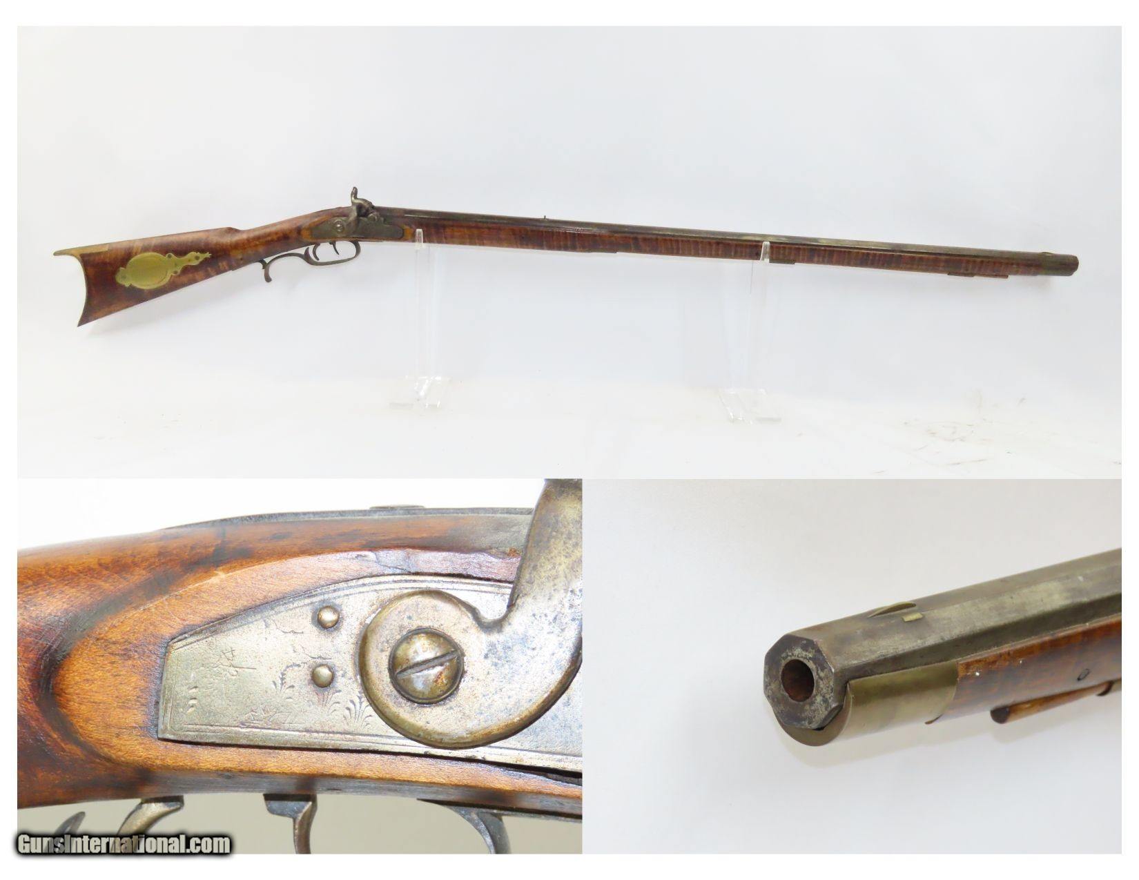 PITTSBURGH, PENNSYLVANIA JAMES BOWN Long Rifle .40 HOMESTEAD Antique Striped Maple Full-Length Stock