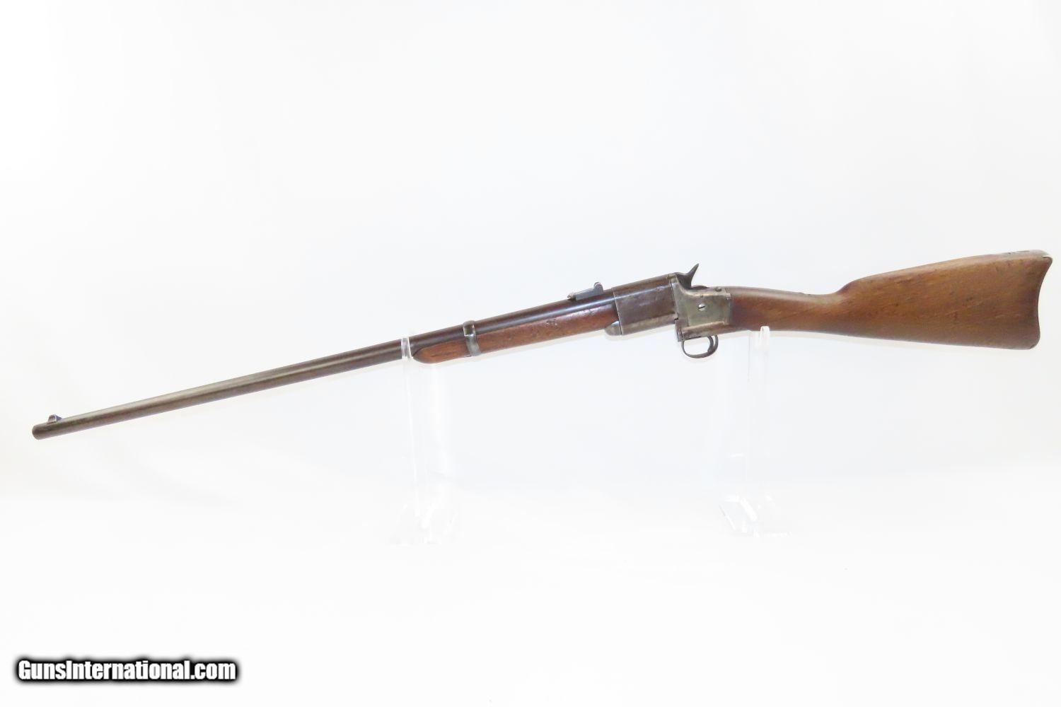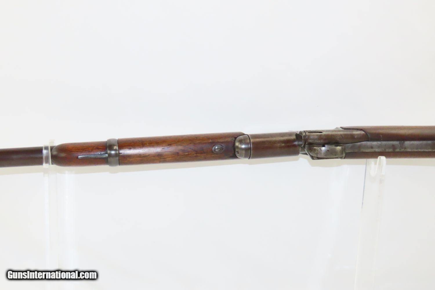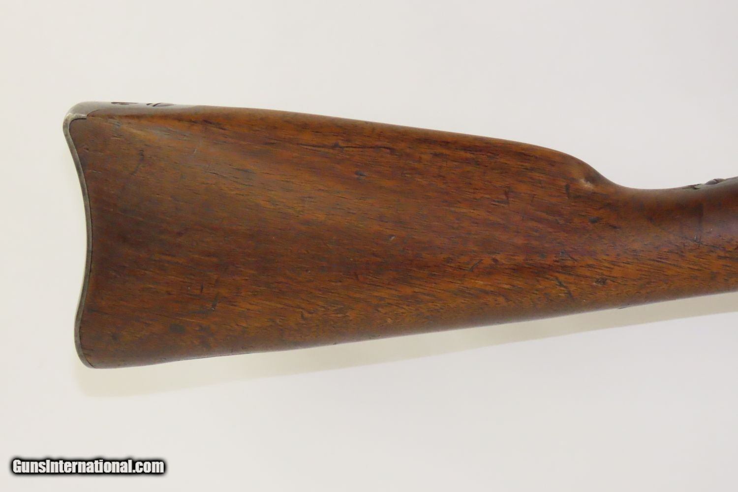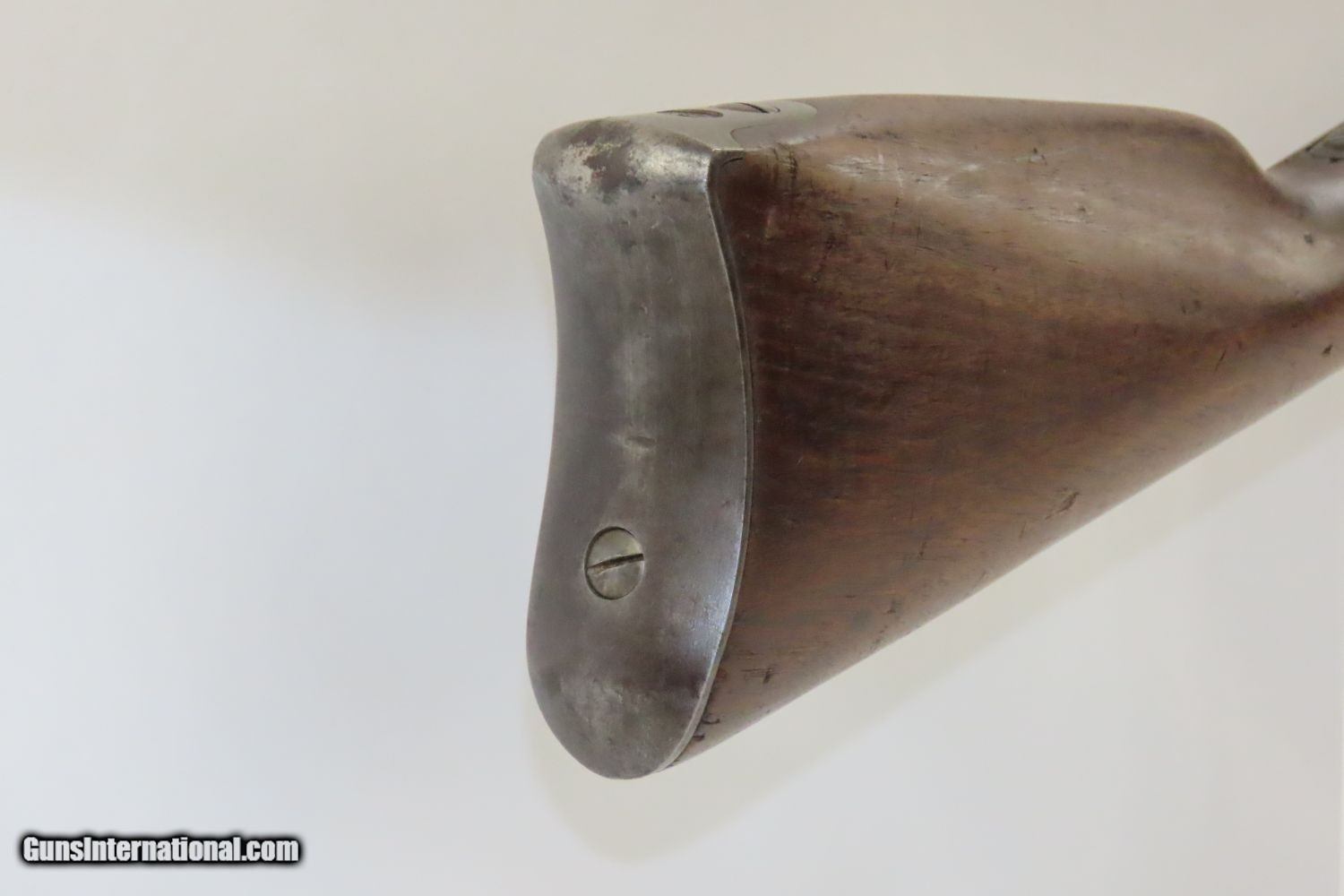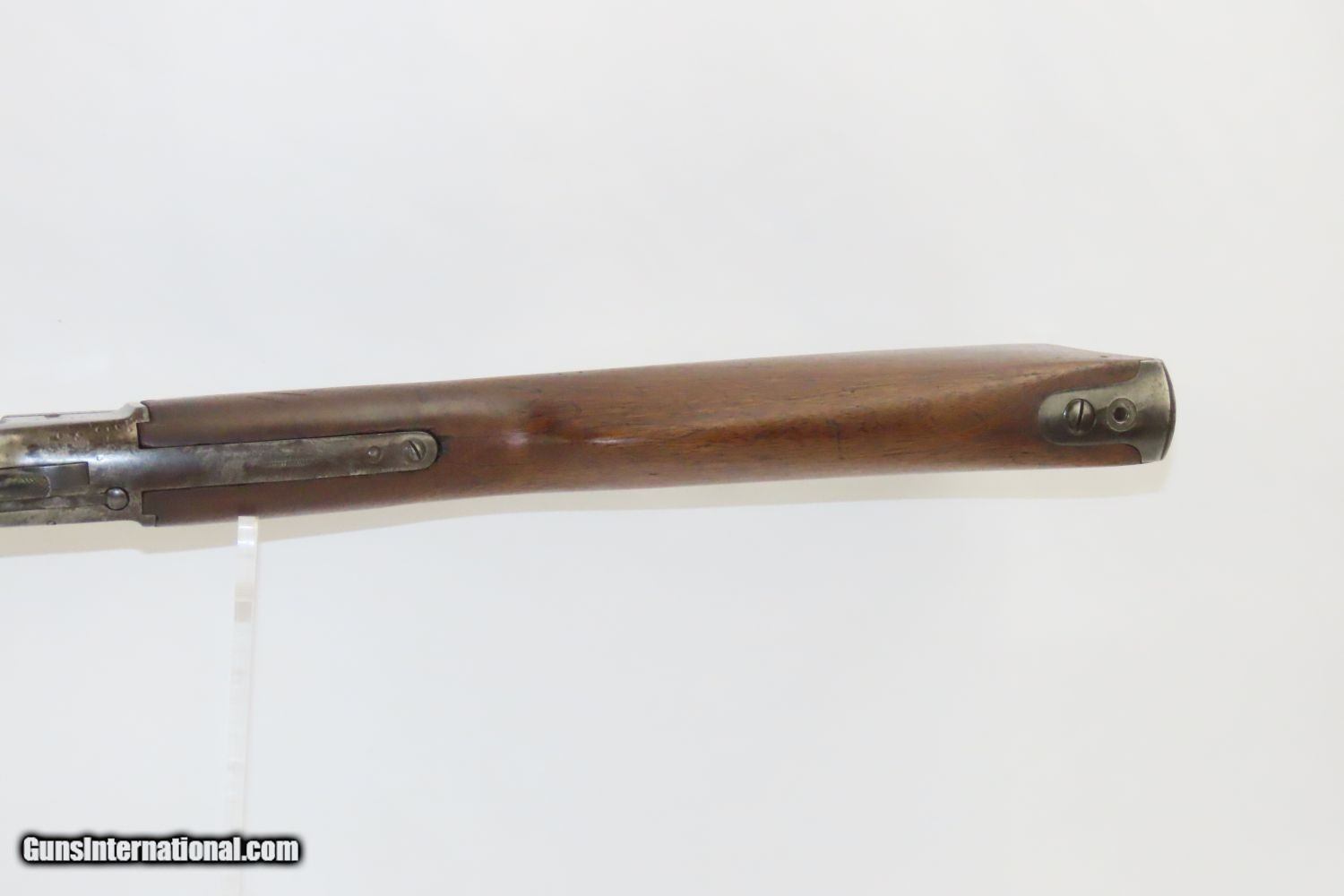 Description: RARE & Unique KENTUCKY CONTRACT Triplett & Scott CIVIL WAR Repeating Rifle TRIPLETT & SCOTT Made for KY Home Guard Circa 1864 Here we present an antique “KENTUCKY” Marked Triplett & Scott Patent Rifle, made circa 1864 by Meriden Manufacturing Company of Meriden, Connecticut. Meriden Manufacturing was founded by Charles Parker and his brother, who would later go on to become one of the most famous firearms manufacturers in the world with his beautiful shotguns. That firm would be called Parker Brothers. However, these brothers would first make themselves by contracting for the Union government during the American Civil War. They produced the Triplett & Scott Repeating Carbine on contract with the state of Kentucky for 5,000 pieces. These were to be issued to the Kentucky Home Guard for supply train defense for the Union Army as General Sherman marched on Atlanta. The diversity of weapons, especially carbines, during the Civil War was incredible. All of them are different in their own way. The Triplett & Scott Rifle & Carbine differentiates itself by its operation. The 7-shot magazine tube is housed in the front of the wrist of the butt stock. By placing the hammer in half-cock and depressing a button with the right thumb, one would be able to twist the forward portion of the gun, which would activate the automatic ejector, pushing the empty case out, before the receiver pushed aside the loading gate on the magazine tube to pick up another cartridge. The design was quite ingenious and the precision with which it was executed is still evident. The left side of the frame is marked “MERIDEN MANFG. CO./MERIDEN. CONN.” The right side of the frame is marked with the serial number, “1465”. The overall condition is very good. The action is strong all around. The bore is bright with some pitting near the breech. All markings are clear and legible. The repaired cracks on both sides of the wrist are stable—these had thin parts around the wrist due to the unique magazine tube inserted from the front of the wrist. Here is a unique Civil War rifle with a Kentucky heritage! Own the original! This is a legitimate antique and not a reproduction. Barrel is 30 inches. Caliber: .50 Rimfire Overall condition as seen in photos. Very Fast. Very Safe. FREE SHIPPING WORLDWIDE. Delivered directly to your door by express mail! Guaranteed AUTHENTIC & Includes CERTIFICATE OF AUTHENTICITY. ancestryguns $2845 #201104 SOLD Antique: Yes |