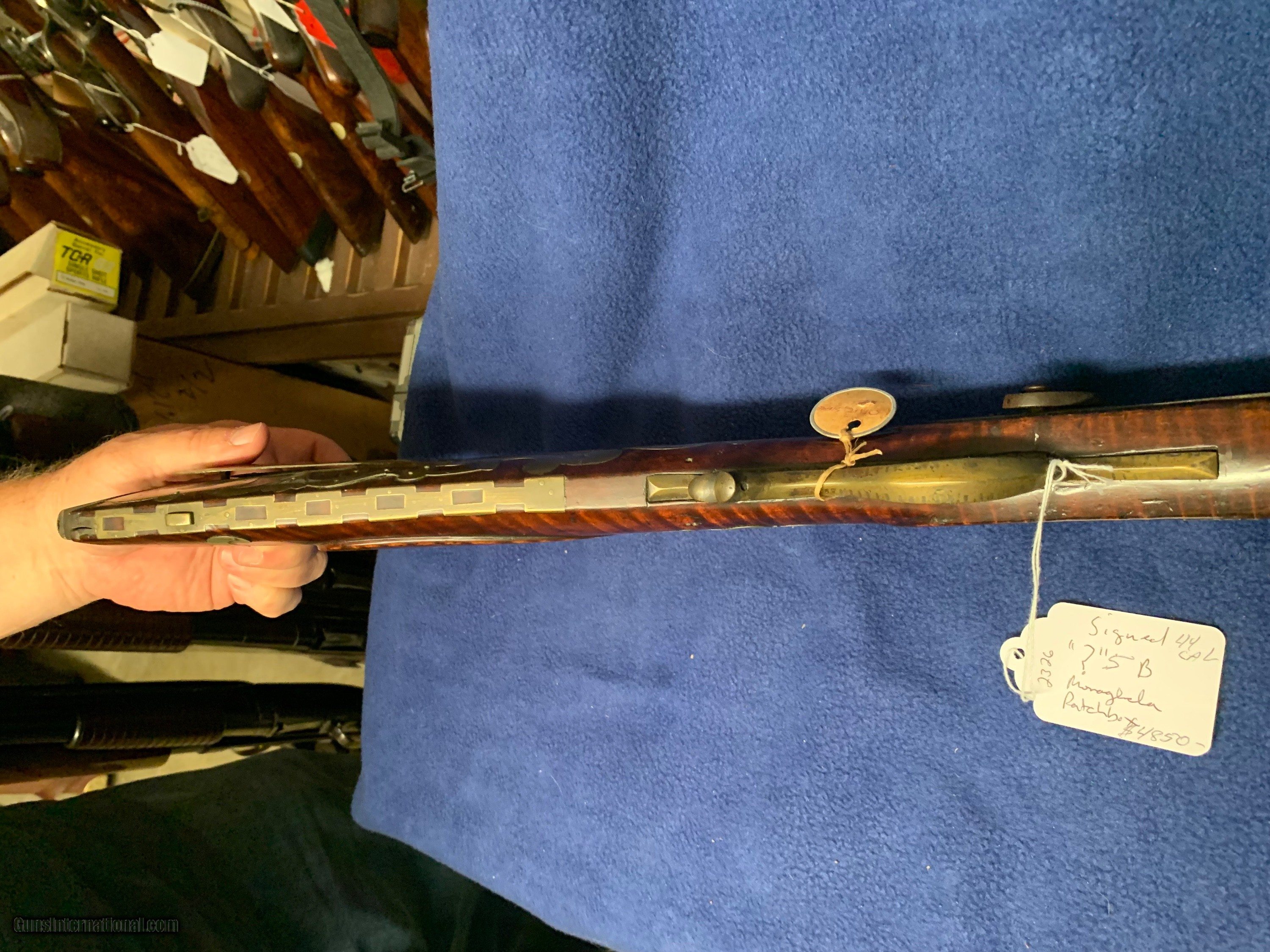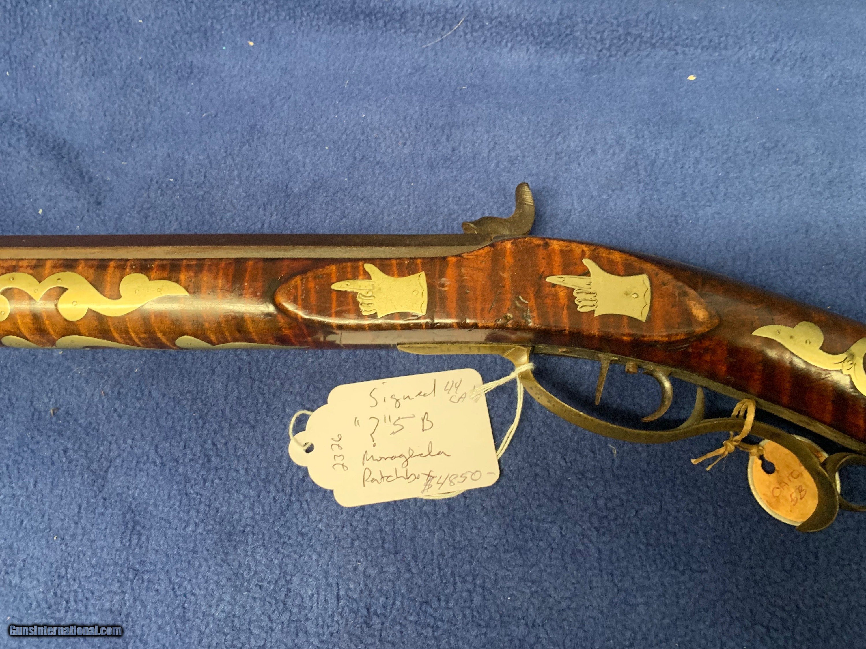 Description: Signed 5 B 44 cal 42 inch barrel Full Stock - Possibly Ohio - A lot of inlays Nice old rifle 3 day inspection Shipping is $75 Priority Mail - Insurance optional Certified Checks or Money Order Ohio residents add 7.25% tax No California sales FFL required SOLD |