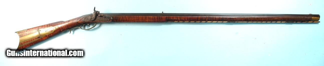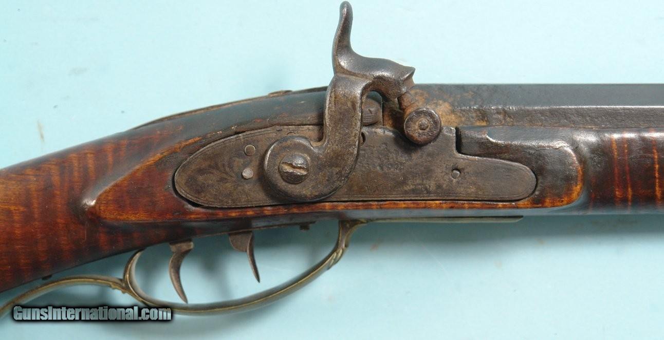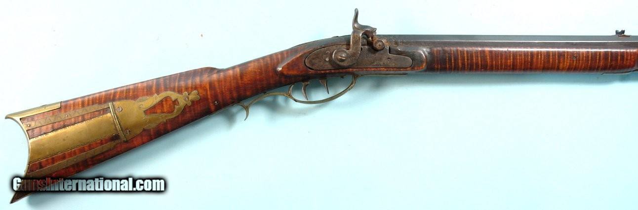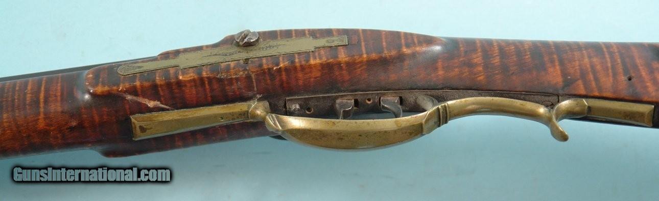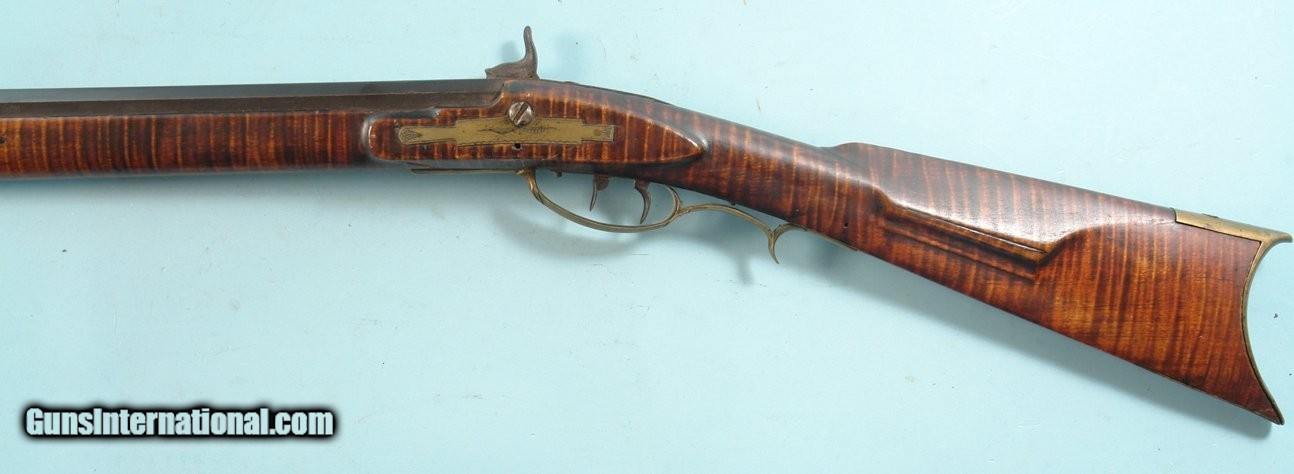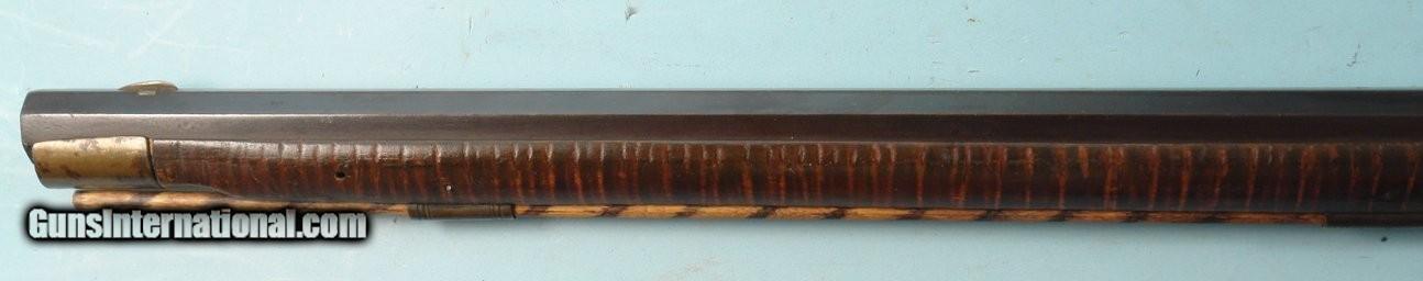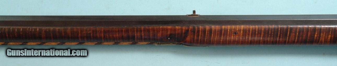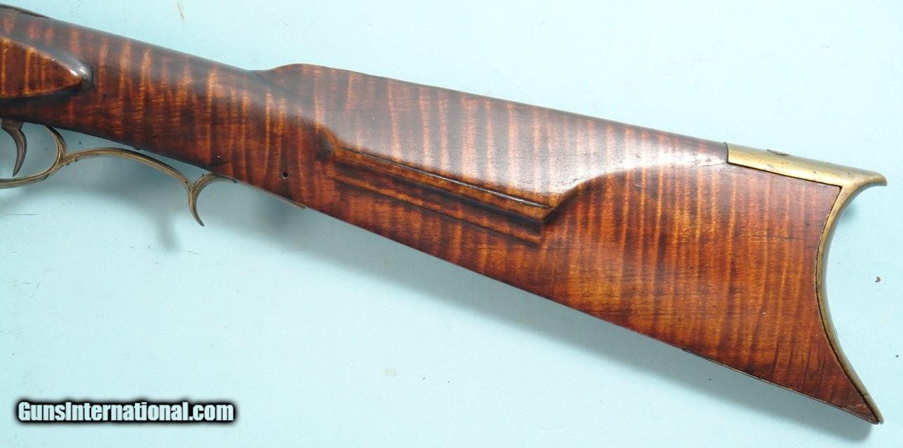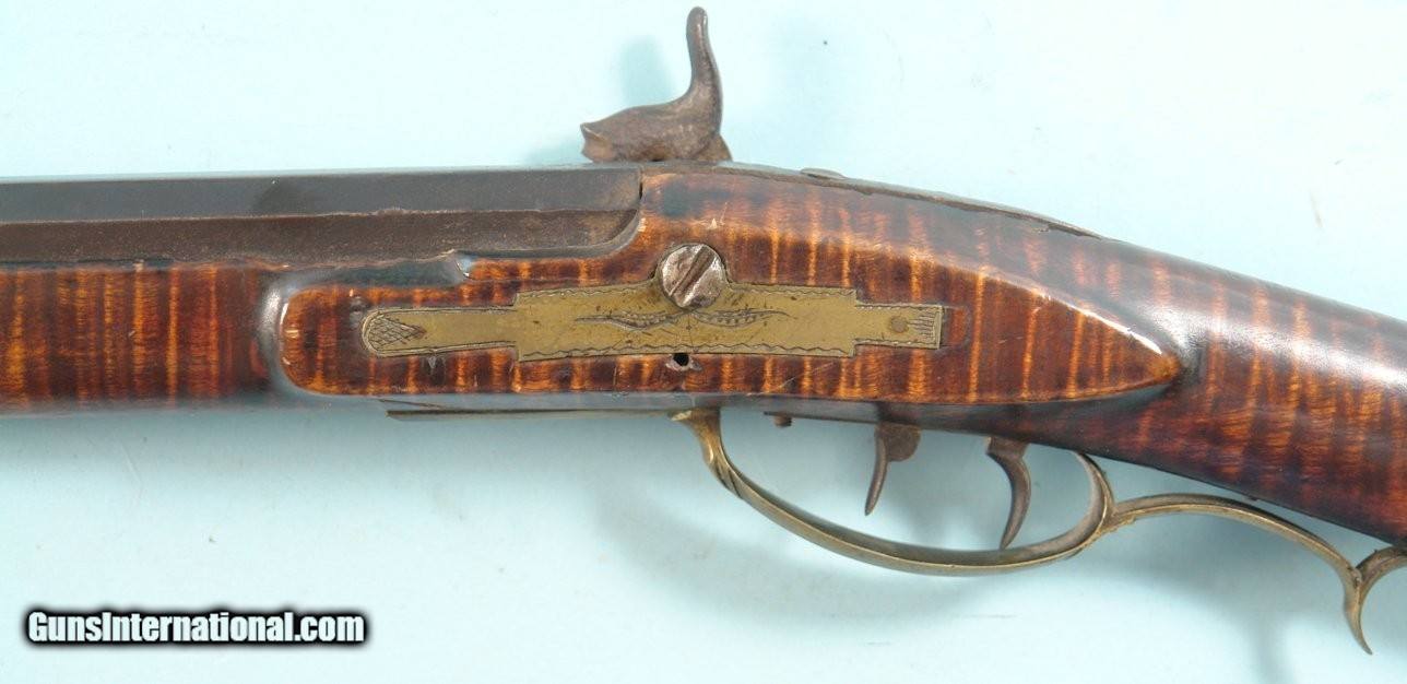 VERY FINE COLUMBIANA COUNTY, OHIO TIGER MAPLE PERCUSSION KENTUCKY STYLE LONGRIFLE BY SAMUEL SMALL CIRCA 1830’S.