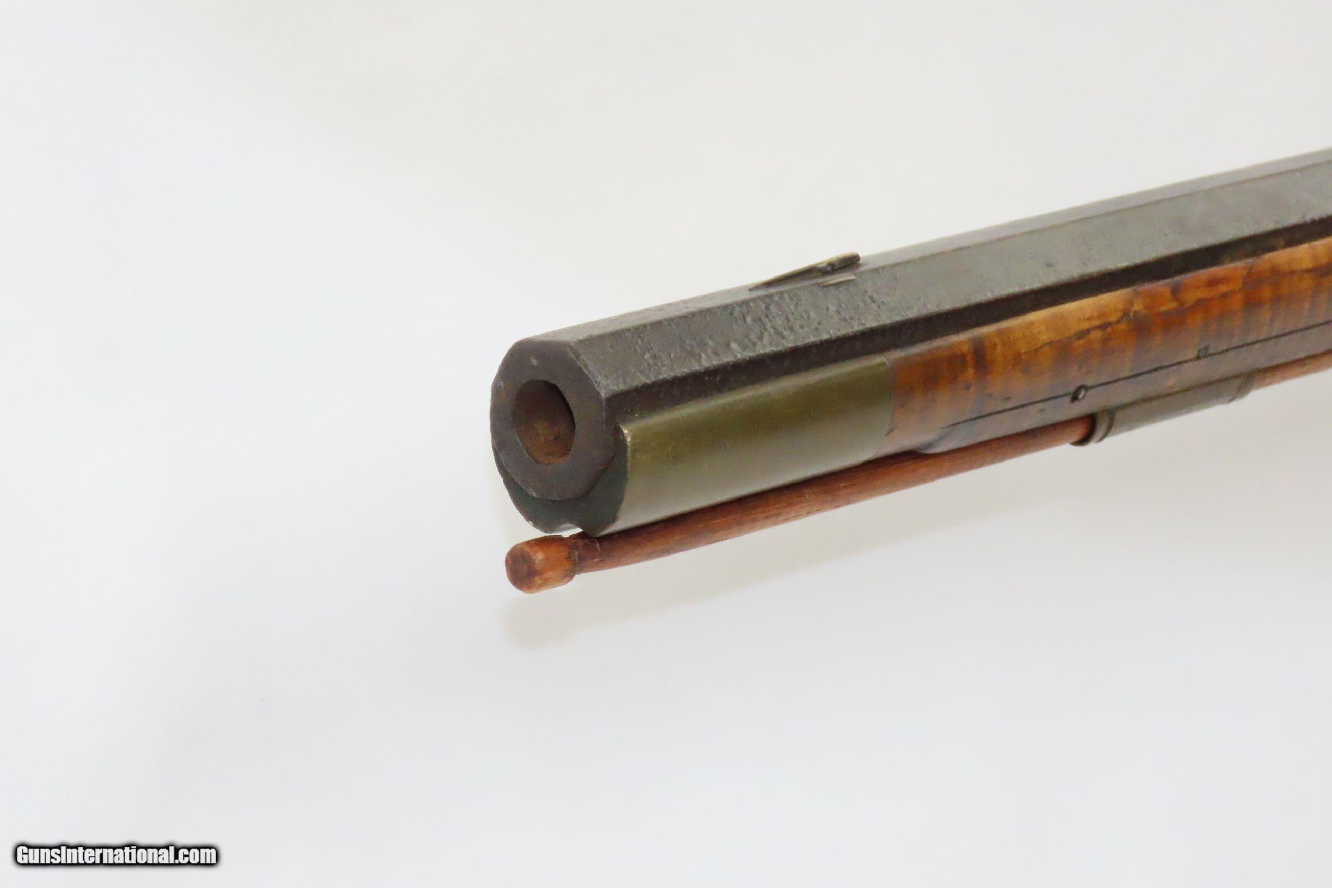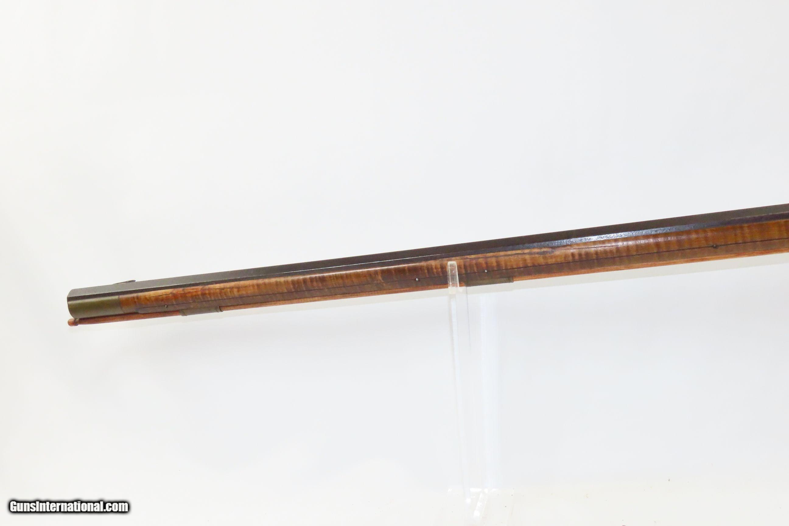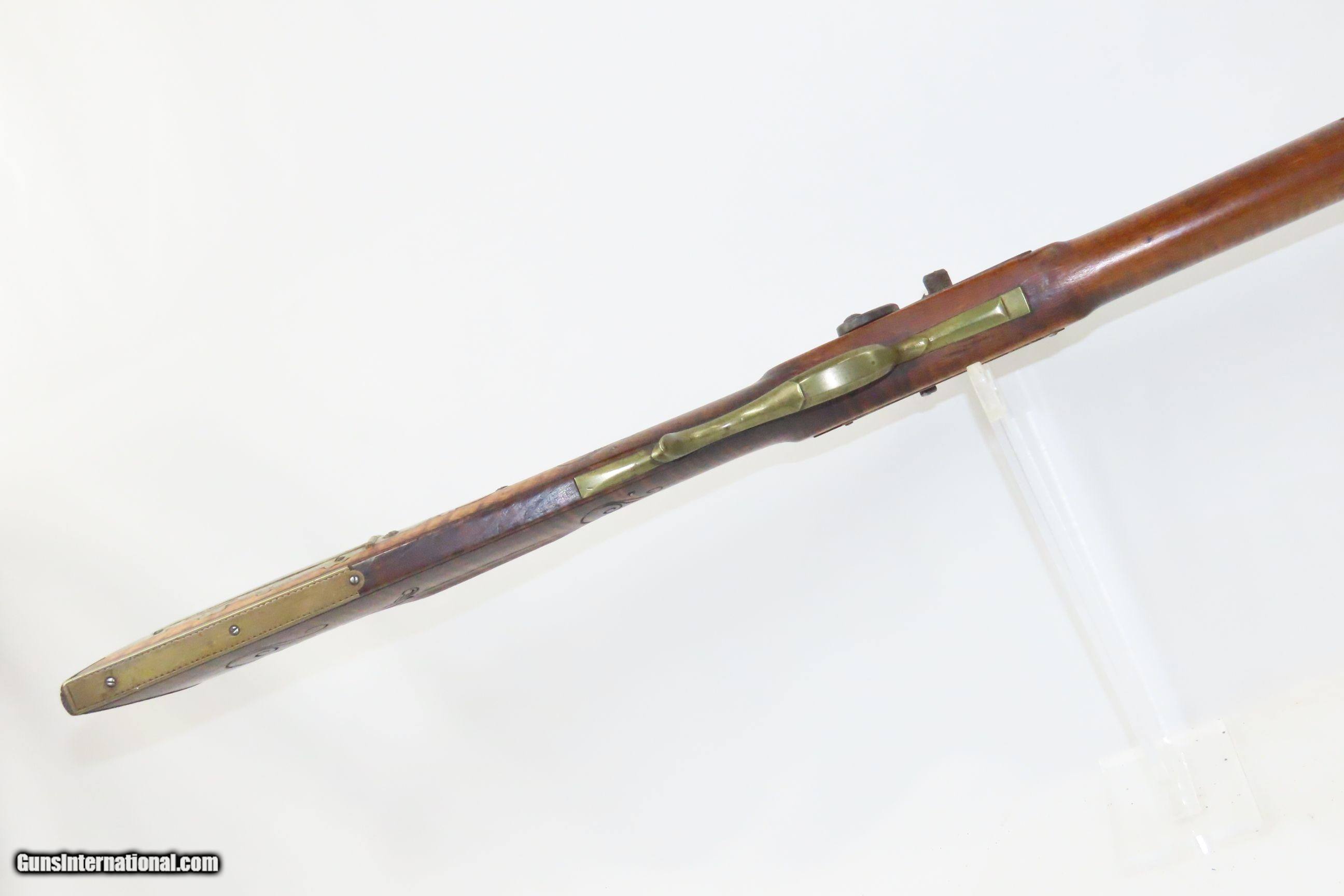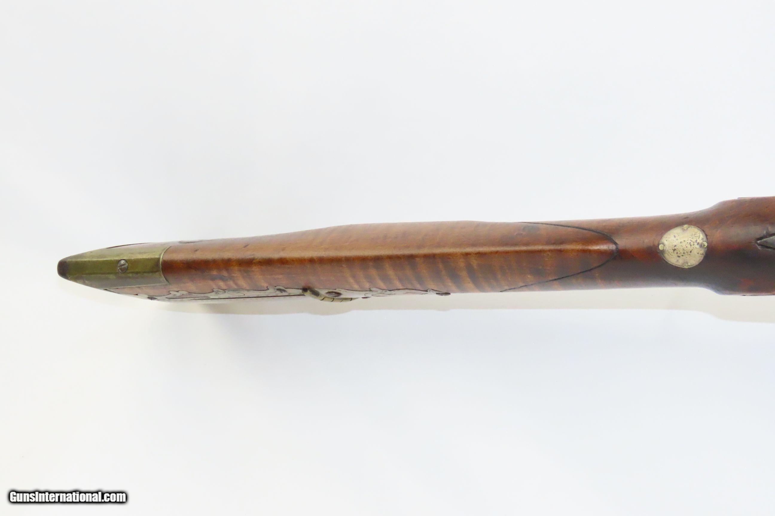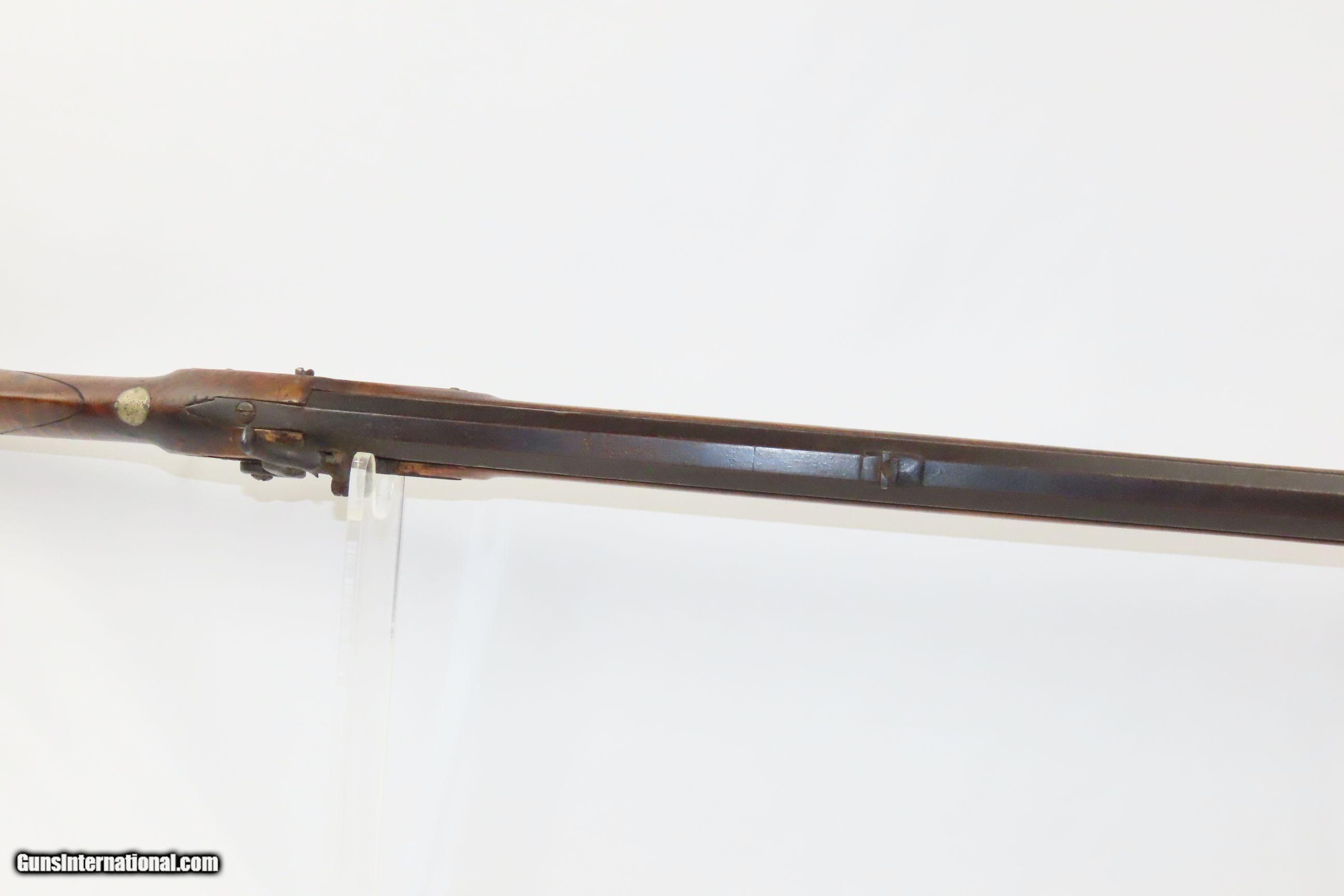 Description: WINCHESTER, VIRGINIA Long Rifle by J LAUCK .46 PIONEER HOMESTEAD VA Antique Shenandoah Valley, Frederick County Family of Makers Here we present an antique Long Rifle by Lauck, made circa the early-to-mid-1800s in Winchester, Virginia. The Lauck family produced multiple gunmakers in the Shenandoah Valley. Of the Lauck family of gunmakers, Gewirz lists Daniel, James, & Peter (1753), Simon (1795) Jacob (1816), John (1820), William (1840), and William P. (1850). The family were known for their choice of wood for their stocks, as well as the incised carving done, with “C scroll” typical of their work. Large, pierced brass patchboxes with a 4-petaled flower finial were another hallmark. According to the Preservation of Historic Winchester group, the house and smithy of Simon Lauck still stands on South Loudoun Street. Simon, along with his brothers Peter (he owned the Red Lion Tavern) & Abraham fought in the Revolutionary War under General Washington. Local tradition has it that they were part of Daniel Morgan’s honor guard and, having German as one of their languages, were able to translate between their officers and captured Hessian soldiers. Gluckman & Satterlee note that at least one Lauck made long rifle is known to have been used by a Confederate soldier during the American Civil War, and it is highly likely that many more were as well, given the prolificity of the family’s production and the geographical position of this gunmaking center of Virginia. The overall condition is very good. Original finish. The action is strong. The bore is dusty and untouched with thin rifling. The barrel is signed “J. Lauck” on the top flat. The full-length stock is solid with nice striped maple grain and bearing incised scrolls. Nice, large, pierced patchbox typical of the family. This is a wonderful example of a Shenandoah rifle and of the Lauck family’s work in particular. Own the original! This is a legitimate antique and not a reproduction. Barrel is 40-1/4 inches. Caliber: .46 Percussion Overall condition as seen in photos. Very Fast. Very Safe. FREE SHIPPING WORLDWIDE. Delivered directly to your door by express mail! Guaranteed AUTHENTIC & Includes CERTIFICATE OF AUTHENTICITY. ancestryguns $4400 #230021 SOLD Antique: Yes |