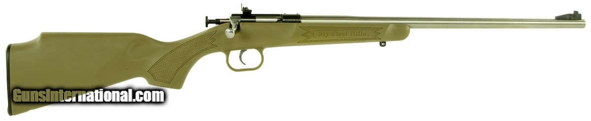 Description: Guns Listing ID: 288767 Crickett rifles are the staple of the youth shooting experience. A manual cocking singleshot bolt action it features a rebounding firing pin safety to prevent accidental discharge 2.53 lb. trigger pull 11.5 length of pull and a 16.125\" barrel. Crickett rifles have a fixed front sight adjustable rear peep sight and are drilled and tapped to accept Crickett scope mounts. This model has a synthetic desert tan stock with a stainless steel barrel.\ SOLD Manufacturer: CRICKETT Model: CRICKETT Caliber Info: .22 LR Condition: new Barrels: 16.1 BARREL Finish: BROWN |