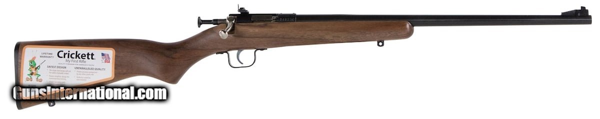 Description: Guns Listing ID: 280080 Crickett rifles are the staple of the youth shooting experience. A manual cocking singleshot bolt action it features a rebounding firing pin safety to prevent accidental discharge 2.53 lb. trigger pull 11.5 length of pull and a 16.125\" barrel. Crickett rifles have a fixed front sight adjustable rear peep sight and are drilled and tapped to accept Crickett scope mounts.This model has a American Walnut stock with a blued barrel.\ SOLD Manufacturer: CRICKETT Model: CRICKETT Caliber Info: .22 WMR Condition: new Barrels: 16.1 BARREL Finish: BROWN |