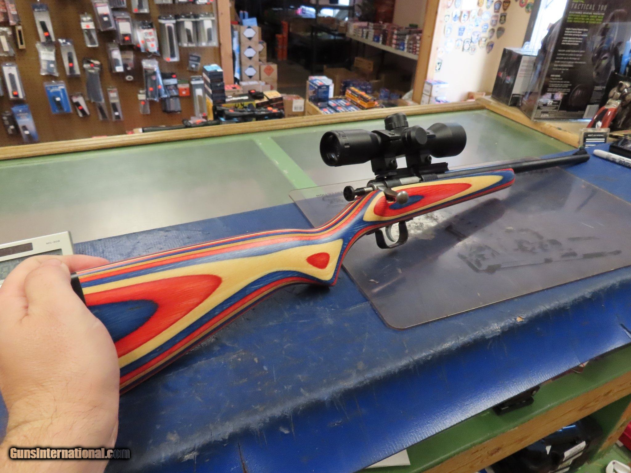Description: Guns Listing ID: 1301551 Keystone Sporting Arms Crickett .22lr. Red, white and blue wood laminated stock. Gun somes with a scope. In good shape as you can see. SOLD Manufacturer: KEYSTONE SPORTING ARMS Model: CRICKETT Caliber Info: .22 LR Condition: Used - Non-Certified Barrels: 16 BARREL Finish: LAMINATE |