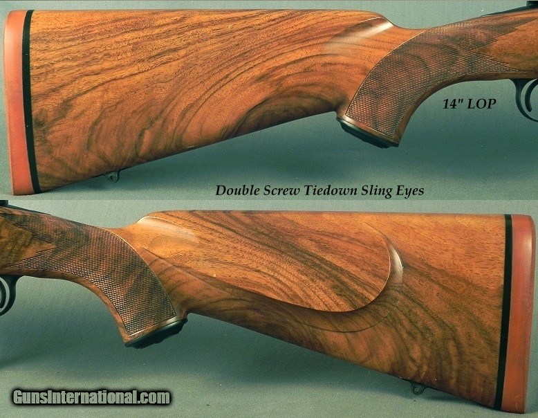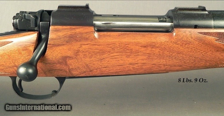 Description: #8901721, Kimber 375 H&H, Kimber Of Oregon, Inc.; Clackamas, Oregon, U.S.A.: Super America Model 89 BGR Big Game Rifle with a 1/4 Rib and Open Sights in 375 H&H, It remains unfired, 24" barrel, 1/4 Rib with 1 standing & 1 folding rear sights, Ramp front sight, Dovetail receiver with the double square bridge integral dovetails for quick detachable scope rings, Mauser style claw extractor, 3 position Model 70 style wing safety, Straddle hinged floorplate with a center bow release, Nice wood, Ebony forend tip, Wrap around point pattern checkering, Steel grip cap, Shadowline cheekpiece, Both front & rear sling studs has double screw tiedown, 14" LOP over a 3/4" factory pad, It will go 14 1/4" with a 1" pad, 8 lbs. 9 oz., The gun is unfired and remains as new, The blue is 99.5%, The stock is 99%, The checkering is 100%, The bore is new. SOLD Rifle Caliber: .375 H&H Magnum |
