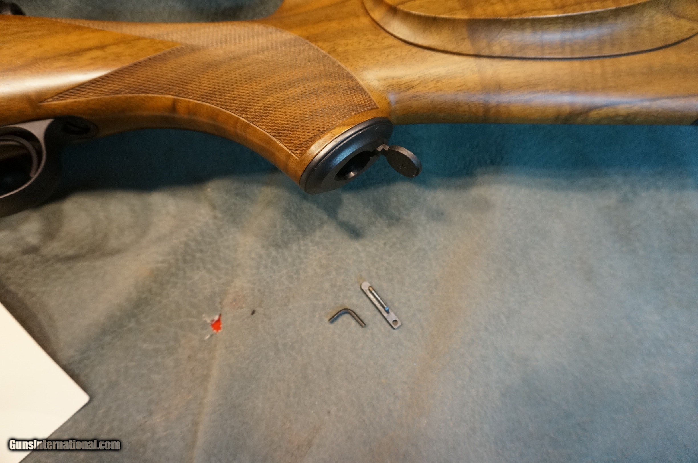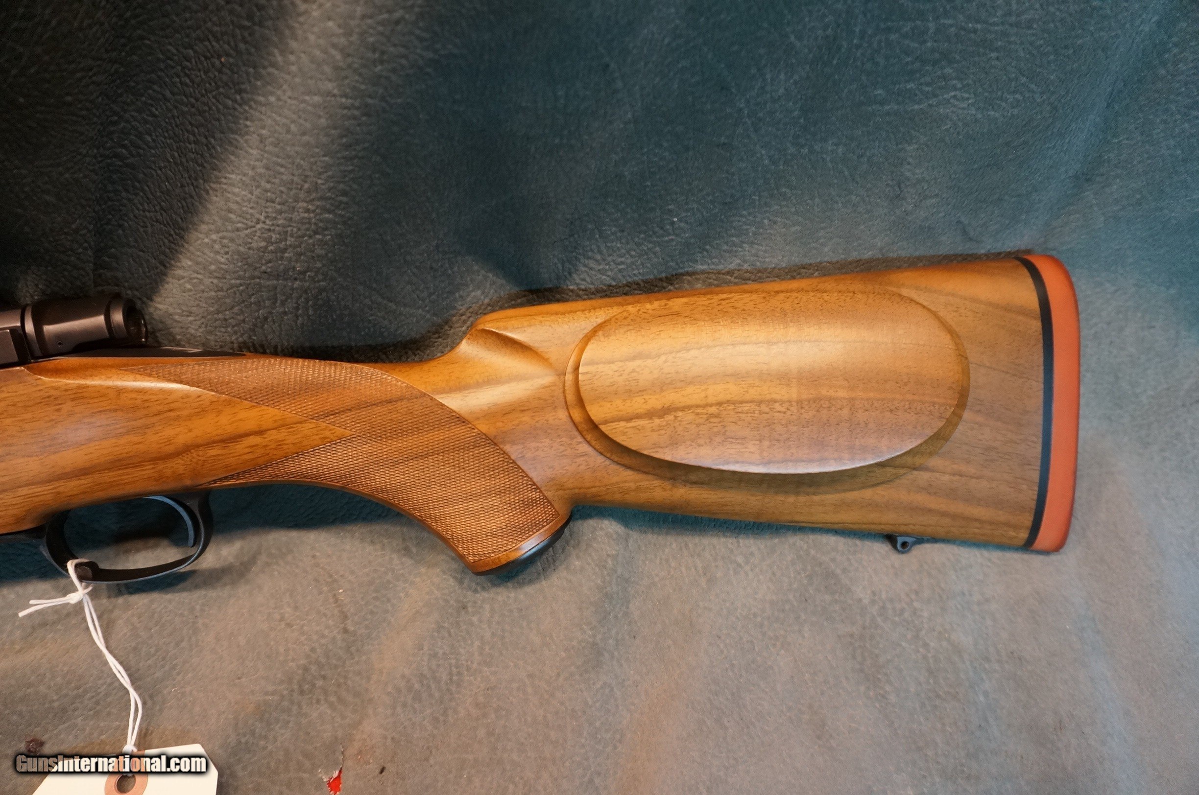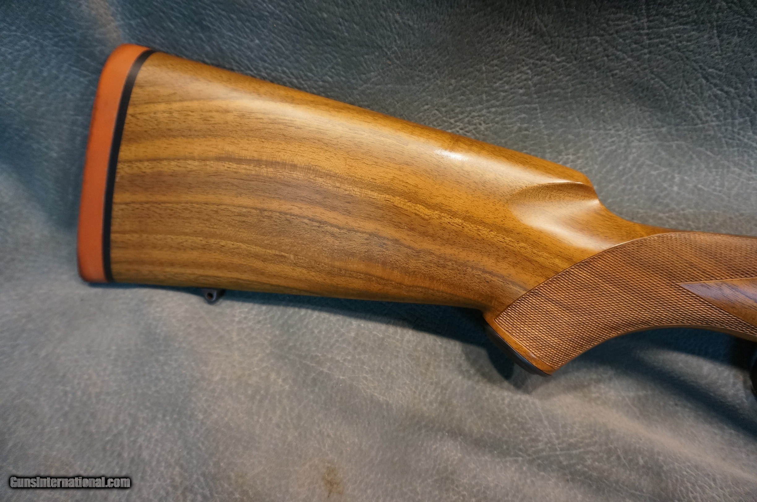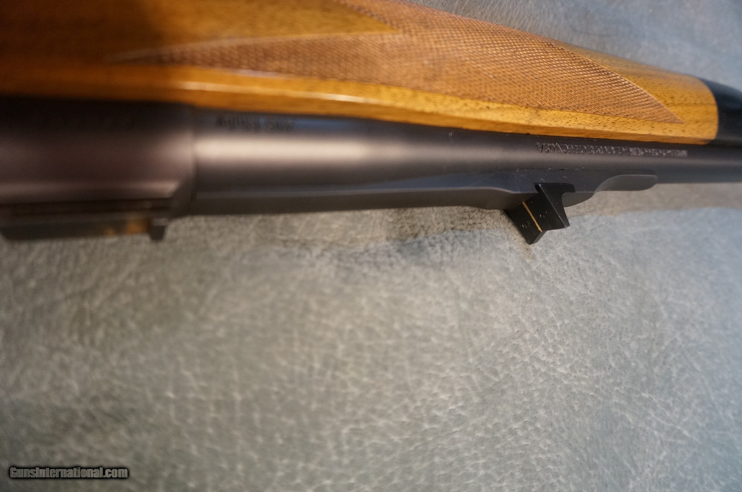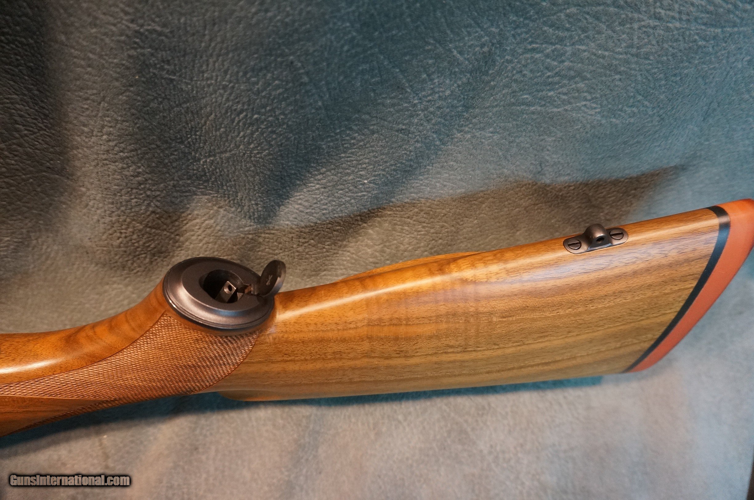 Description: Kimber of Oregon Model 89BGR 416 Rigby African,24" barrel with quarter rib rear sight with gold line,flip up banded front sight,double square bridge receiver,serial #AF0505,pretty wood,cheekpiece,wrap checkering,ebony forend tip,2 crossbolts,trap door grip cap with extra sight blade,inletted rear swivel and barrel band. GUN COLLECTIONS WANTED FOR CASH! We buy, sell, consign and trade new and used firearms.We will pay finders fees and travel for large collections. This is our 46th year in business. We offer 90 day layaways with 20% down. No return on layaways. Firearms will need to be transferred through a FFL dealer. Prices reflect a cash discount. There will be 3% added to credit card sales. We trade for gold and silver. THANK YOU! SOLD |