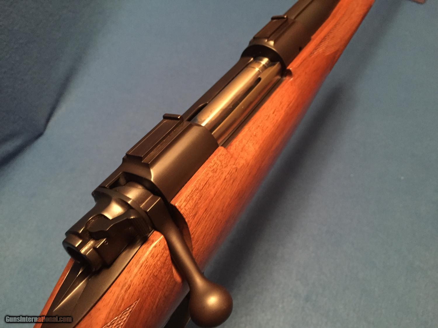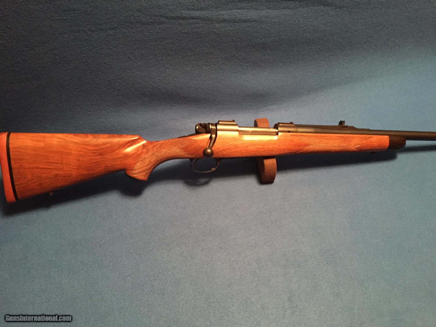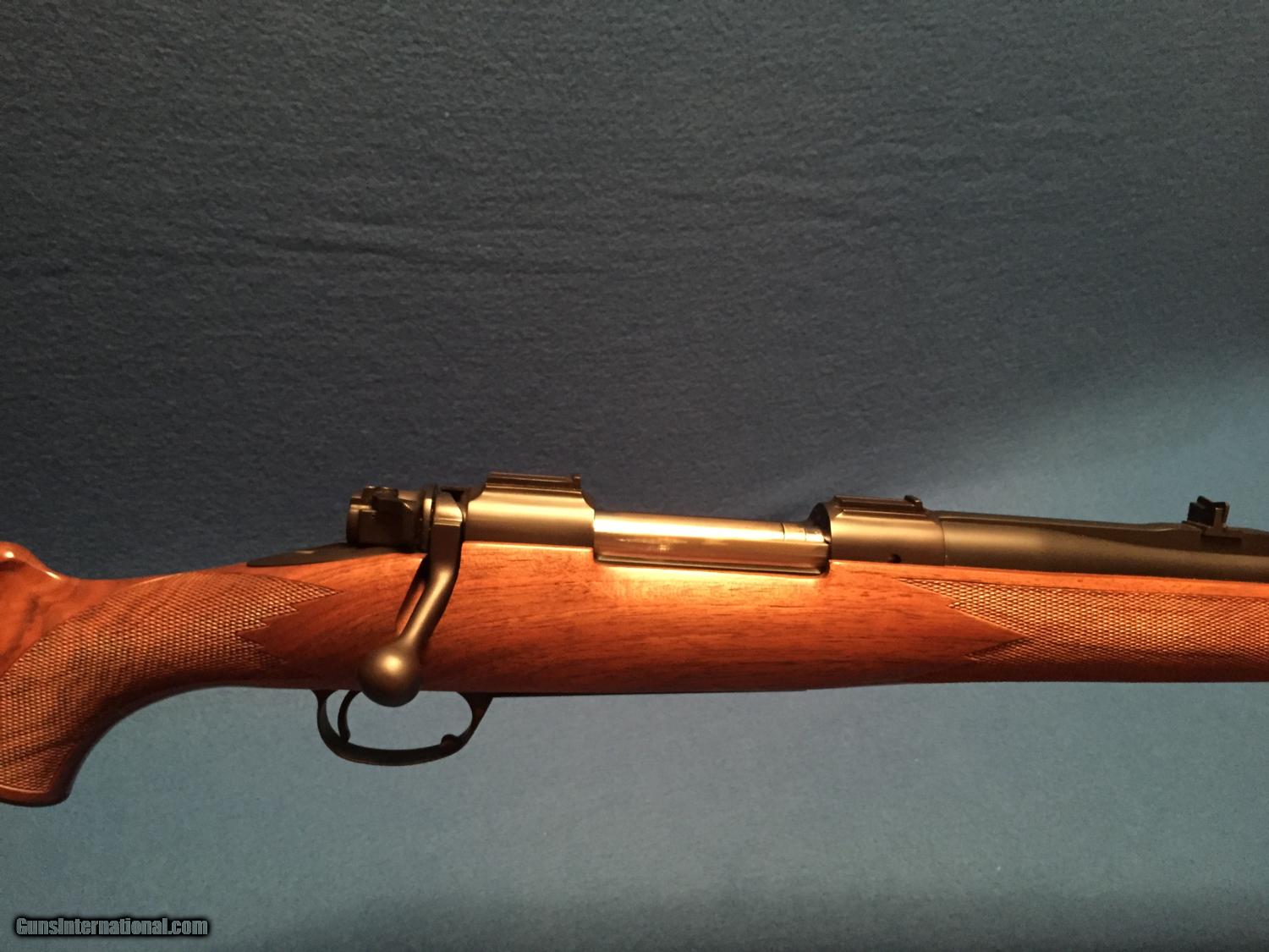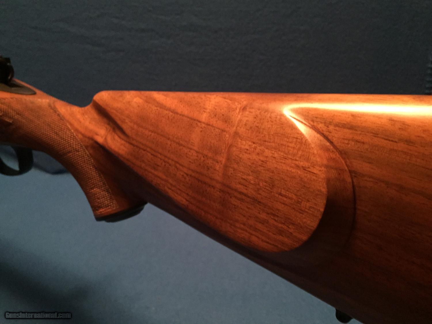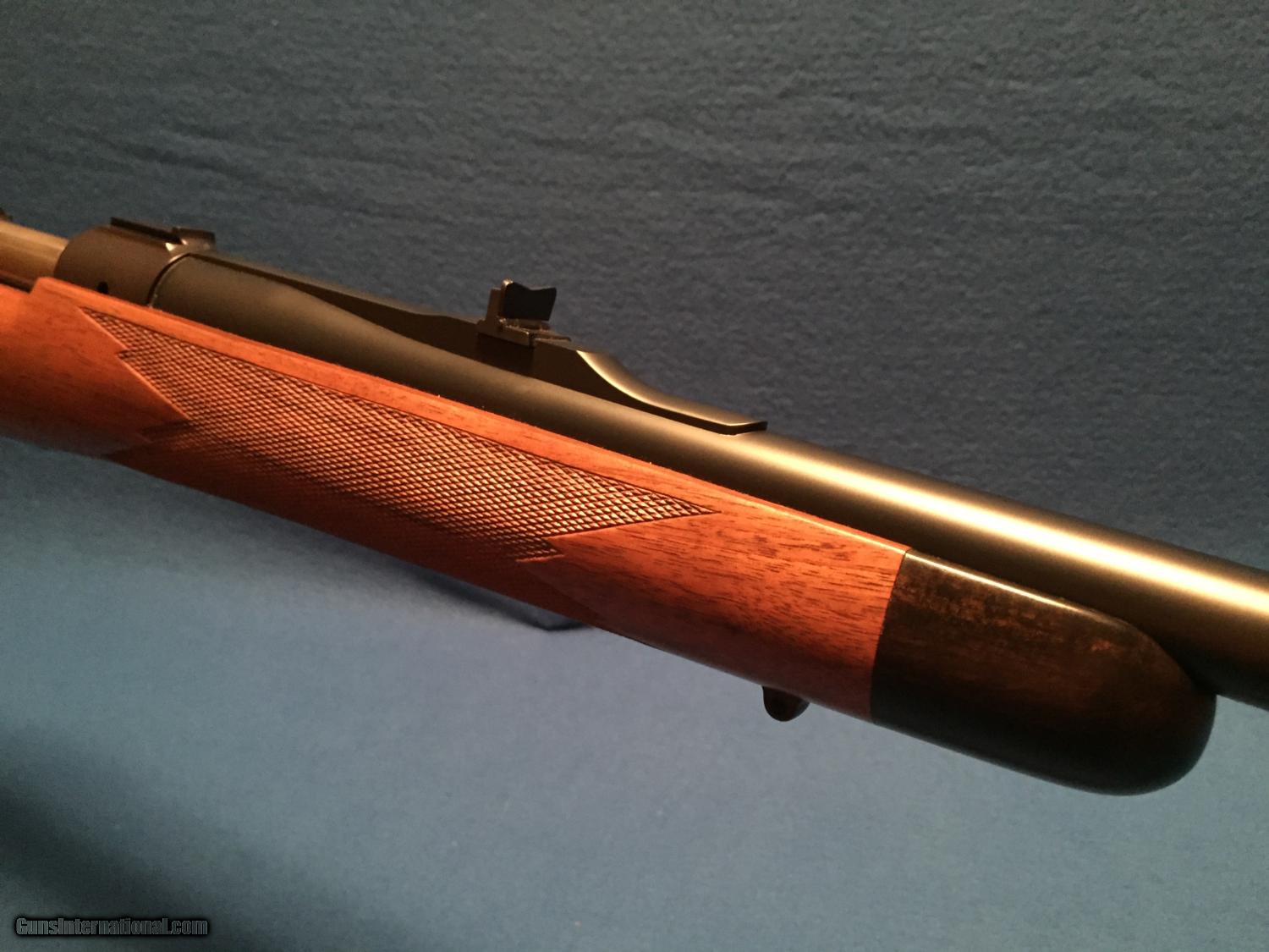 Description: Excellent condition as new. Heavy barrel matte finish, excellent walnut stock with beaded cheek piece and rubber recoil pad. Square bridge dove tail receiver and sights being 2 leaf express on a quarter rib. SOLD Model: 89 BGR Serial Number: SG4376 Weight: 8.5 LBS |