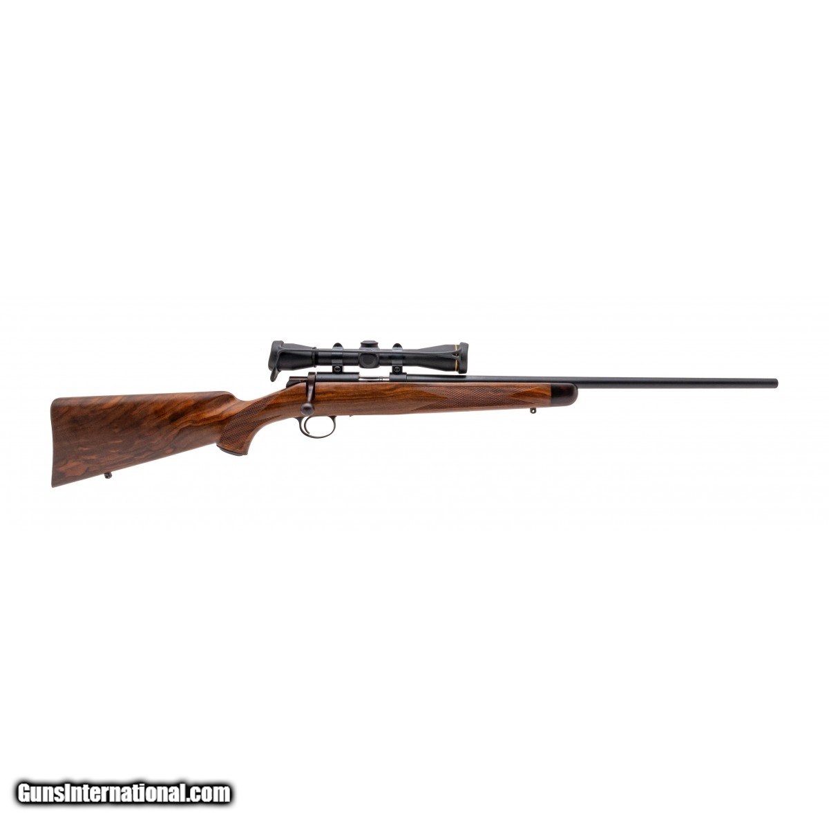 SN: KH7. 1980's production .22 K-Hornet caliber with a 22"" barrel. Bore is excellent. Deluxe repeater sporting rifle with matte blue finish and extra fancy figured walnut. Has been expertly refinished and is in excellent overall condition. Has a Leupold 4X scope. Consignment.
