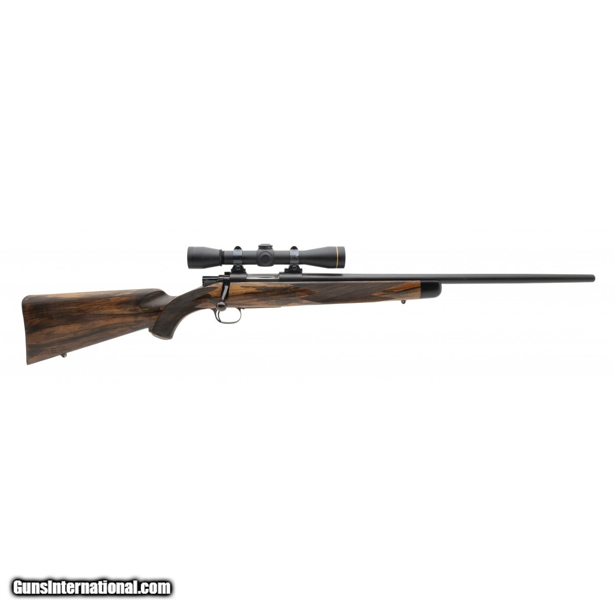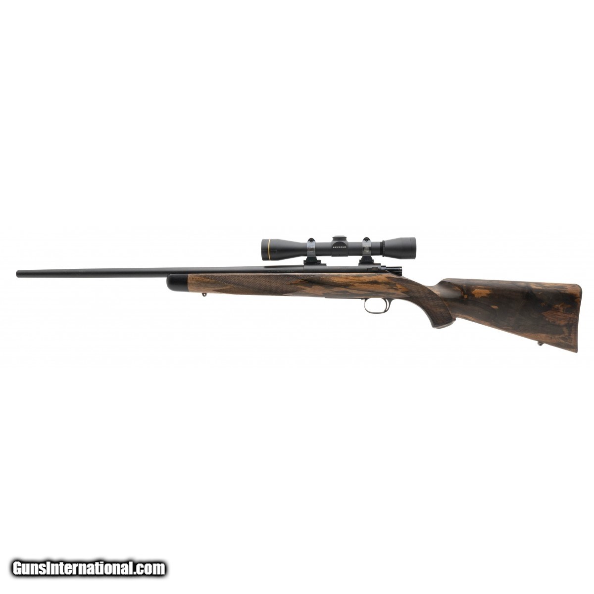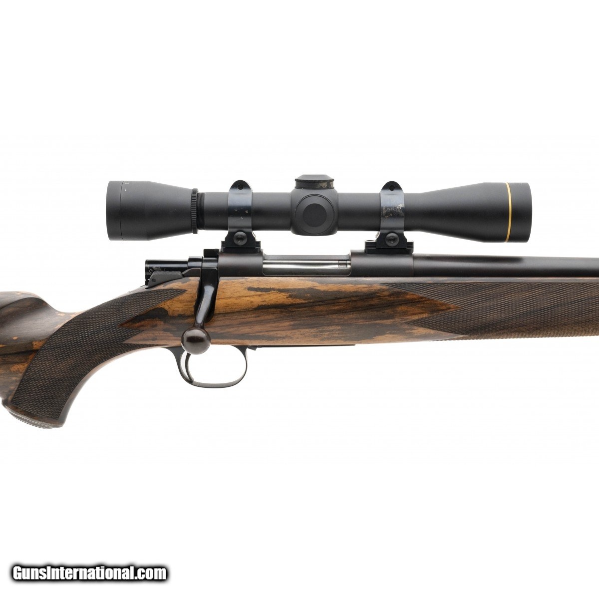 Description: " SN: R7 of 200. 1980's production .223 Rem caliber with a 22"" barrel. Bore is very good. Limited edition premium grade repeating rifle. Has about 90% original finish on the metal. The stock finish is damaged and needs a refinish. Has a Leupold 4X scope. A scarce and desirable rifle, would make a good restoration project. SOLD |