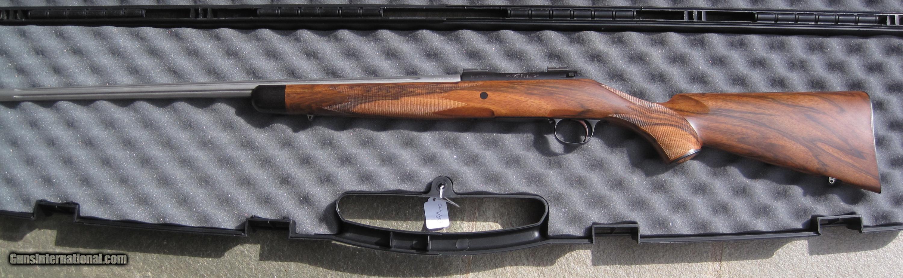Description: One of the most beautiful Cascade Arms Lynx VEX 22-250 ever produced. Perfect unfired condition. Match grade SS fluted barrel, skeleton grip cap, extra fancy walnut stock, wrap around checkering, jeweled bolt, inletted swivel studs and bases. The photos speak for themselves. Shipped in a new plastic rifle case. $60 shipping and insurance. SOLD Manufacturer: Cascade Arms Model: Lynx Caliber Info: 22-250 |