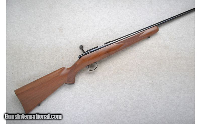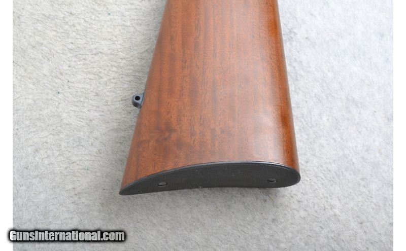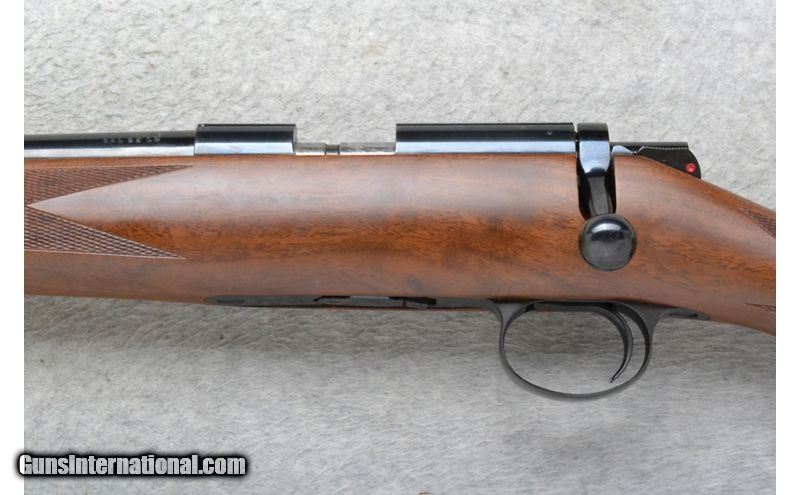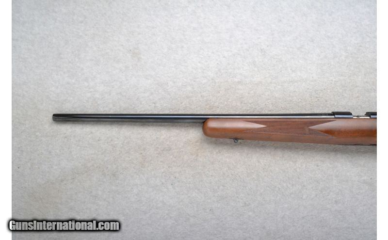 Description: This Kimber Model 82 is a left hand bolt action rifle in .22 Long Rifle Cal. It has a 22 inch barrel. It is dove tailed for a scope mount. No iron sights. The butt stock is a checkered grip walnut pistol grip with a steel cap. The forearm is a checkered grip walnut. .22 Long Rifle SOLD Chambers: 5 round magazine. Metal Condition: Excellent. Wood Condition: Excellent. Bore Condition: Excellent. Barrels: 22 inch. Stock Dimensions: LOP 13 1/2 inches. Fore End: Checkered grip walnut. Butt Pad: Checkered steel plate. Weight: 6 lb. 12 oz. Sights: Dove tailed for a scope mount. No iron sights. Item Location: Richfield, WI |