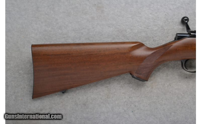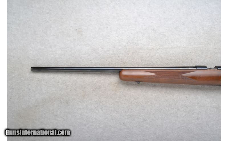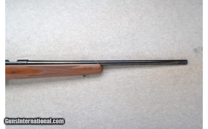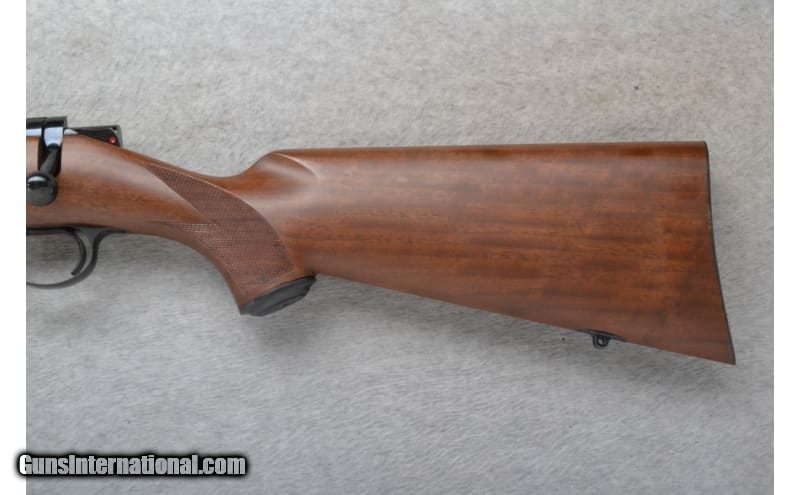 Description: This Kimber Model 82 is a left hand bolt action rifle in .22 Long Rifle Cal. It has a 22 inch barrel. It is dove tailed for a scope mount. No iron sights. The butt stock is a checkered grip walnut pistol grip with a steel cap. The forearm is a checkered grip walnut. .22 Long Rifle SOLD Chambers: 5 round magazine. Metal Condition: Excellent. Wood Condition: Excellent. Bore Condition: Excellent. Barrels: 22 inch. Stock Dimensions: LOP 13 1/2 inches. Fore End: Checkered grip walnut. Butt Pad: Checkered steel plate. Weight: 6 lb. 12 oz. Sights: Dove tailed for a scope mount. No iron sights. Item Location: Richfield, WI |