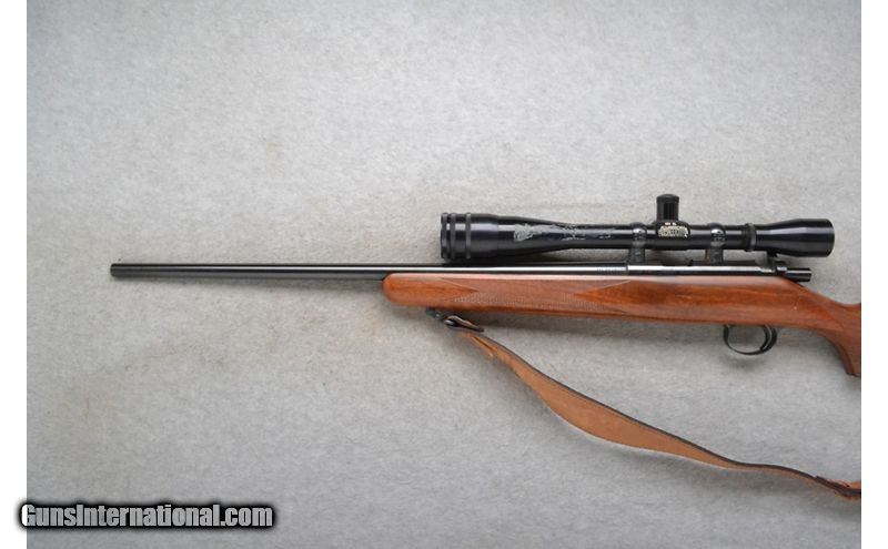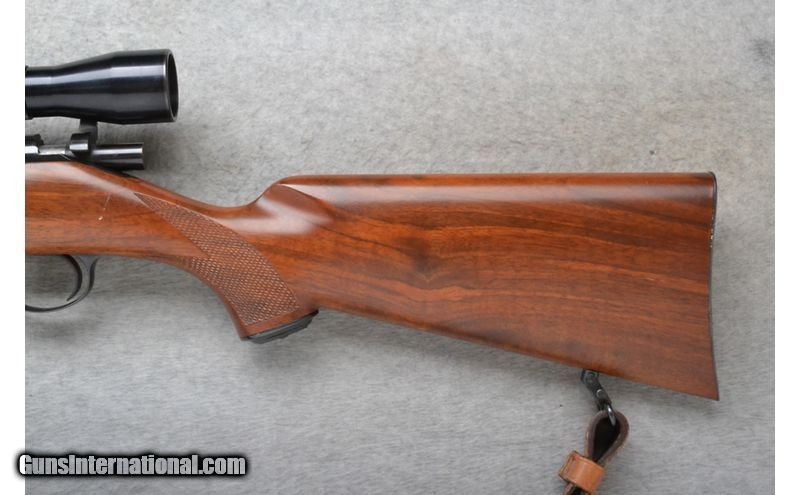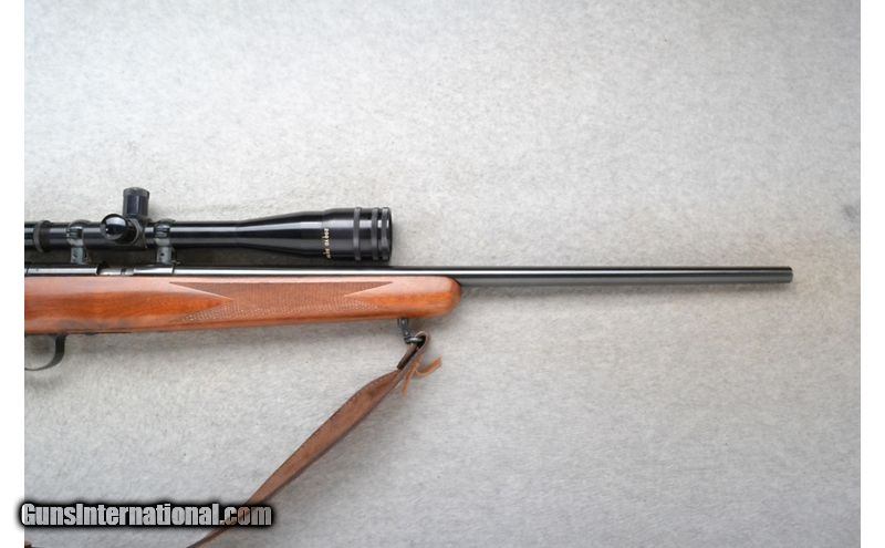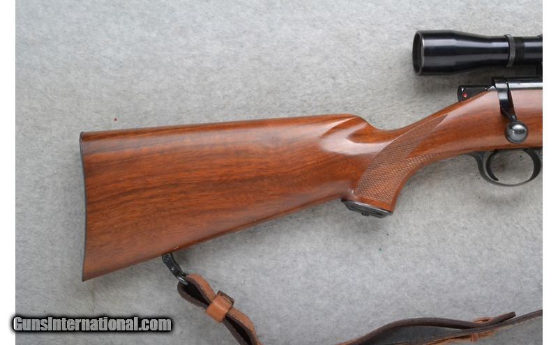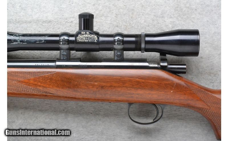 Description: This Kimber of Oregon Model 82 is a right hand bolt action rifle in .22 Long Rifle Cal. It has a 22.5 inch barrel. It is outfitted with a Lyman made scope. No iron sights. The butt stock is a checkered grip walnut pistol grip with a steel cap. The forearm is a checkered grip walnutes with a leather sling. .22 Long Rifle SOLD Chambers: 5 shot detachable magazine. Metal Condition: Excellent. Wood Condition: Very Good with minor handling marks. Bore Condition: Excellent. Barrels: 22.5 inch. Stock Dimensions: LOP 13 1/2 inches. Fore End: Checkered grip walnut. Butt Pad: Checkered steel plate. Weight: 7 Lb. 14 Oz. Sights: Lyman All-American 10X SL Scope. No iron sights. Item Location: Richfield, WI |