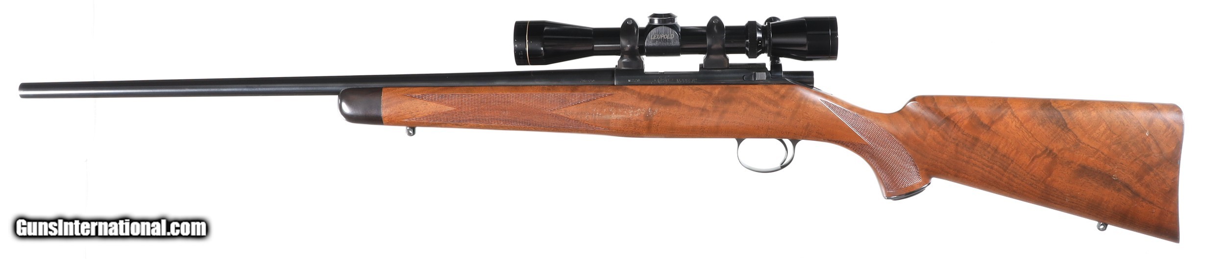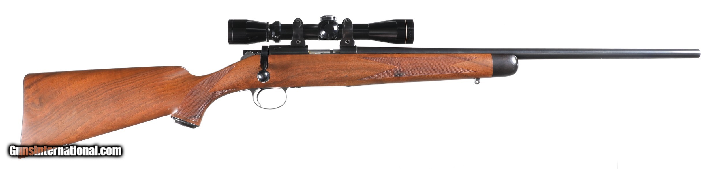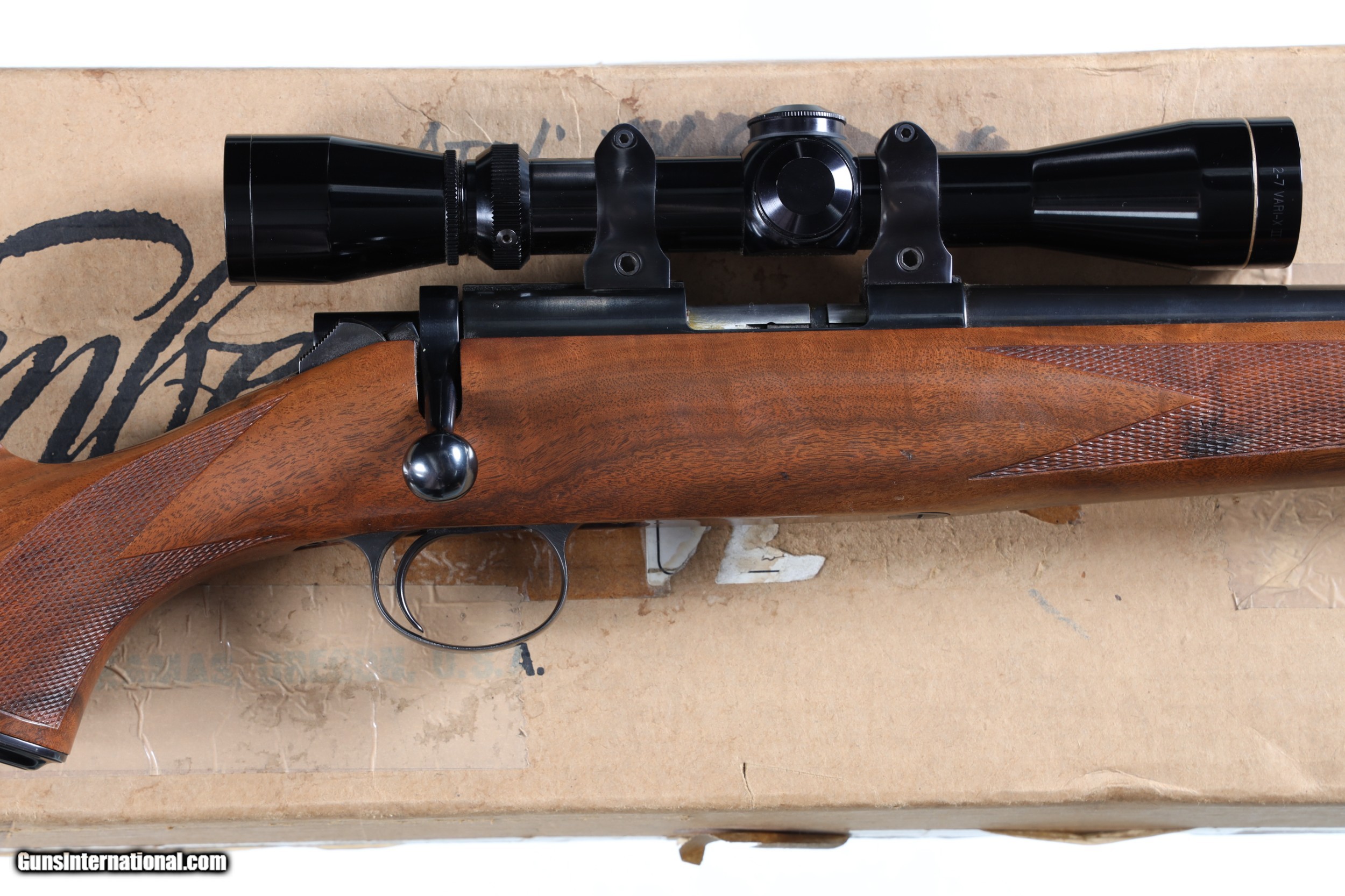Description: Metal surfaces rate excellent plus, a few imperfections in left side of wood finish. With original box and Leupold Vari-X IIc 2-7x scope. Mfd in Clackamas • Free Shipping, No Credit Card Fees. • Lay-a-way available for this firearm. • 1/3 Down, a 1/3 in 30 Days 1/3 in 60 Days. SOLD Manufacturer: Kimber Model: 82 Serial Number: W228 Barrel Length: 21 1/2 |