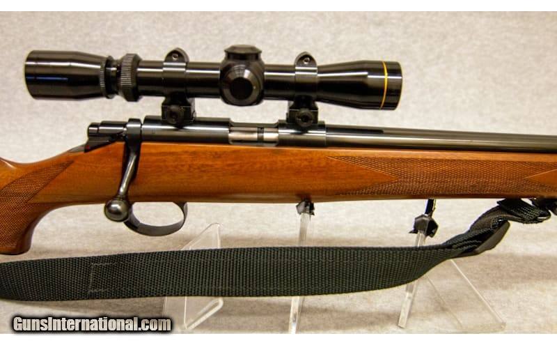 Description: Kimber 82 Classic, chambered in .22 LR. Features include: Mauser type rear locking bolt action, 5 shot mag., 22 in. Sporter barrel, deluxe Claro walnut stock, rubber buttplate, rocker style safety, right-hand action, 6 1/2 lbs. .22 Long Rifle SOLD Chambers: .22 LR Metal Condition: Excellent Wood Condition: Excellent Bore Condition: Excellent Barrels: 22'' Stock Dimensions: 13'' Butt Pad: Rubber Sights: Leupold Vari-X 2X7 Item Location: Fort Mill, SC |