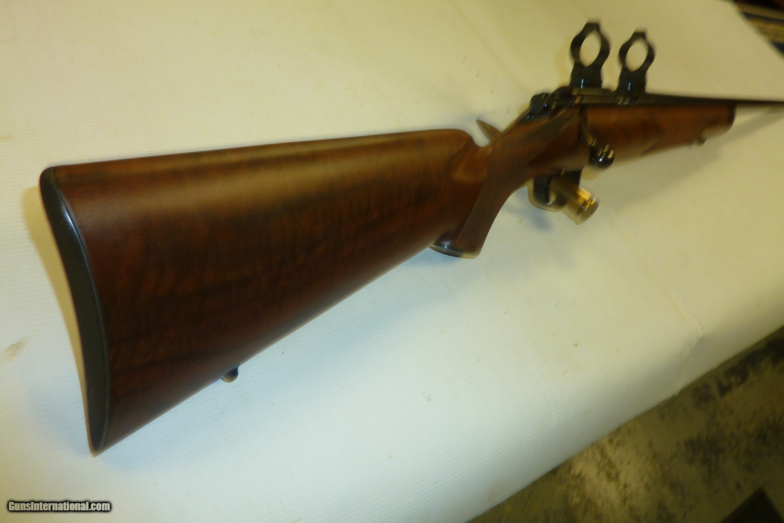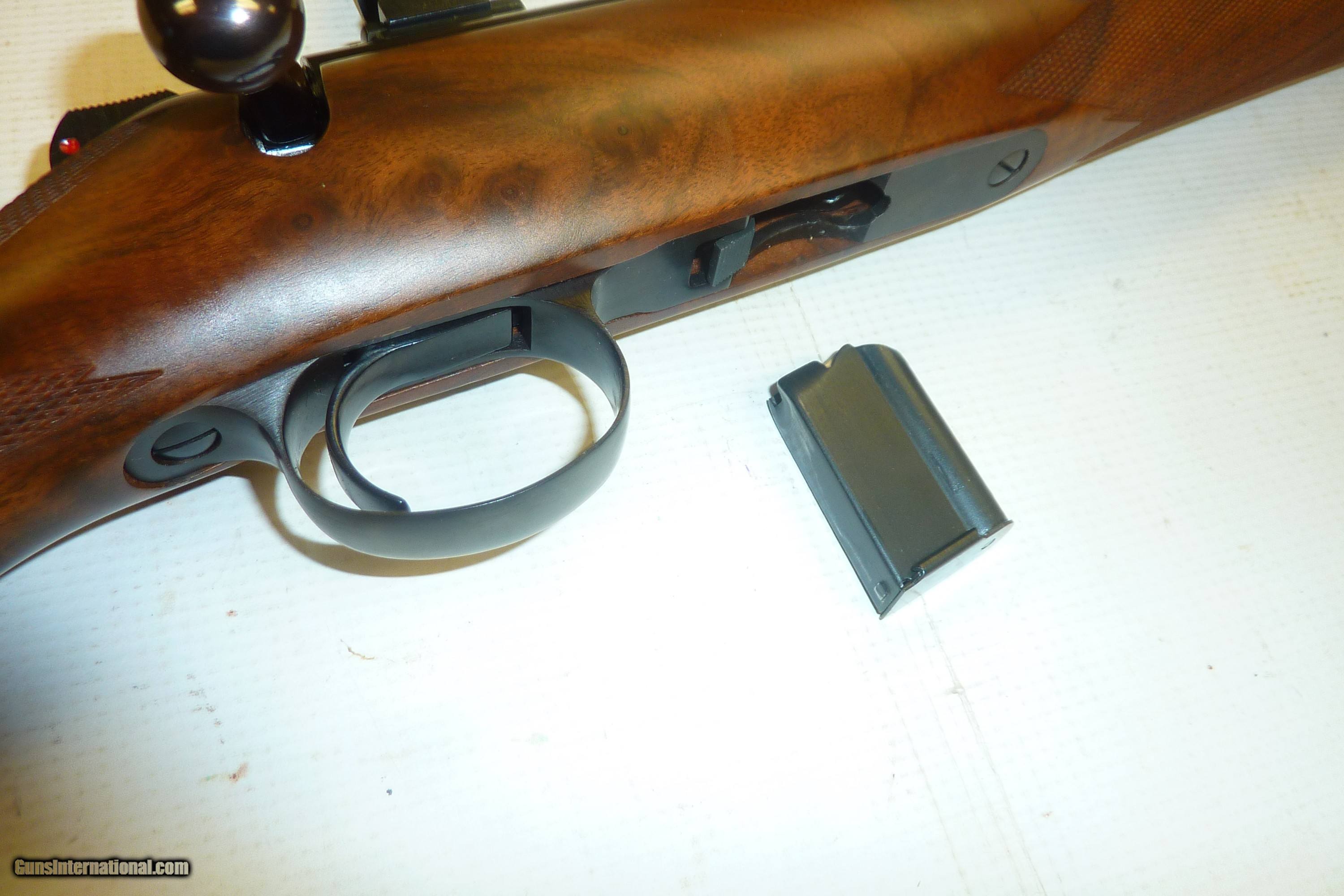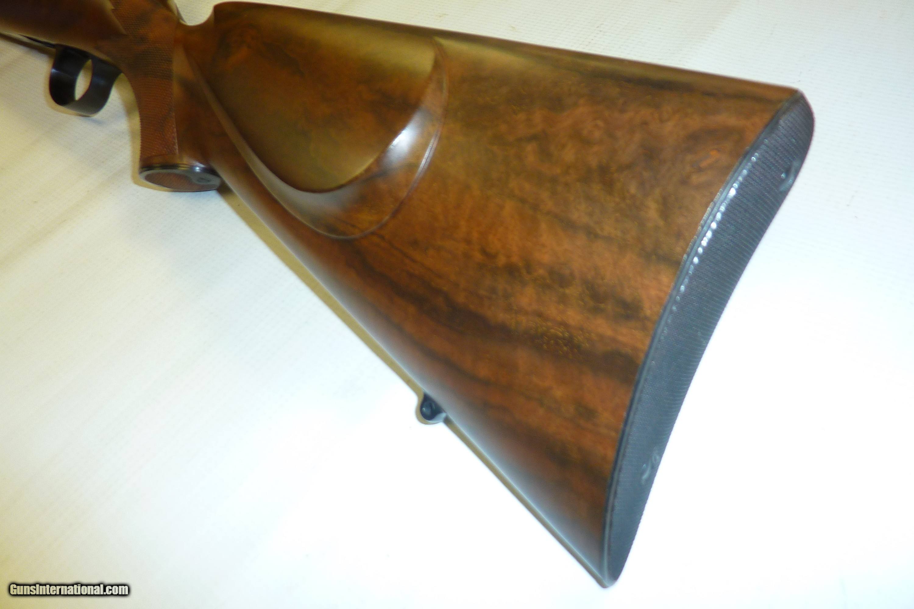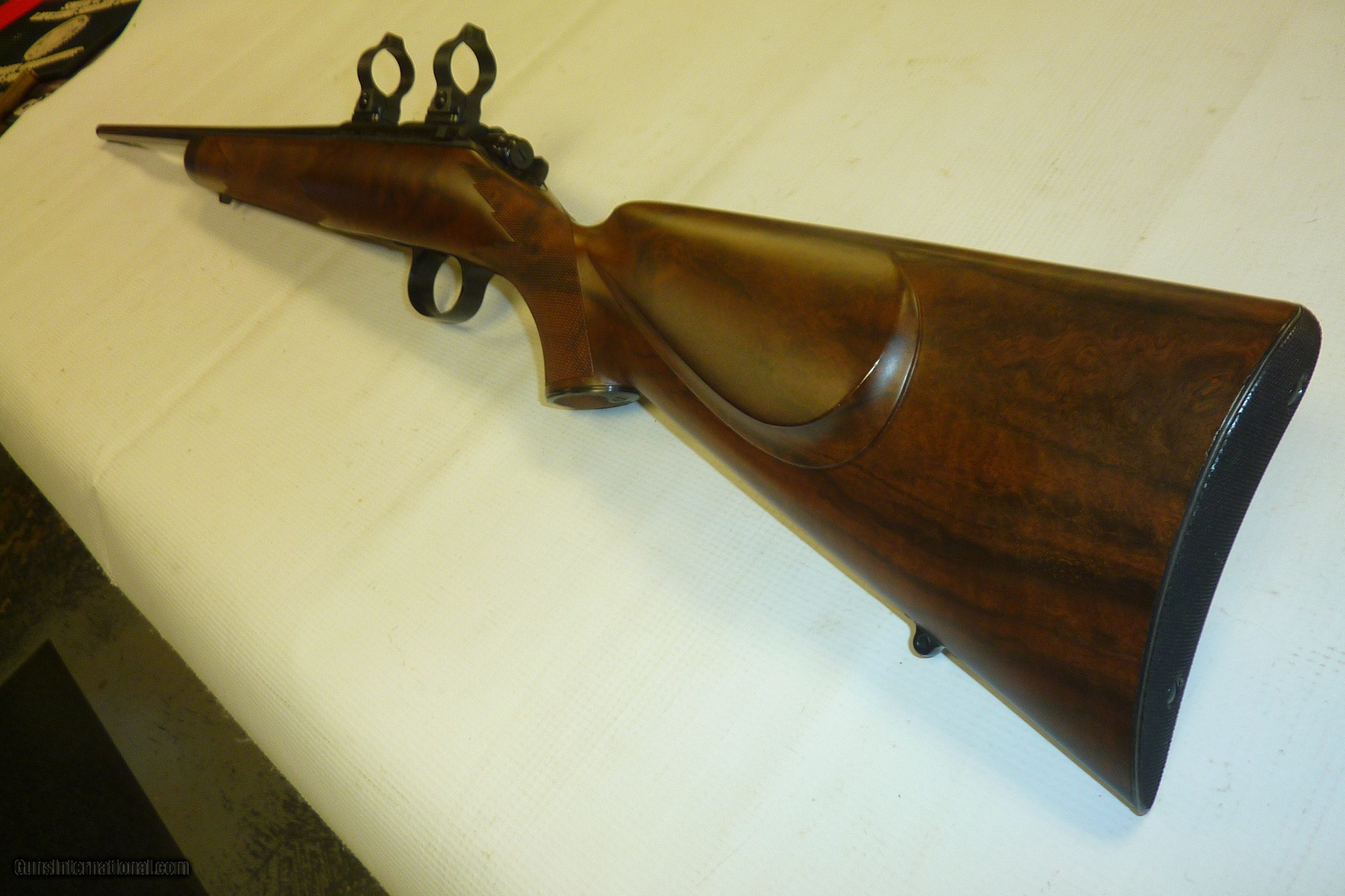 Description: Kimber 82B SuperAmerica 22 cal bolt action rifle 22" bbl. Drilled and tapped receiver with 1" Talley steel rings installed. AAA Claro checkered walnut stock with NO handling marks. The deep bluing is also free from rust, pitting, or scratches.. This rifle is in new condition with approximately 300 rounds since new. The bore and rifling are bright and sharp. 1 detachable 4-round magazine. The serial # is SA1099B. Mfg in Oregon. SOLD |