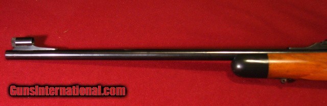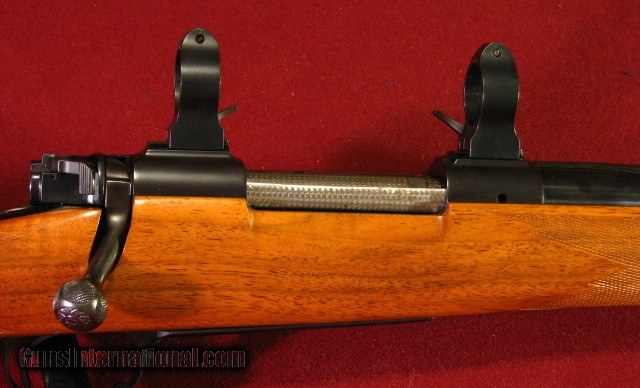 Description: Kimber of Oregon, Clackamas, Model 89 BGR in .300 Winchester Magnum. 24" barrel with hooded ramp front sight and nicely sculpted quarter rib with one standing and one folding leaf rear sight. Kimber proprietary double square bridge Mauser action with 1" Kimber/ Len Brownell lever release rings. Three position side swing safety. The bolt and follower are finely jeweled with 4 panel bolt knob checkering and a rosette engraved tip. Fully adjustable trigger. Bottom metal with straddle floorplate and trigger bow release. Stocked in a very nice piece of California English Walnut in American Classic style with a shadowline cheekpiece, point pattern checkering that wraps the forend, two screw inletted sling studs, and a steel grip cap. 13 1/2" LOP to a factory red rubber pad. 8lb 6oz The Kimber BGR was only produced from 1988 until the companies demise in 1991 with fewer than 5000 produced. This is the top of the line model with all the bells and whistles and the only one that I have seen with bolt knob checkering and engraving. It is in nearly new condition with very slight handleing marks. Appears to be test fired only. I think that the Kimber BGR has been a very under appreciated semi-custom rifle with many outstanding features that exceed the Dakota rifles. I particularly like their DSB Mauser action. This one is exceptionally nice. SOLD |
