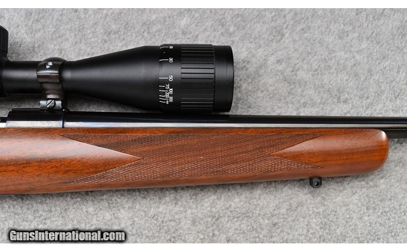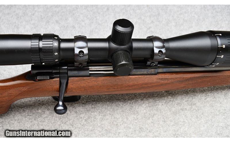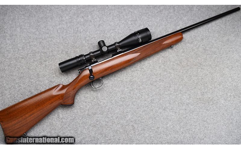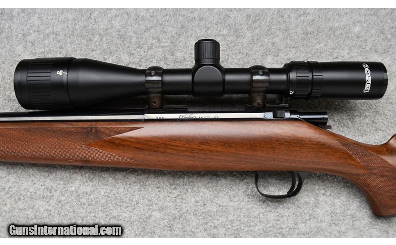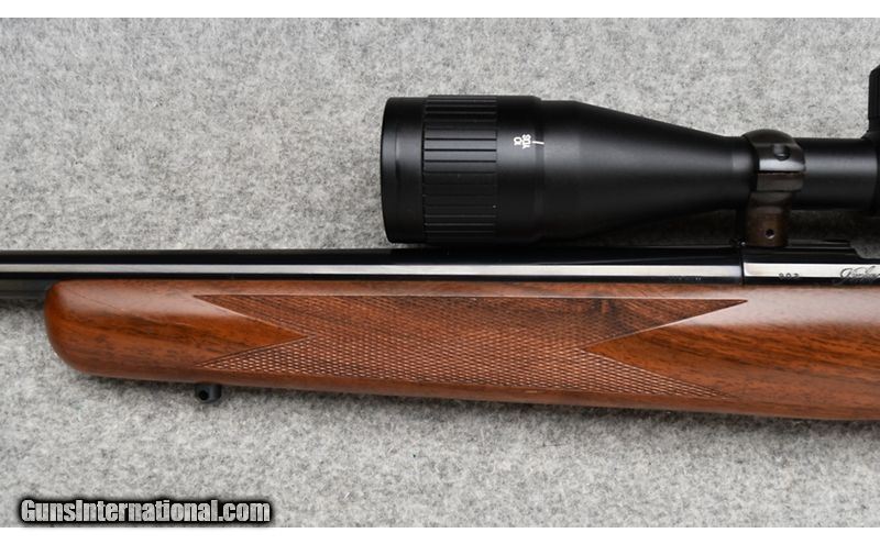 Description: This Kimber Model 84 remains in excellent overall condition with a low serial number. Wood is solid and excellent showing a few tiny marks on left side of stock. Blue is also excellent with one small mark under front scope mount on right side of gun. Left side rear scope ring has screw protruding from mount. Bore is excellent! Controlled round feed action. Nice little gun! .223 Remington SOLD Metal Condition: Excellent Wood Condition: Excellent Bore Condition: Excellent Barrels: 22 Triggers: 3 LB Trigger Stock Dimensions: 13 7/8" LOP Butt Pad: Checkered Metal Butt Plate Weight: 7.5 lbs. Sights: Tasco 3x12-300 Scope Item Location: Wheeling |