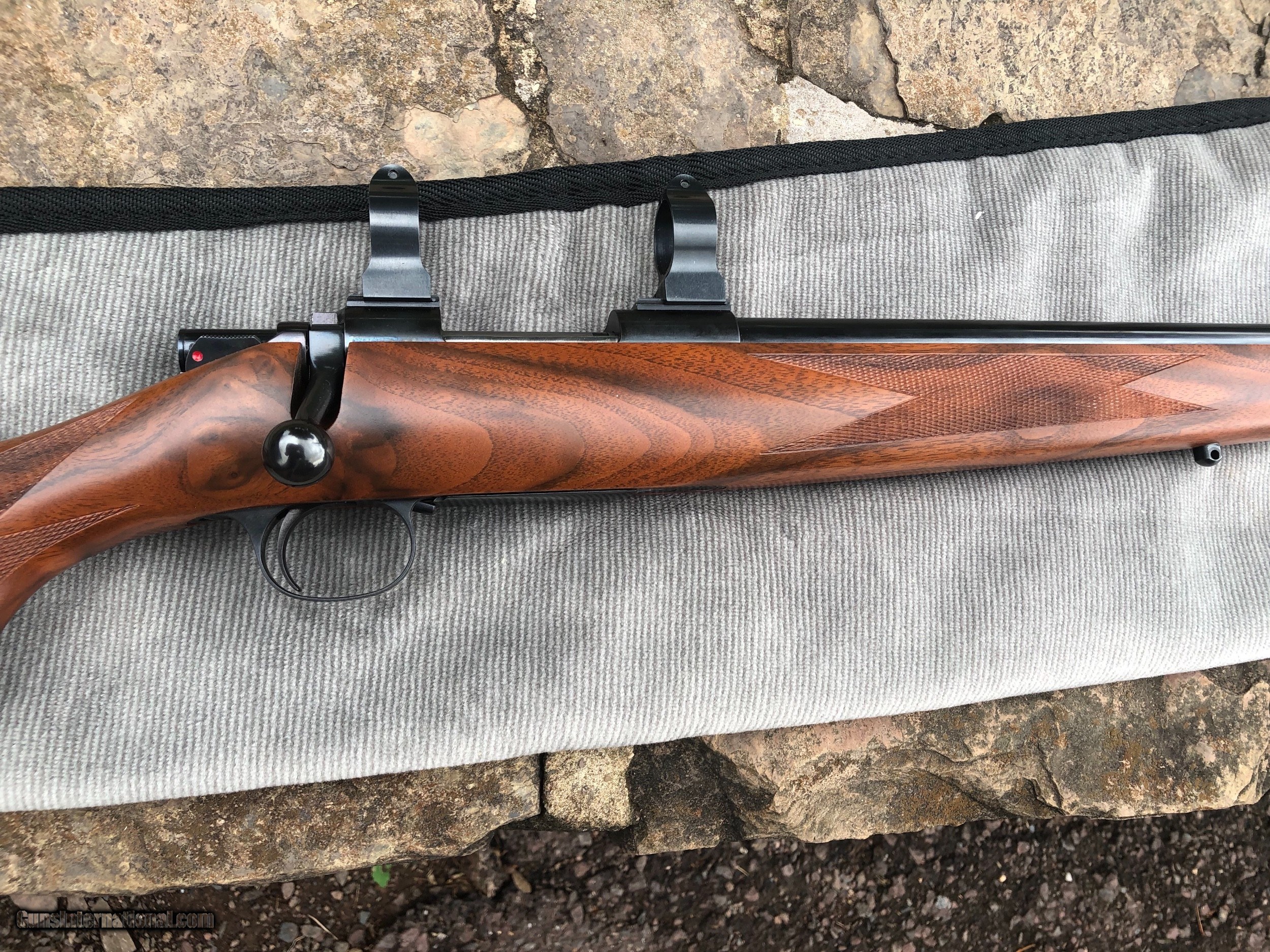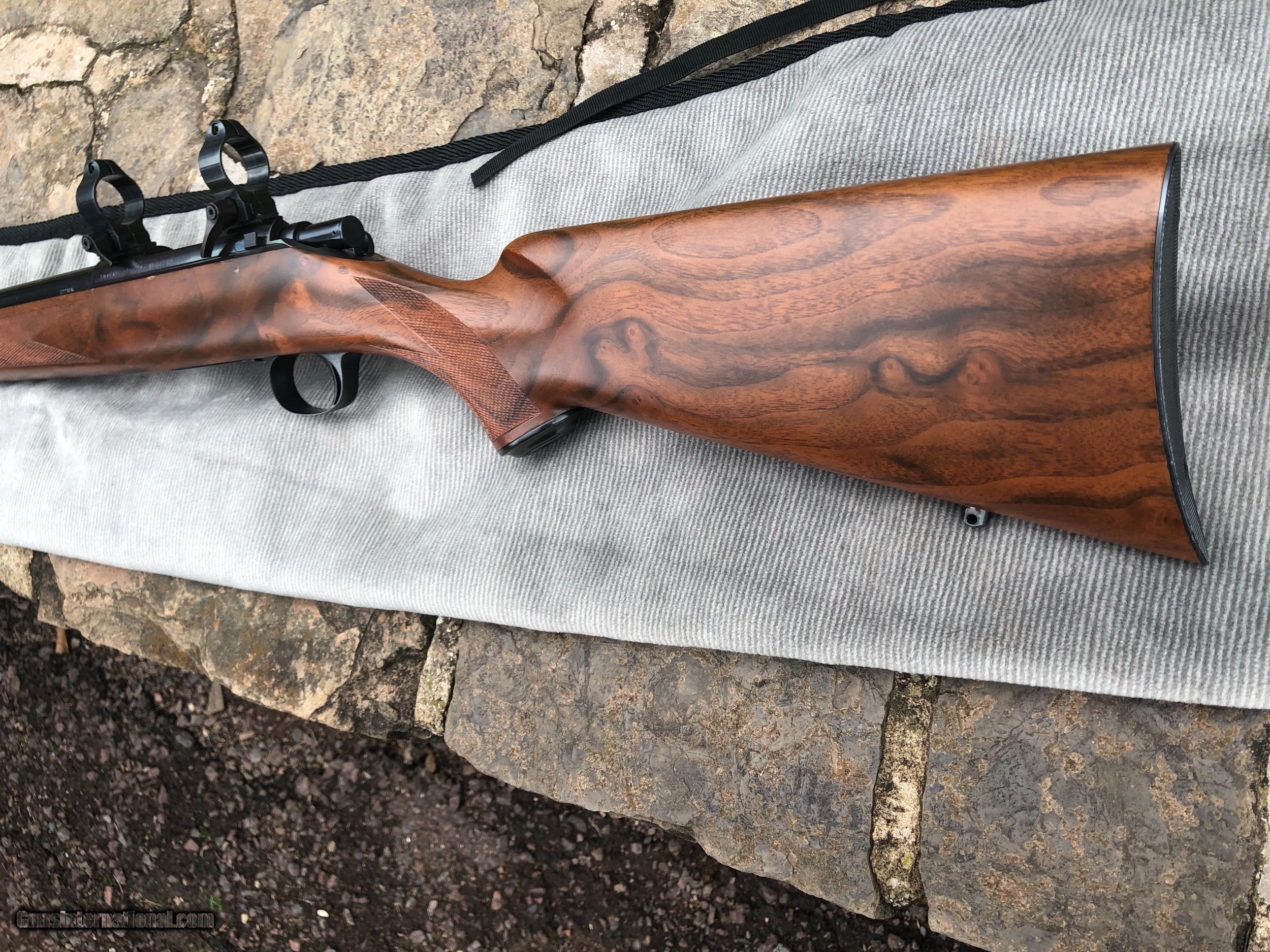 Description: Here's a very nice Oregon made Kimber M84 Classic in very accurate.222 Remington. It's got a 24 inch medium weight barrel with factory Warne QD rings. It's in excellent overall condition having been used sparingly over the years. It comes in the original box, has better then average wood and,if you use buy now, I'll pay shipping and insurance to the lower 48. Value priced! SOLD |
