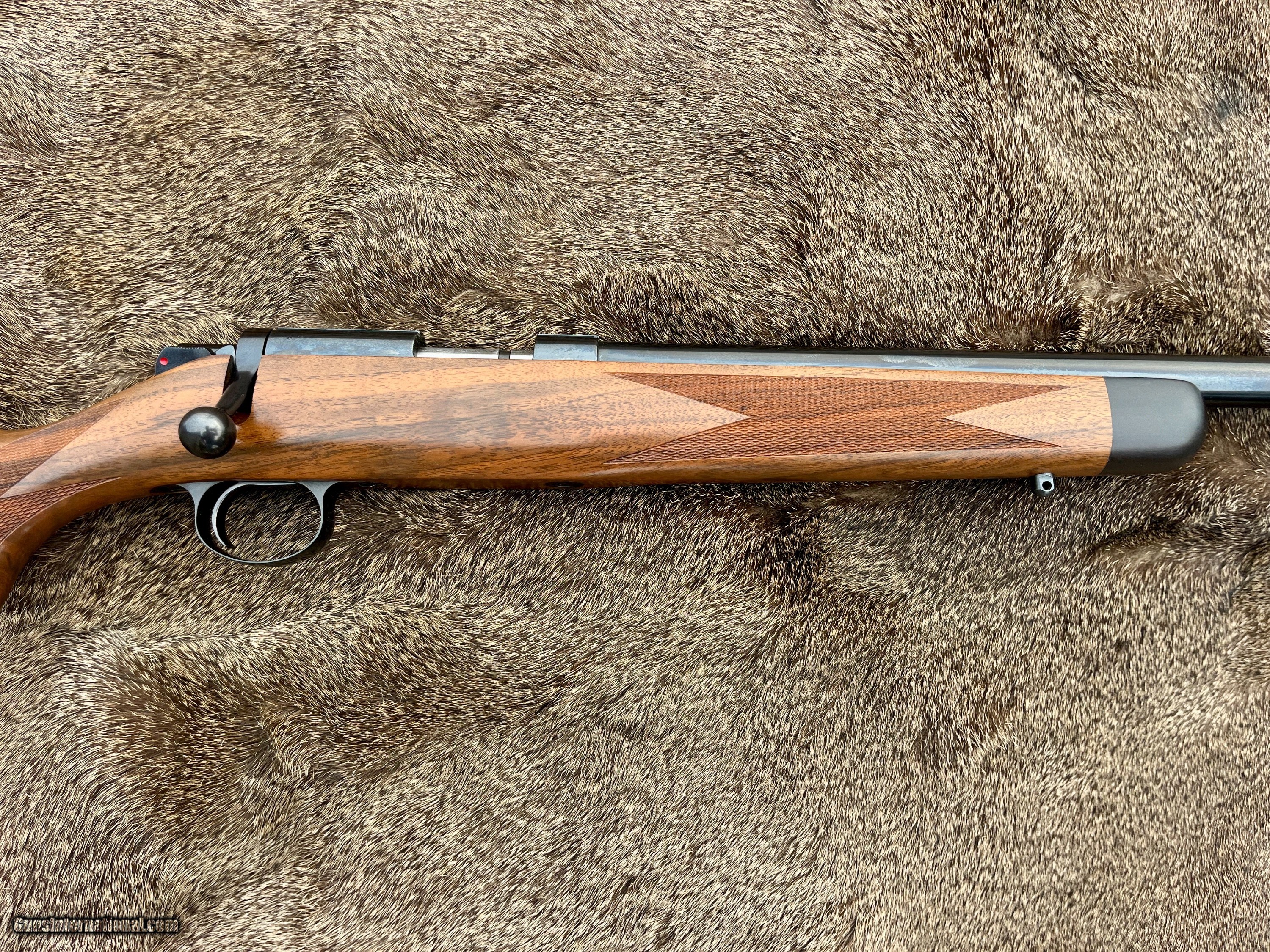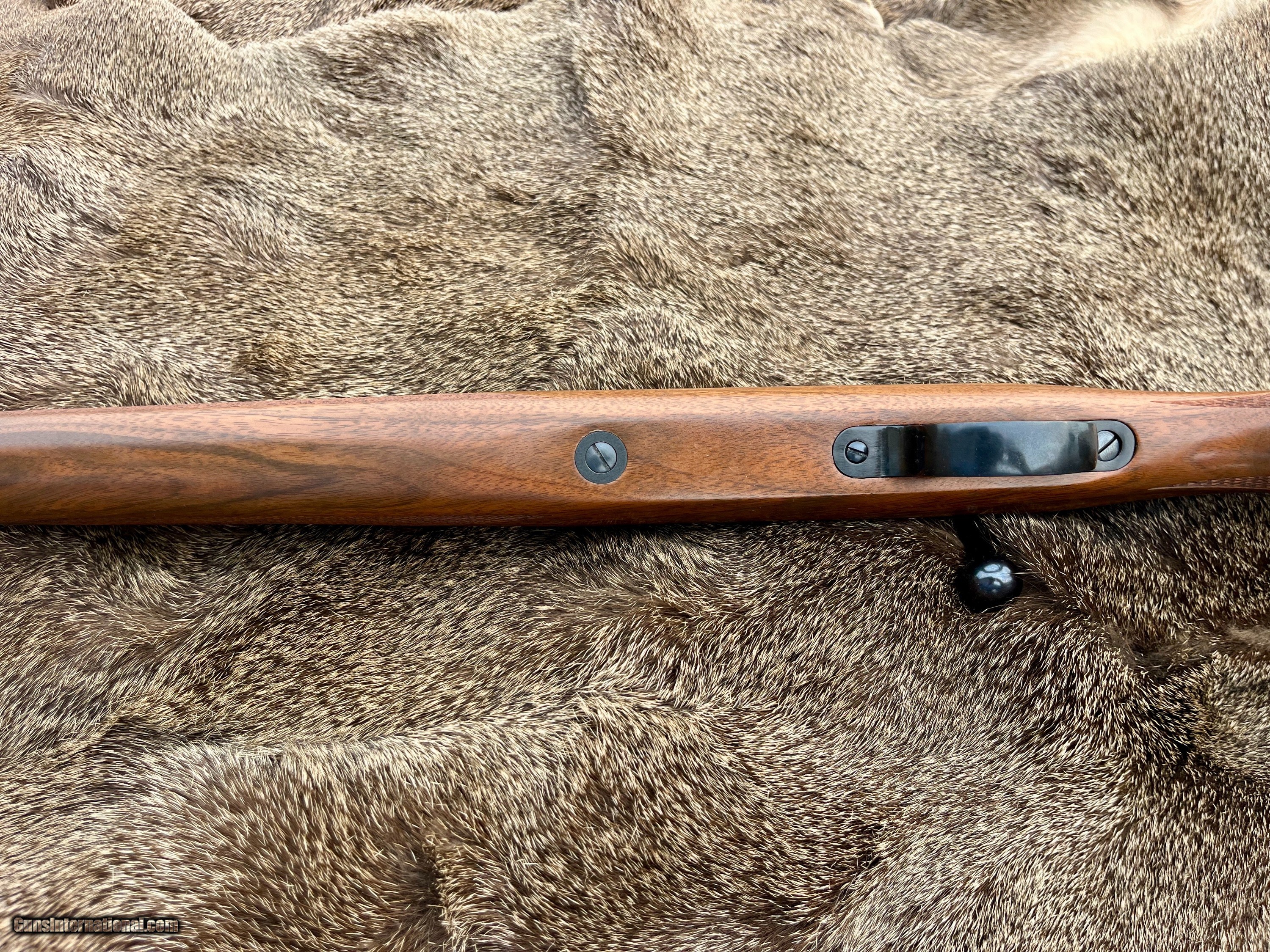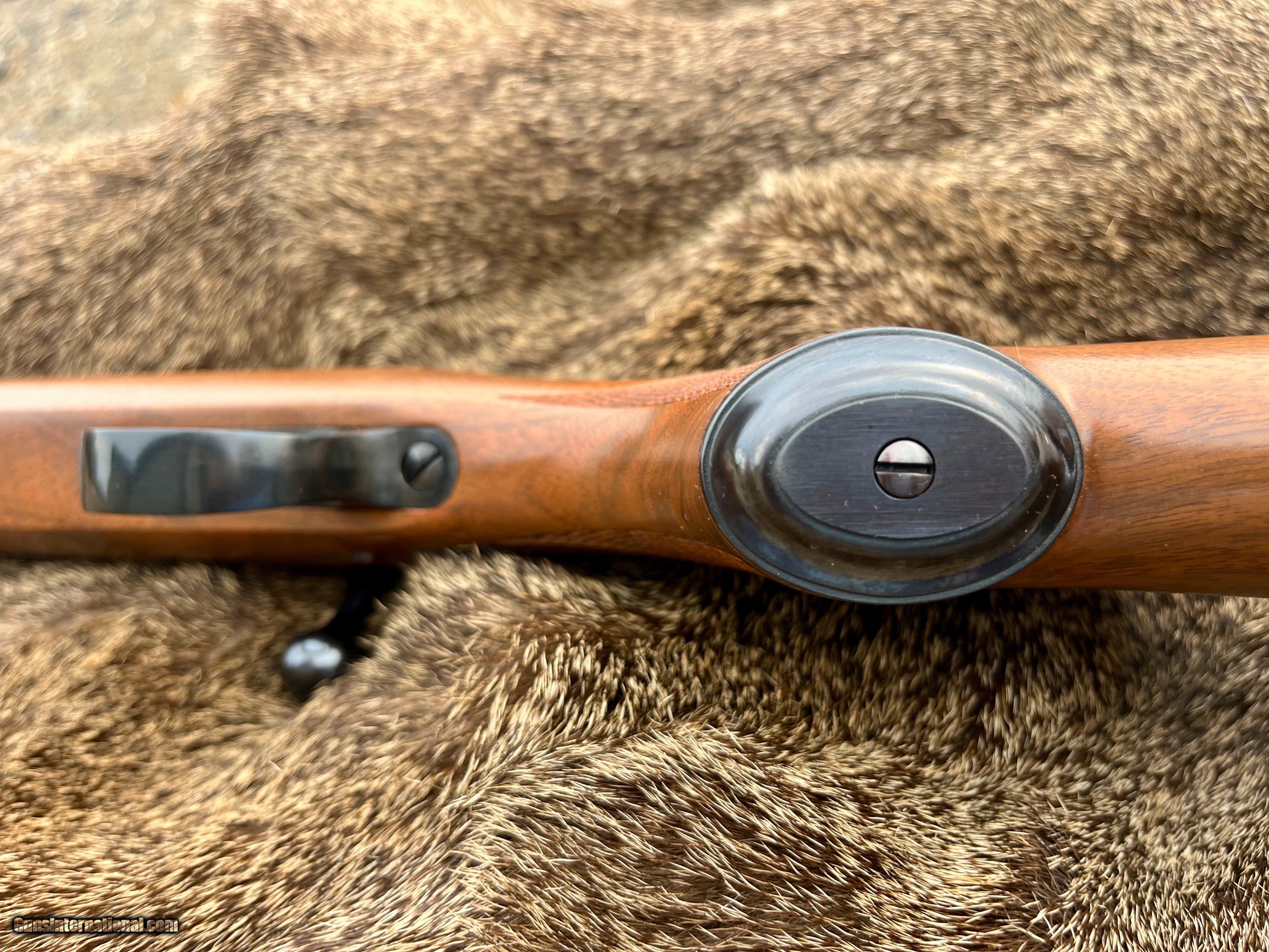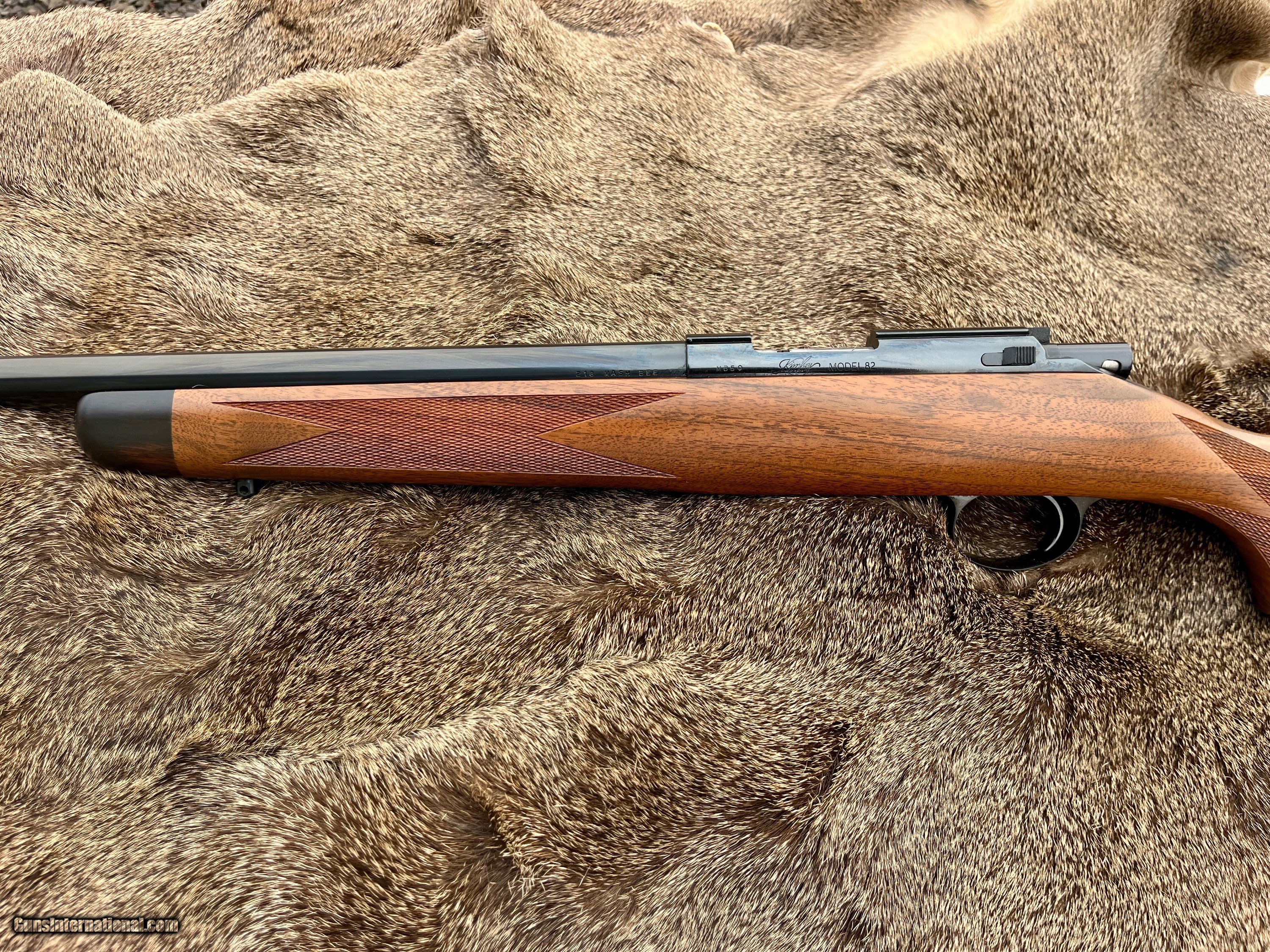 Description: Kimber model 82 Custom Classic single shot walnut stock with great figure,ebony tip forend,niedner checkered steel butt plate,steel grip cap. Gun is in excellent condtition. SOLD Rifle Caliber: .218 Bee Manufacturer: Kimber of Oregon Model: 82 Serial Number: MB50 Metal Condition: excellent Wood Condition: excellent |