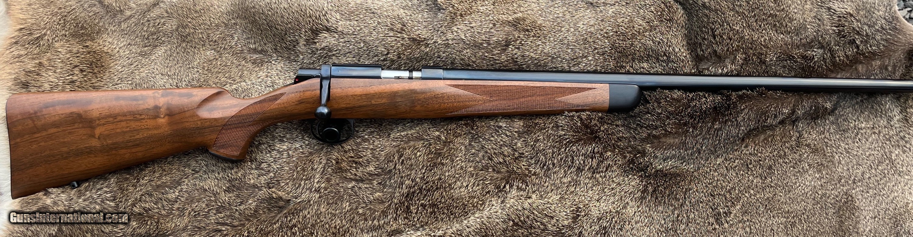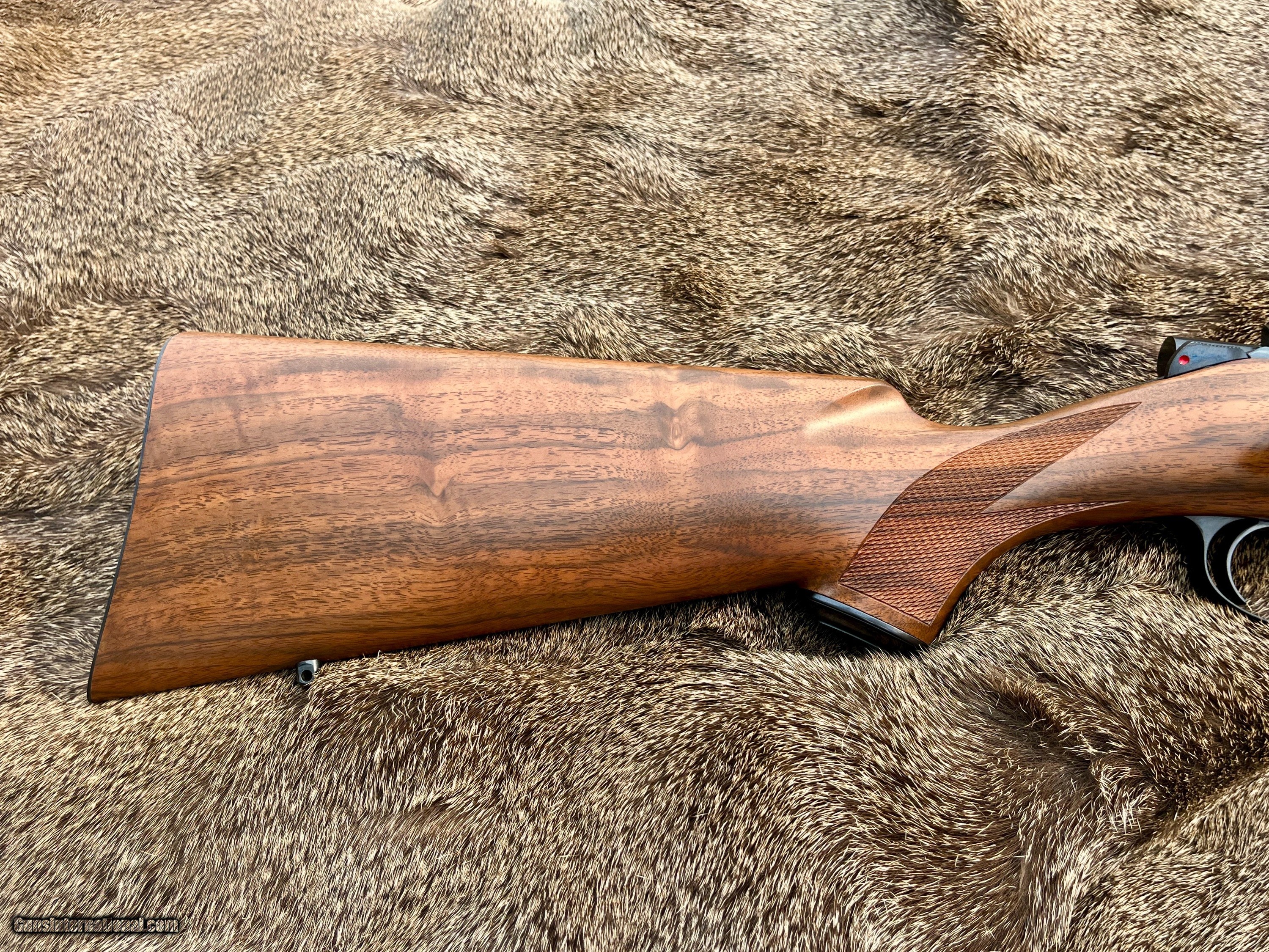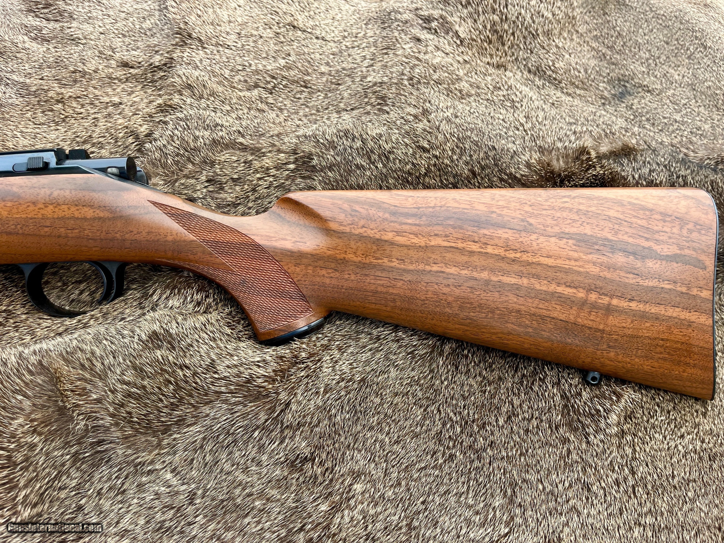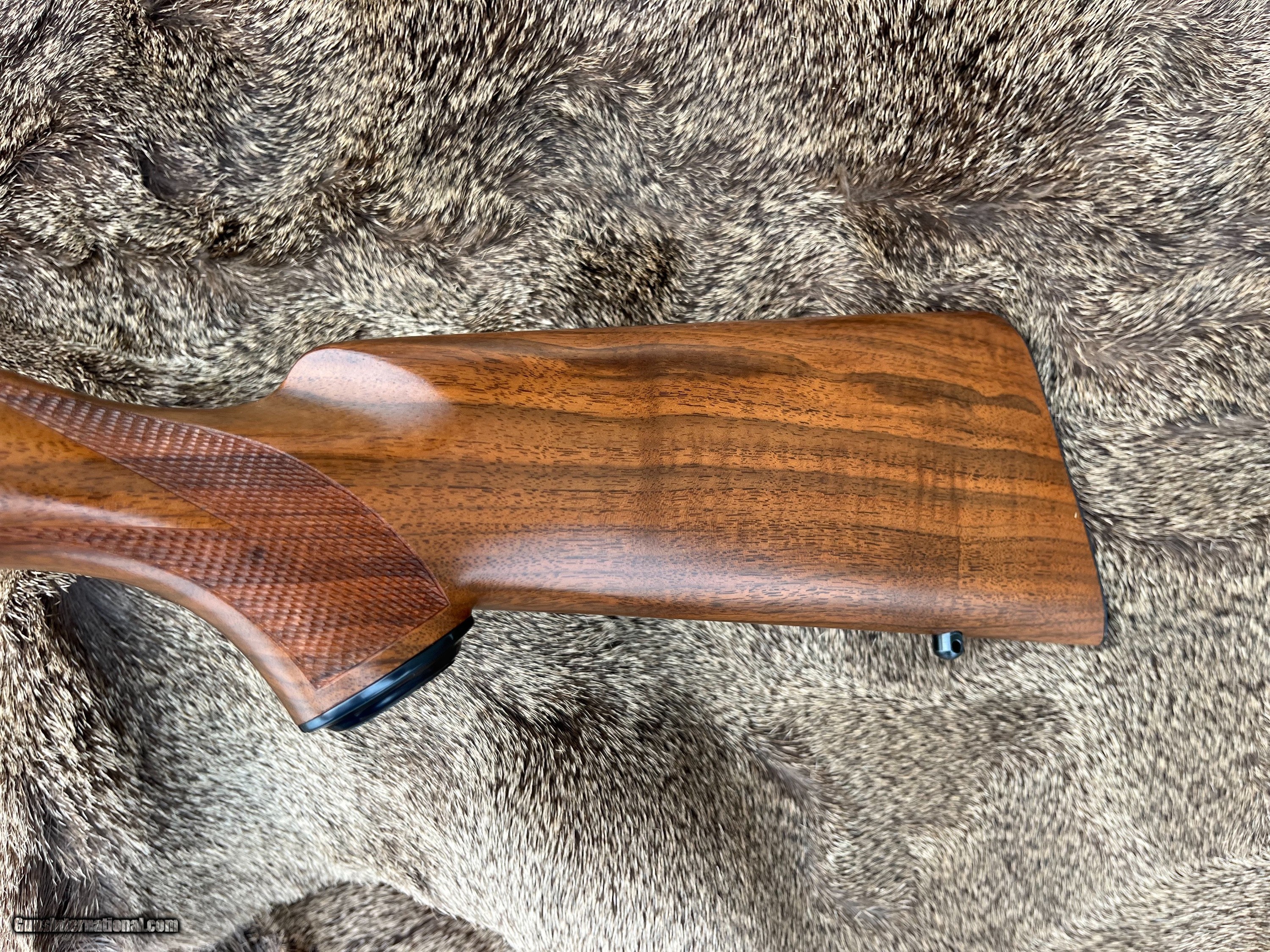 Description: Kimber model 82 Custom Classic single shot walnut stock with great figure,ebony tip forend,niedner checkered steel butt plate,steel grip cap. Gun is in excellent condtition. SOLD Rifle Caliber: .218 Bee Manufacturer: Kimber of Oregon Model: 82 Serial Number: MB50 Metal Condition: excellent Wood Condition: excellent |