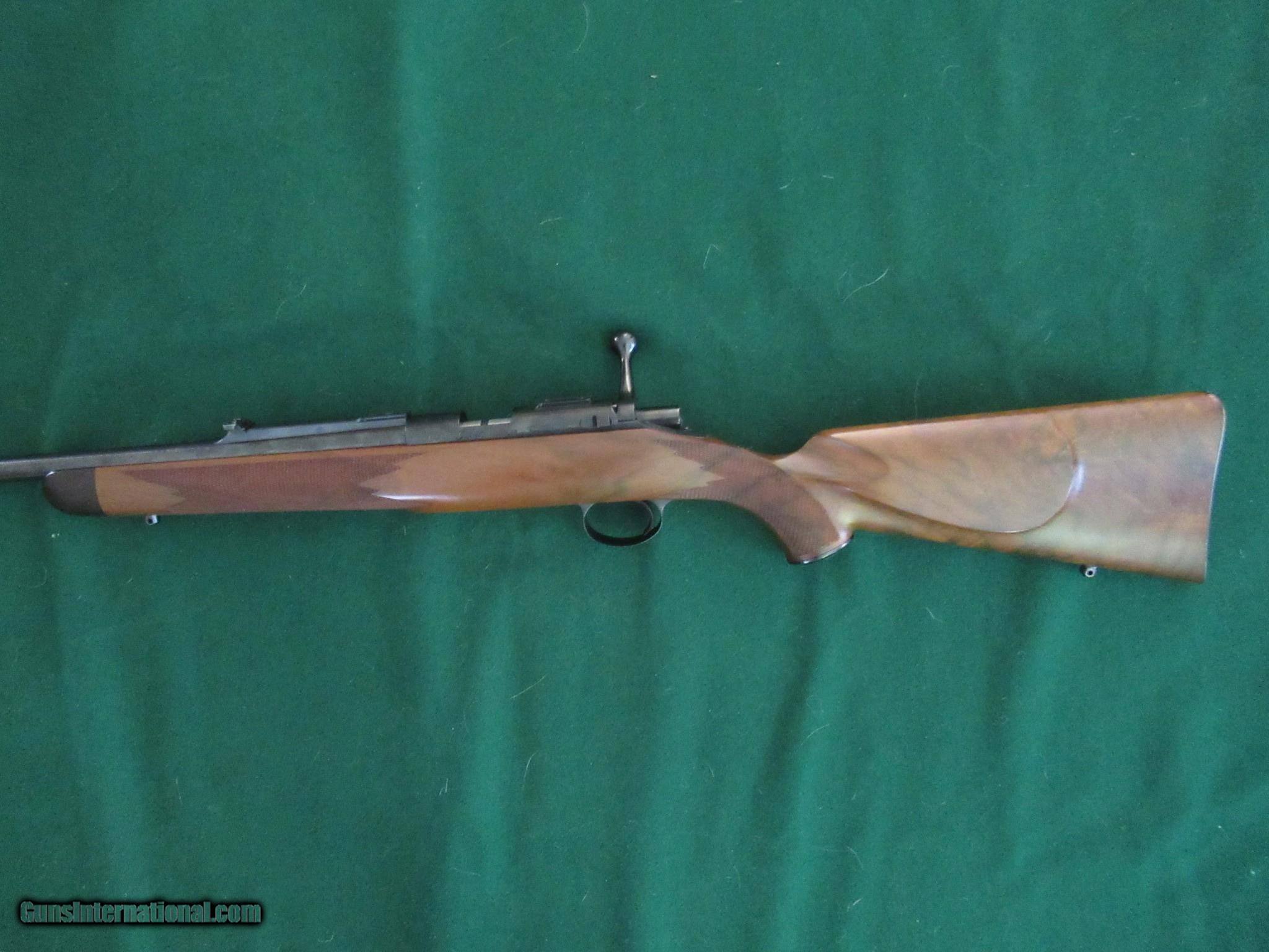 Description: A Kimber of Oregon Super America in .22 LR. New and unfired! This has been stored since it was purchased new and has never been to the range or hunting. 22" barrel with a quarter rib rear sight and scope base. Folding rear open sight with a blade front mounted on a medium length rib. It comes with ther original Kimber magazine. Steel grip cap along with a checkered steel butt plate. Every wood screw is perfertly lined up fore and aft. The stock is a beautiful piece of English Walnut with point pattern grip checkering, full wrap around forend cherckering and a cheekpiece. The wood has an oil finish, excellent fit to the metal and great figure and color. If you are looking for a top of the line .22, this is it. This rifle will make a great addition to your collection as well as a good investment. Please call Raff at 760 497 7836 and thanks for looking! SOLD Rifle Caliber: .22 Long Rifle Manufacturer: KIMBER Model: Model 82 Serial Number: SA682 Barrel Length: 22 Condition: new Metal Condition: new Wood Condition: new Bore Condition: Perfect LOP: 13 3/4 |