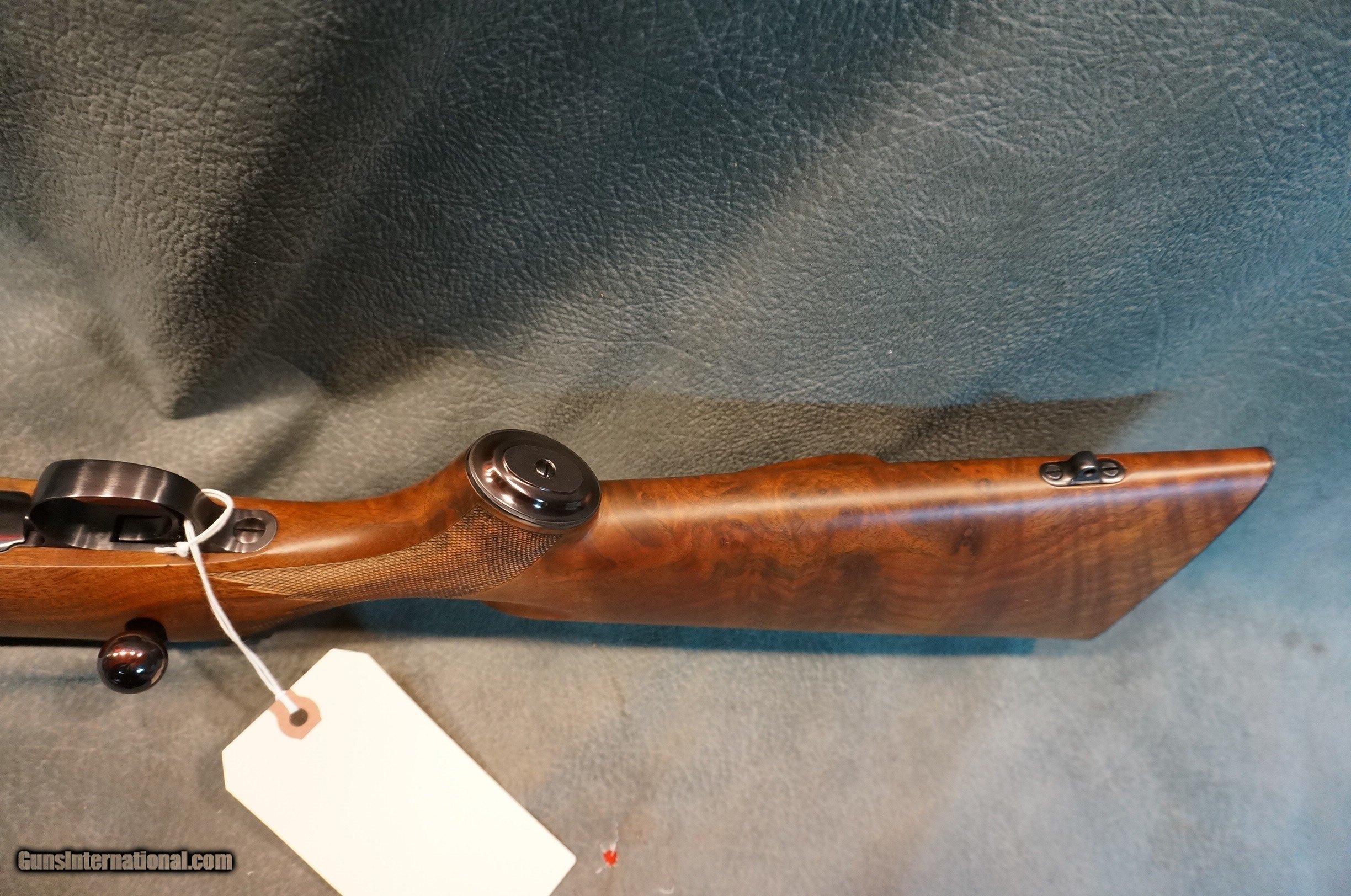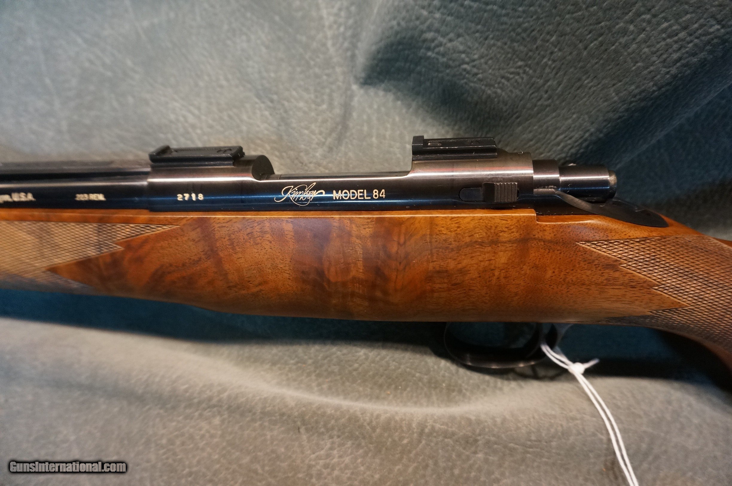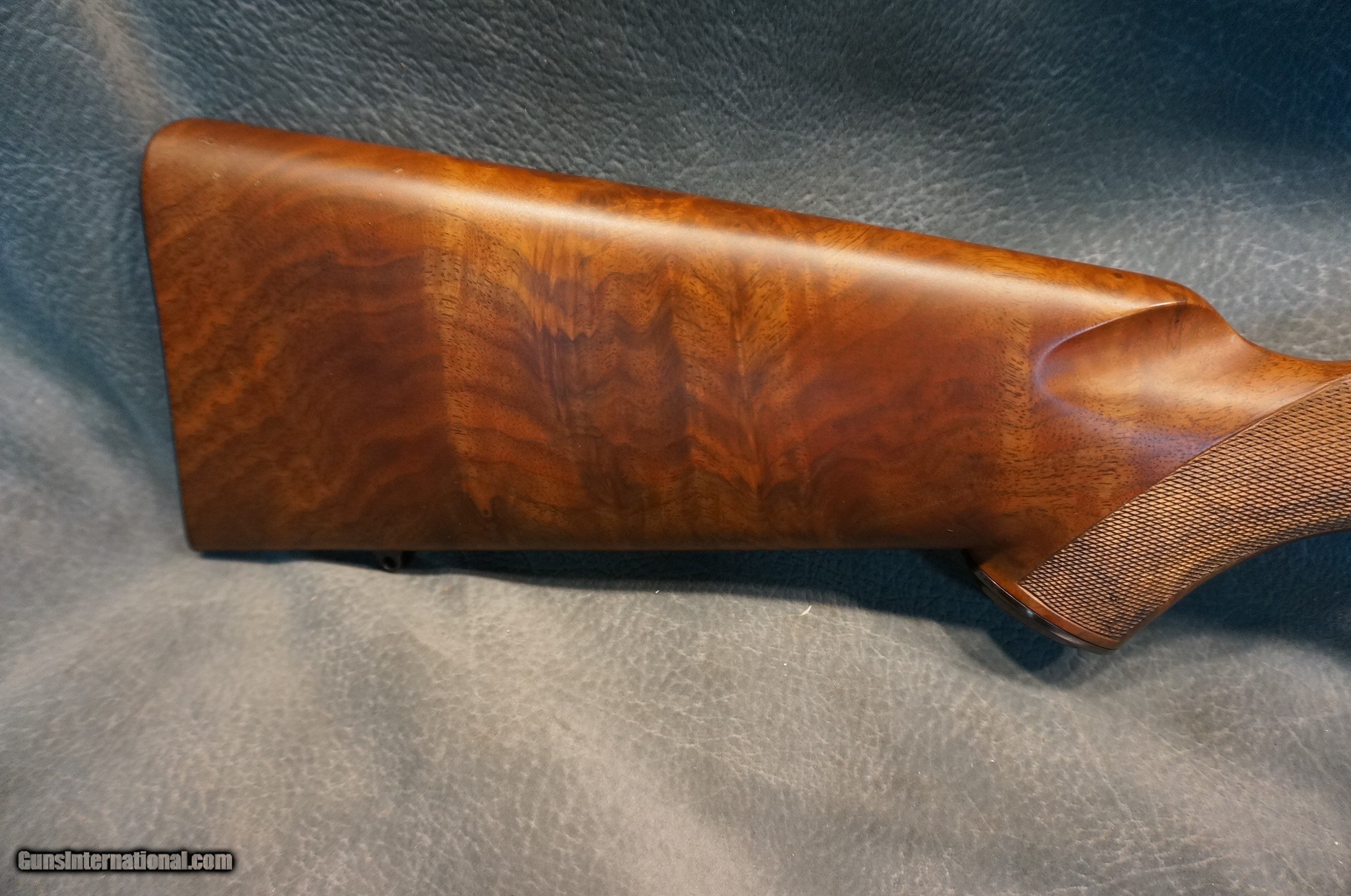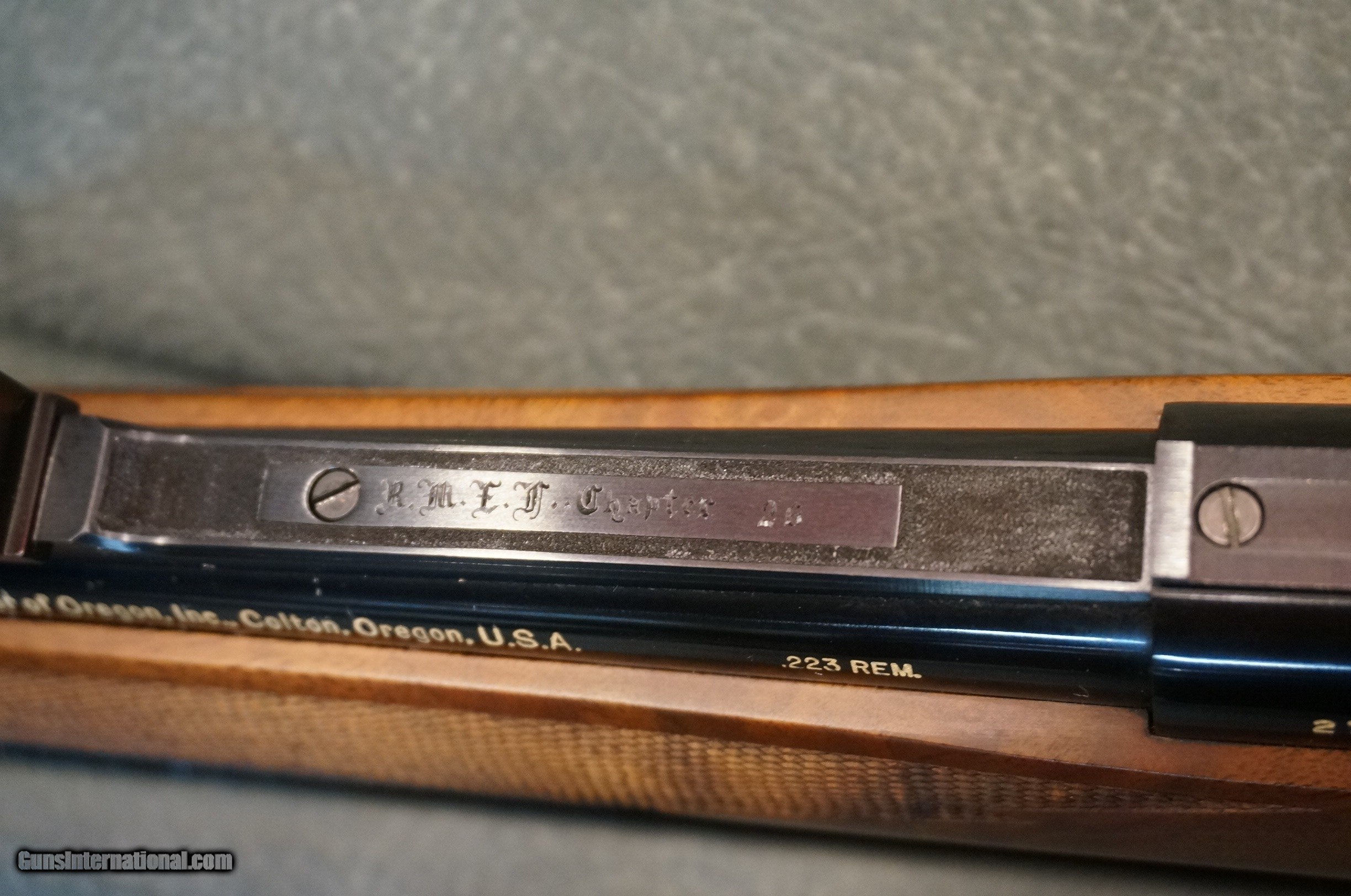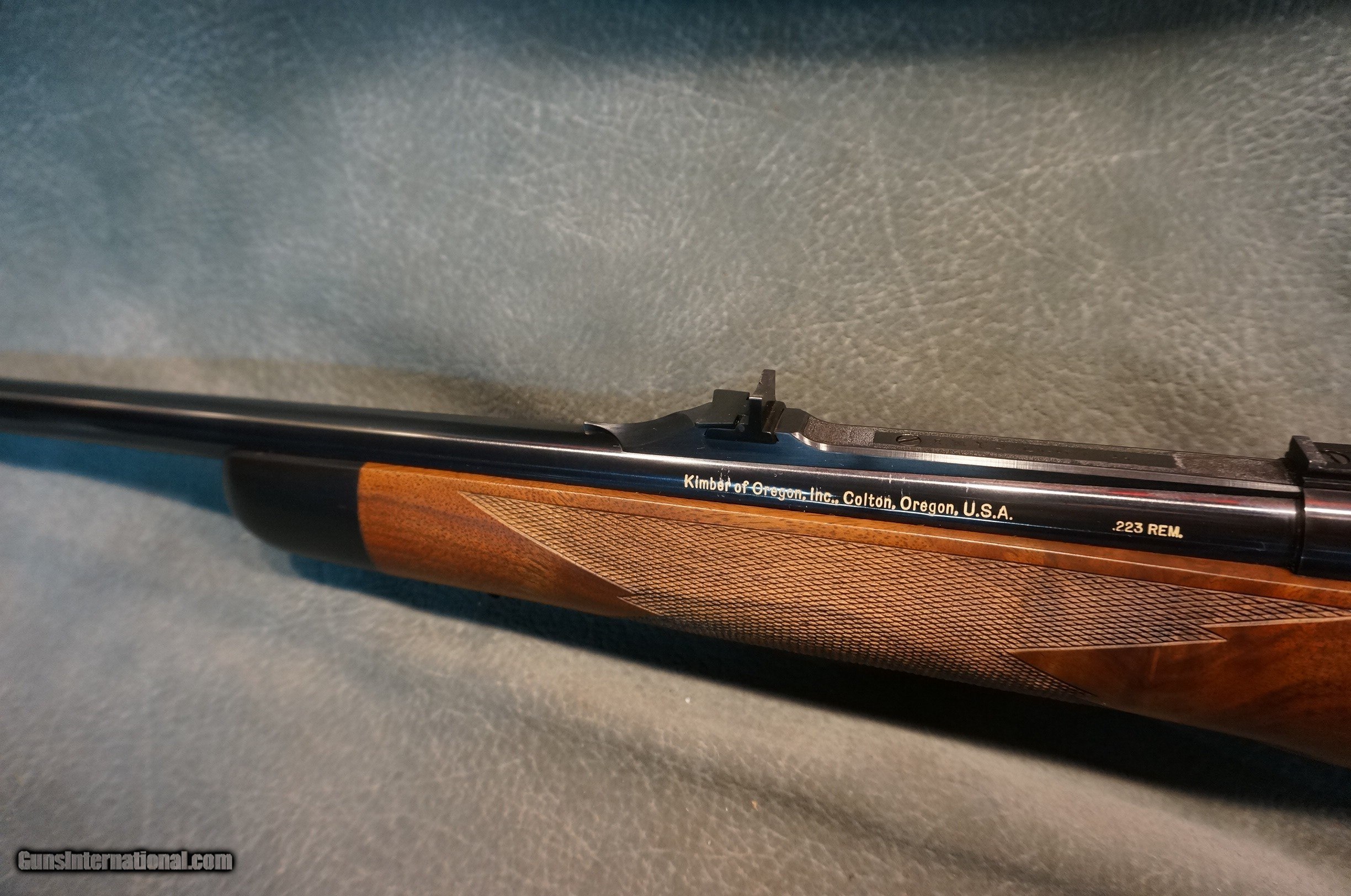 Description: Kimber of Oregon Model 84 223 Custom Super America,22" barrel with quarter rib with one standing rear sight and one folding blade,hooded front sight,stipled and engraved R.M.E.F. Chapter 26 on the rib,serial #2718,made in Colton,Oregon,highly figured walnut with lots of burl,cheekpiece,wrap checkering,Neidner checkered buttplate,inletted swivels,as new condition,very rare rifle. GUN COLLECTIONS WANTED FOR CASH! We buy, sell, consign and trade new and used firearms.We will pay finders fees and travel for large collections. This is our 46th year in business. We offer 90 day layaways with 20% down. No return on layaways. Firearms will need to be transferred through a FFL dealer. Prices reflect a cash discount. There will be 3% added to credit card sales. We trade for gold and silver. THANK YOU! SOLD |