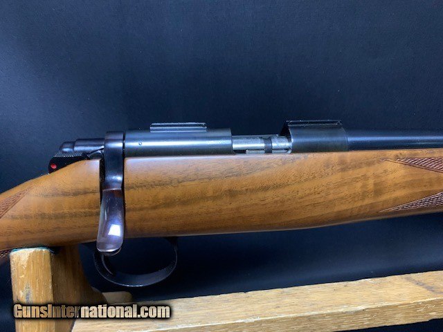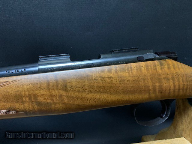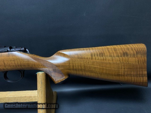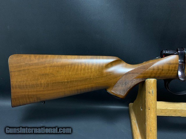 Description: Weighs 6lbs 14oz with 13 1/2" LOP features checkered & steel buttplate inletted swivels, island style rear sight with 1 standing & 1 folding sight with gold bead ramp front sight. It also has a "butterknife" bolt handle. It has Warne mounts and appear unfired. Serial number LB67-500. 22LR cal. 20" bbl. Bolt action. SOLD Manufacturer: Kimber of Oregon Model: 82 Brownell Serial Number: LB67-500 Caliber Info: 22 Condition: Great |