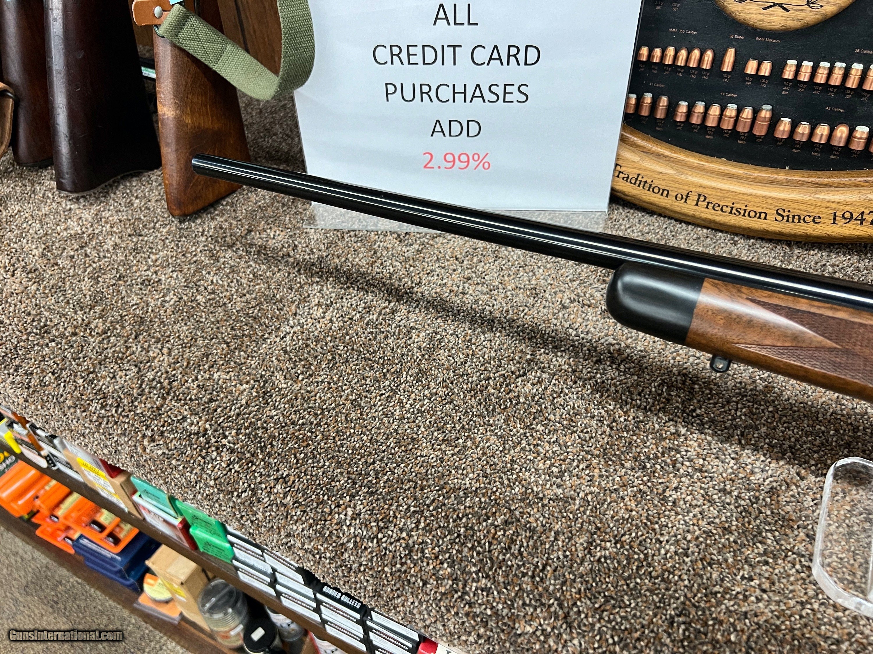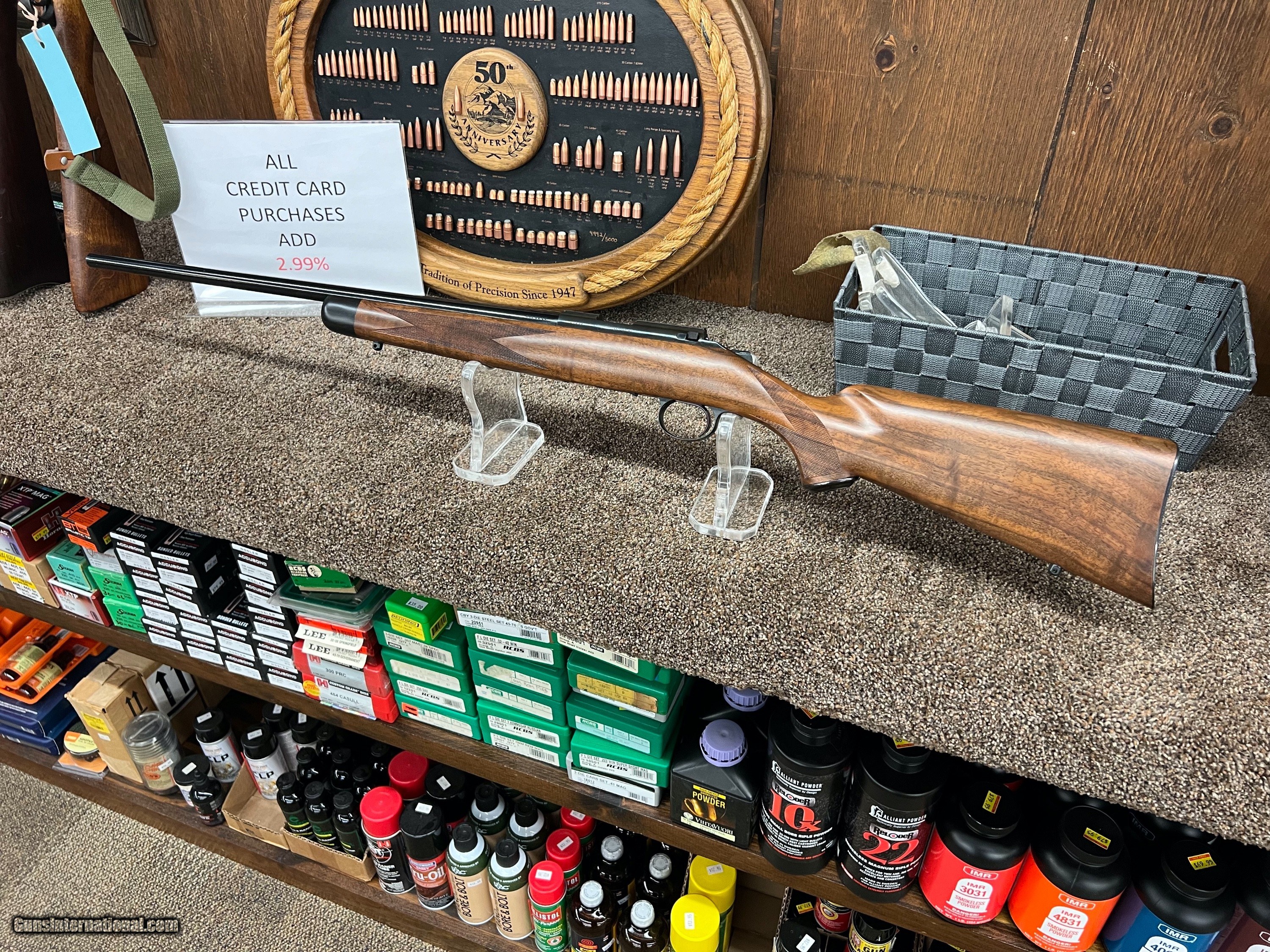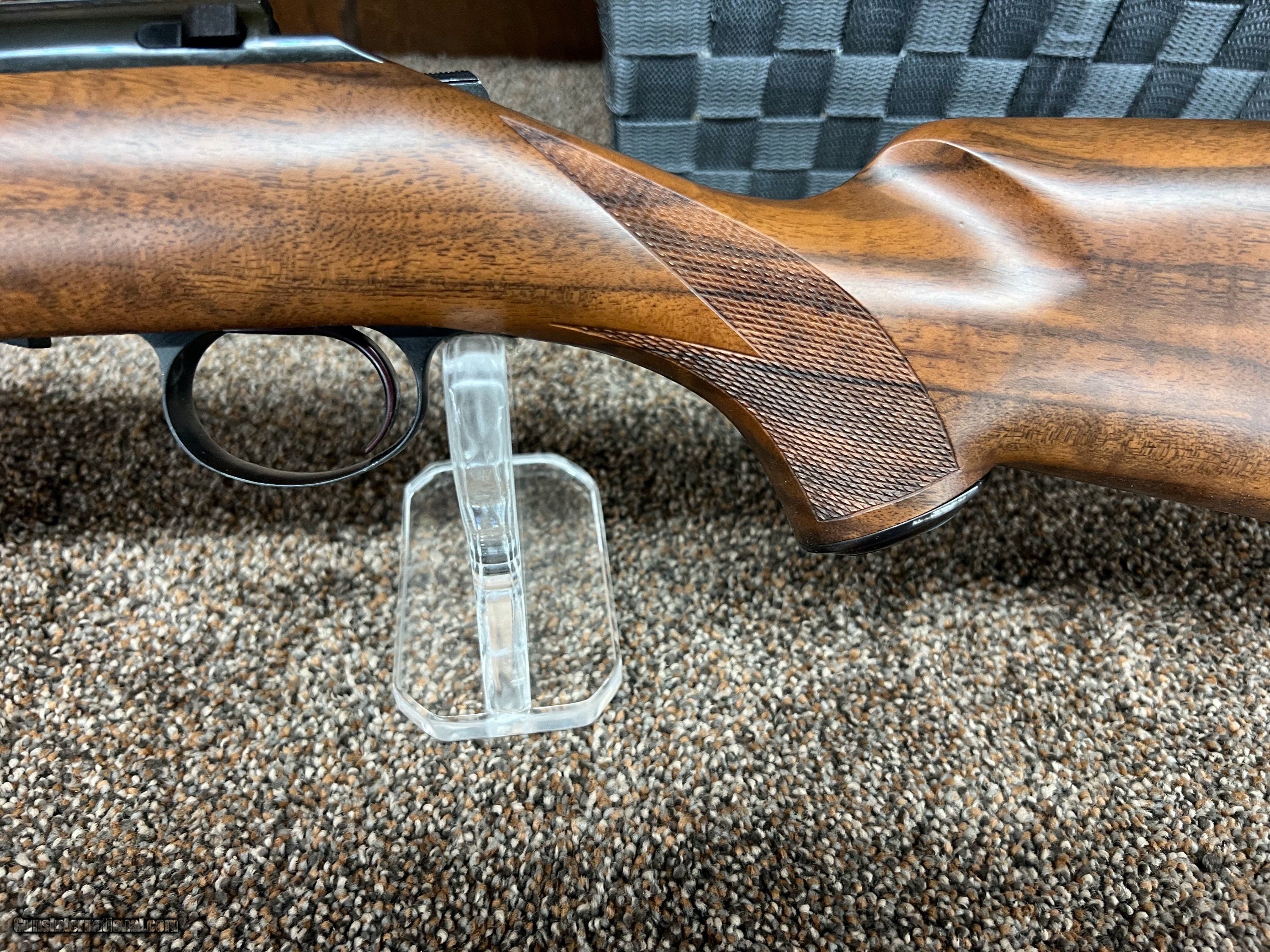 Description: REDUCED TO $2695.00 Here's a Kimber of Oregon 82 Custom Classic 22 lr, 22" barrel, no sights, grooved receiver, rocker safety, Neidner steel butt, ebony forend tip, pistol grip cap, standard swivel studs, beautiful figured wood, appears to be new & unfired in it's orig box. 2.99% credit card fee, 50.00 shipping, PA residents add 6% sales tax. SOLD Rifle Caliber: .22 Long Rifle |