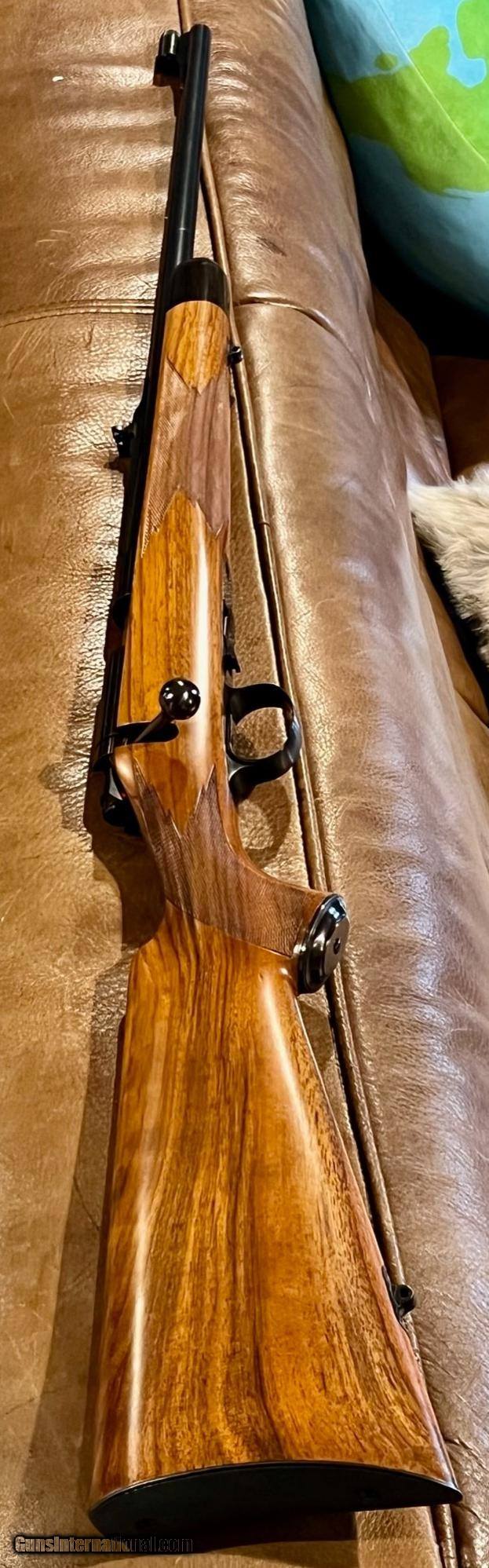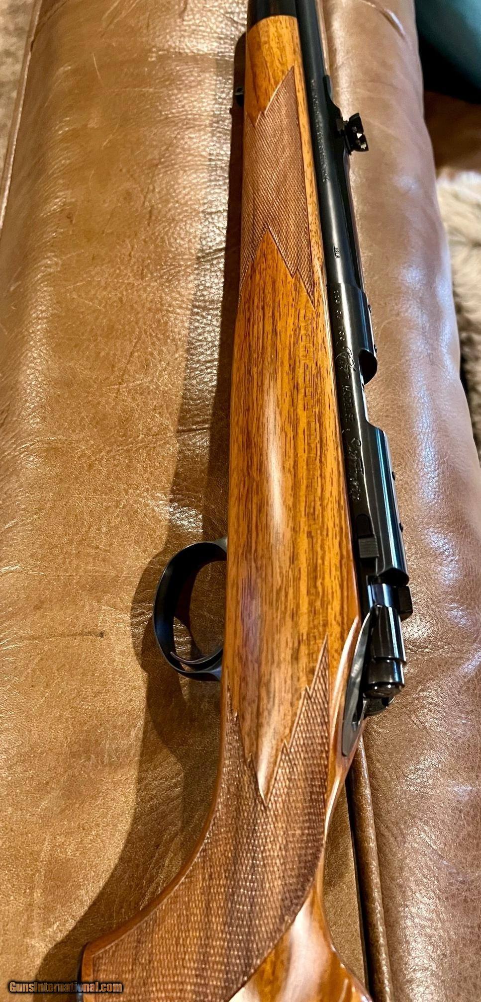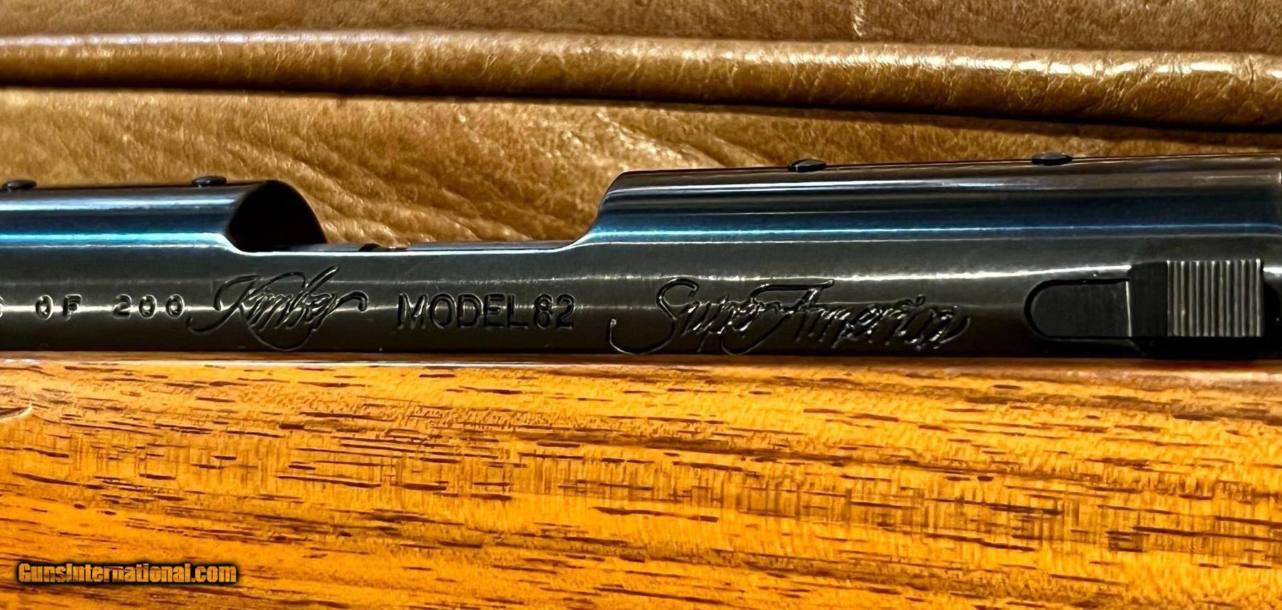 Description: SOLD PENDING FUNDS Kimber of Oregon 82B 10TH Anniversary Super America 1 of 200 made!!!!! This special run of Super Americas was made to celebrate the 10th Anniversary of Kimber of Oregon. The rifles are special they were had selected for their accuracy as barreled actions, then thy fit them with a recessed special rear sight rib with a matching front hooded sight that is specific to this model only. To announce to the owner and the world that this was a special rifle the put a gold star behind the rear sight and a 10 in front for the anniversary commemoration. They decided to do a moderate redesign on the stocks, notice the rounded forend and the squatter slimer profile, and topped this new redesign off by using English Walnut also to commemorate their 10th anniversary. Total production of this rifles was limited 200 rifles in .22 LR and 100 in .223 remington. Sight hood is on the rifle, rare, most disappear. This is a rare rifle at a great price. Feel free to call or text SOLD Rifle Caliber: .22 Long Rifle Manufacturer: Kimber of Oregon Model: 82B 10th Anniversary Super America |