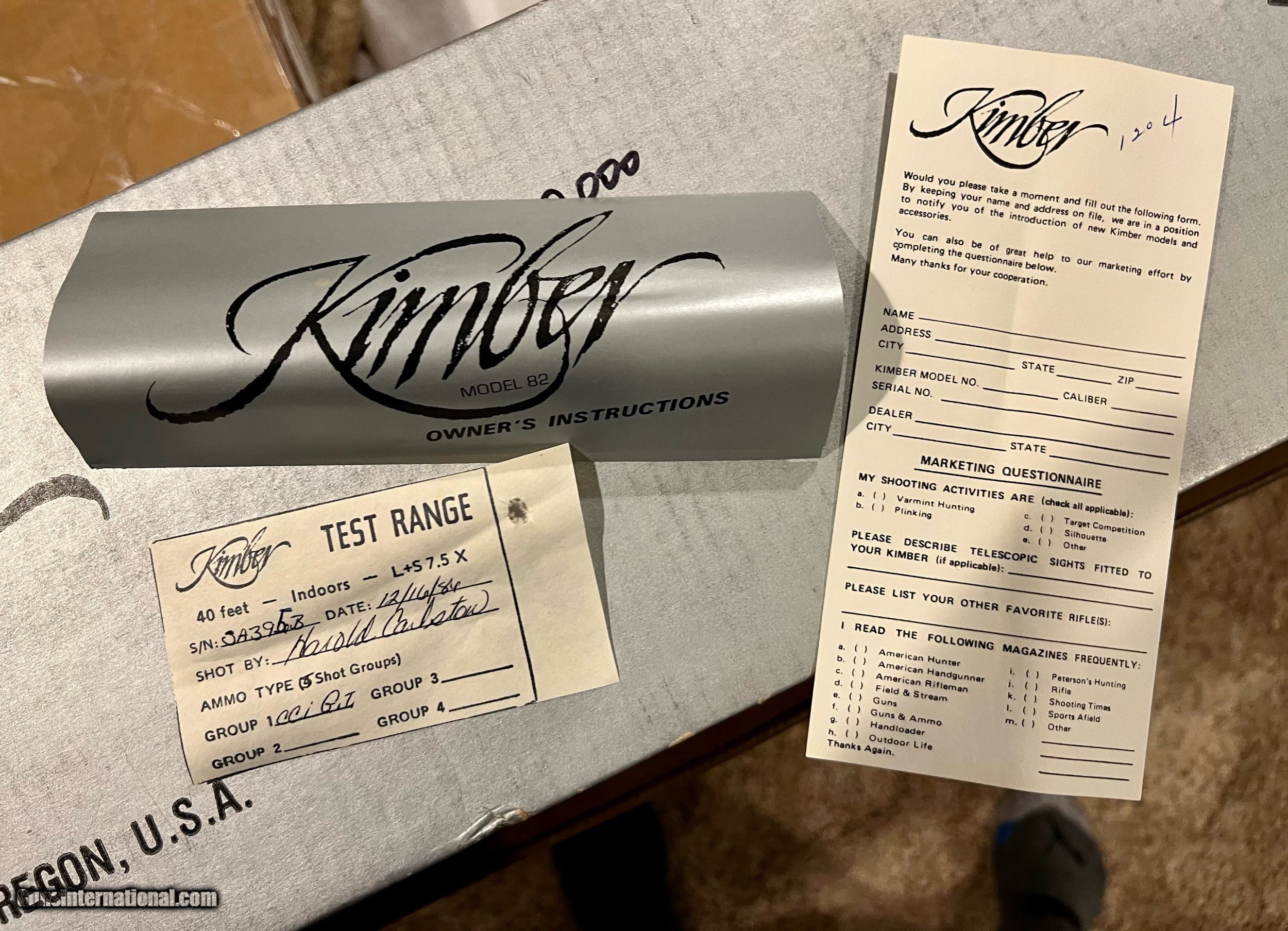 Description: Kimber of Oregon 82B Super america with A and D options. Most Kimber of Oregon collectors feel the 82B models were the best rifles they ever produced. This rifle is in its factory box with all papers and test target. As you can see the wood is exceptional. It would make a fine edition to any collection. Factory Kimber Rings available for an additional charge. Feel free to call of text SOLD Rifle Caliber: .22 Long Rifle Manufacturer: Kimber of Oregon Model: 82 B Super America Metal Condition: 95 percent Wood Condition: 99 percent |