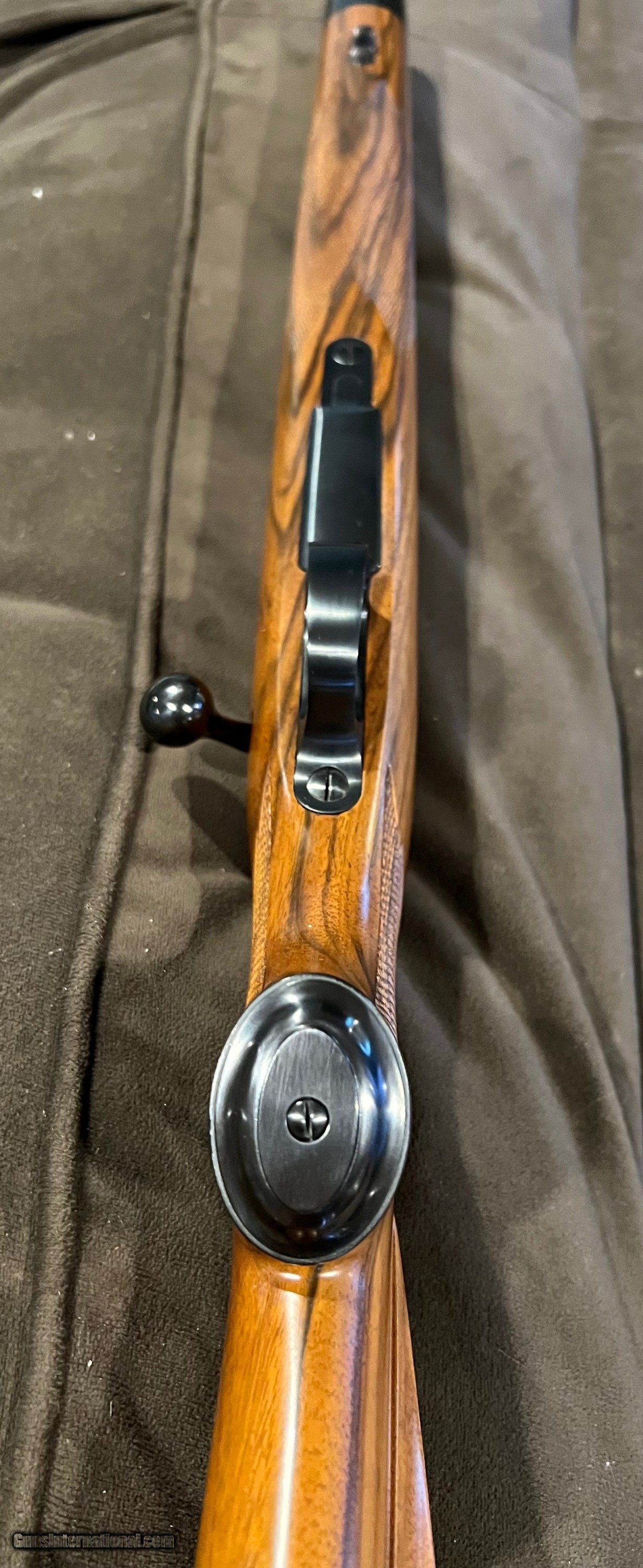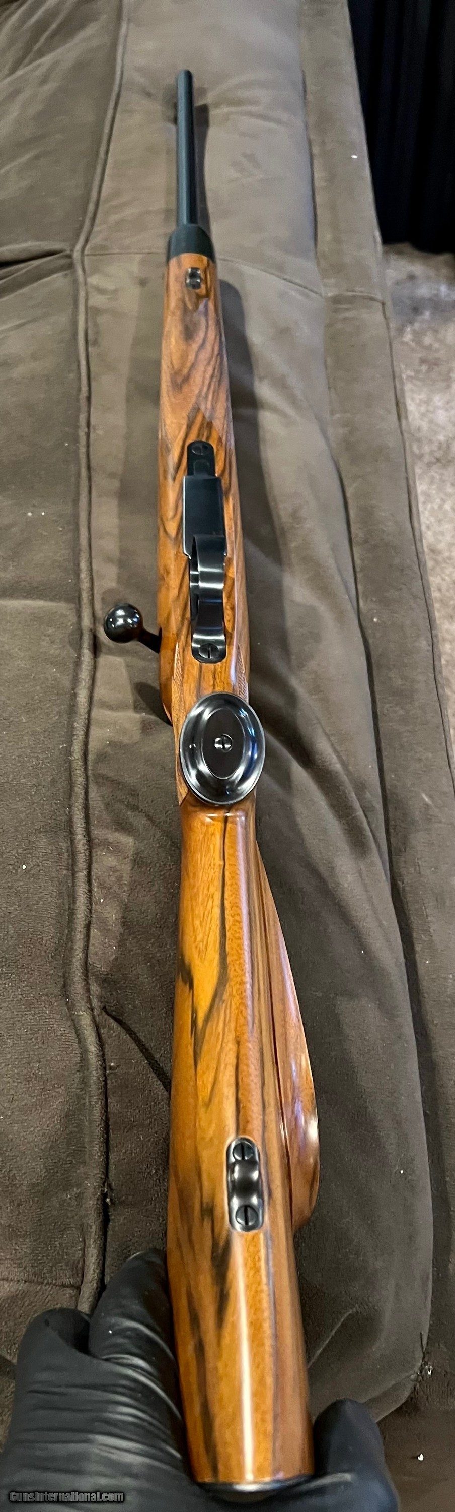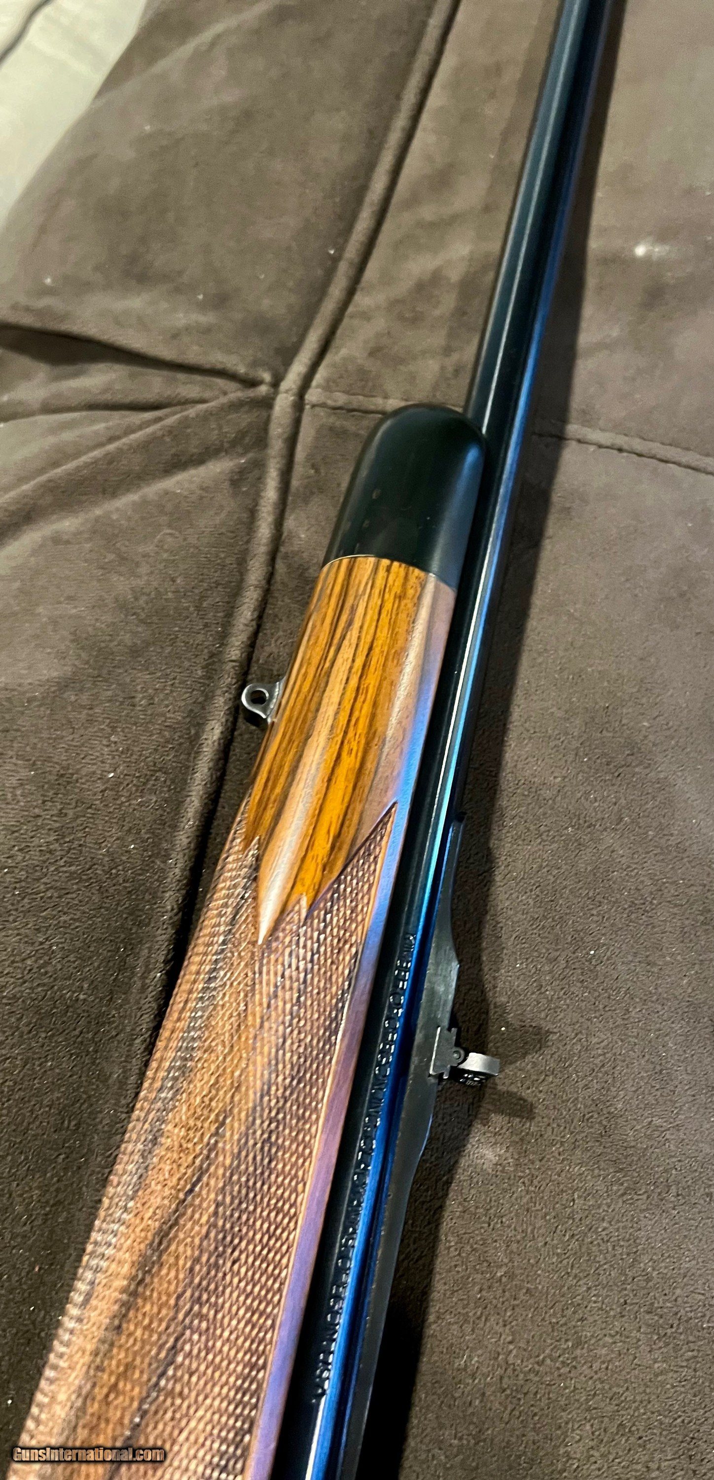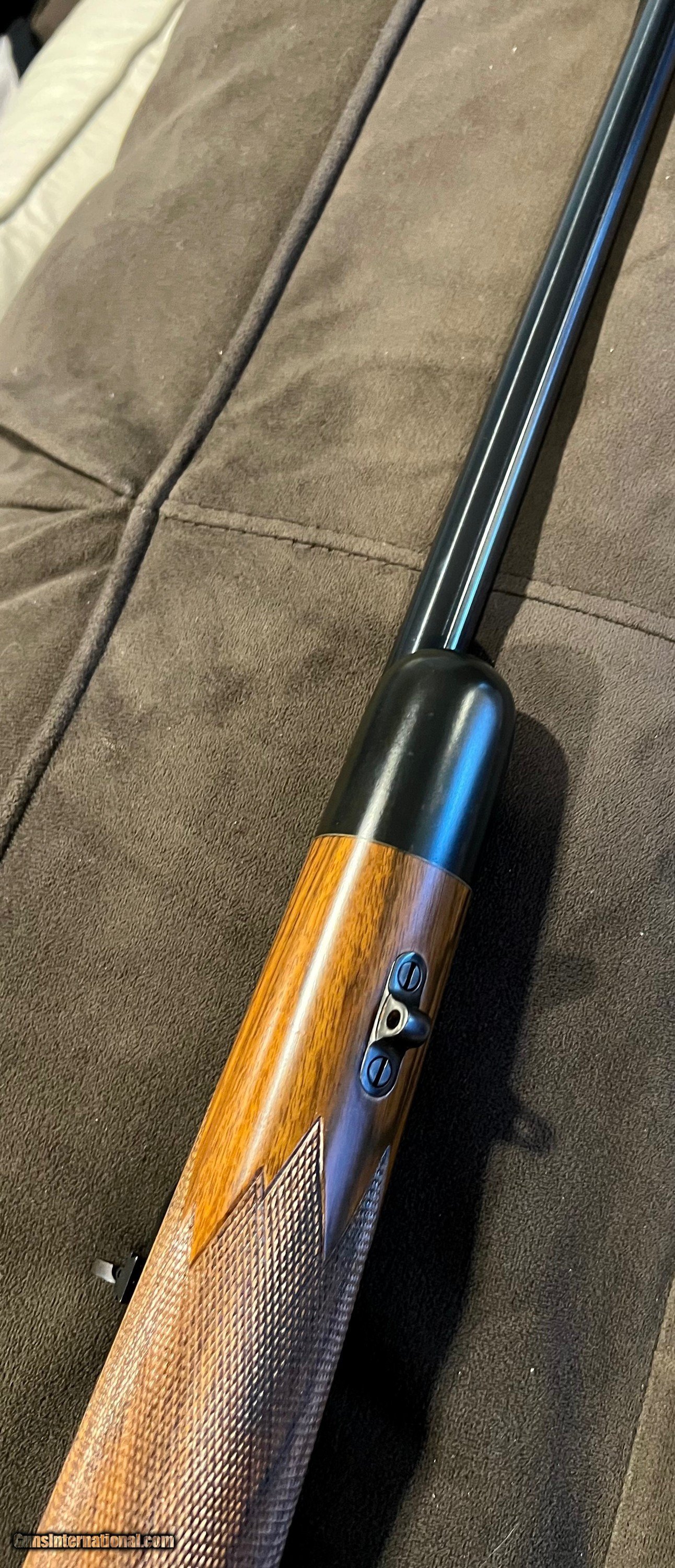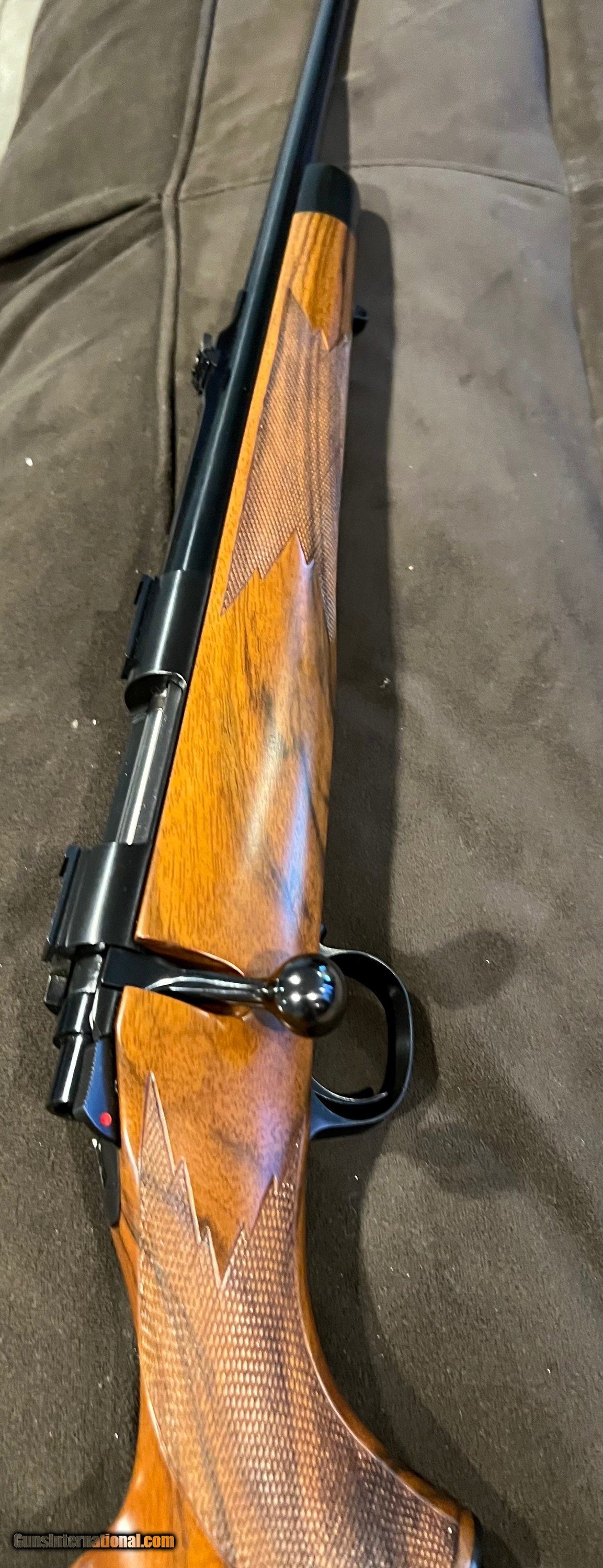 Description: Kimber of Oregon 84B 10th Anniversary Super America, NIB, less than 100 made, awesome wood, with box and papers!!! This is a Kimber Collectors holy grail rifle, made only one year 89-90 only 100 or less made. Kimber decided to make a limited edition rifle to celebrate their 10th year in business. The Warne's decided these rifles needed to be special, they shot all thier Super America rifles and only kept the best barreled actions for this edition. They next added special (on the 10th anniv only) hooded front and rib rear sights machined into the barrel, not just bolted on top. Now that they had their special barreled actions they added a gold ten and star on either side of the rear folding sight. Finally they decided these special rifles needed to be stocked in French walnut with a redesigned pattern, they are slim, trim, handy, and sleek. Most Kimber of Oregon collectors feel the Late 84B models were the best rifles they ever produced. This rifle is an 84B is in its factory box with papers. This is becoming a rare hard to find Rifle nowadays. DO NOT CONFUSE THIS WITH ALL THE INFERIOR RUSTED UP KIMBERS AVAILABLE ON THE WEB!!!! As you can see the wood is exceptional. It would make a fine edition to any collection. Factory Kimber Rings available for an additional charge. Feel free to call or text SOLD Rifle Caliber: .223 Remington Manufacturer: Kimber of Oregon Model: 84B 10th Anniversary Super America |