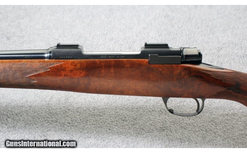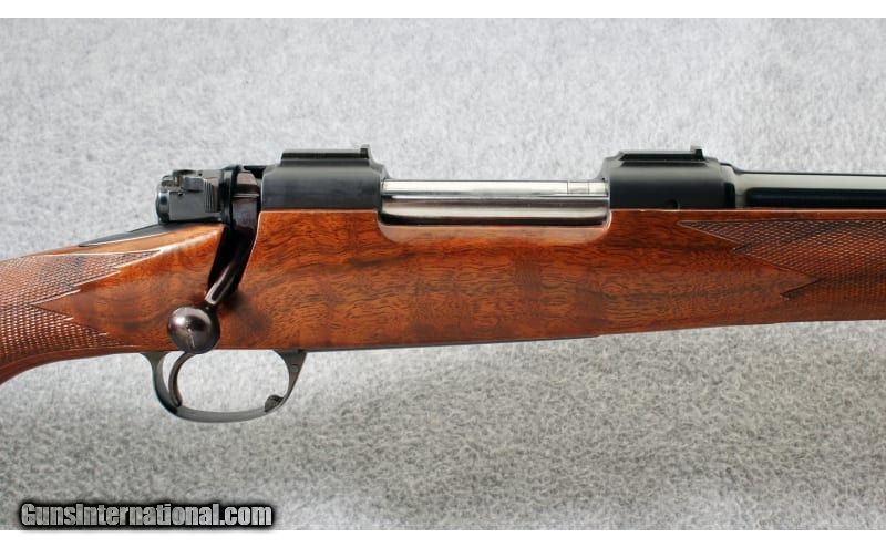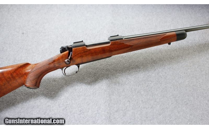 Description: This Kimber of Oregon 89 BGR Super Grade .30-06 features: AAA walnut stock with beaded cheek piece, wrap around checkering, ebony fore end cap, steel pistol grip cap, control round feed double square bridge action dovetailed for scope mounting, Mauser style large claw extractor, hinged floor plate and Winchester Model 70 style three position safety. This rifle is beautiful and collectable. .30-06 Springfield SOLD Metal Condition: Excellent Wood Condition: Excellent with handling marks Bore Condition: Excellent Barrels: 22 inch barrel Triggers: Adjustable trigger Stock Dimensions: 13 1/2 inch LOP Fore End: High grade checkered walnut with ebony cap Butt Pad: Kimber red rubber pad Weight: 7 lbs, 2 oz. Sights: Double square bridge action dovetailed for scope mounting Item Location: Lehi, UT |