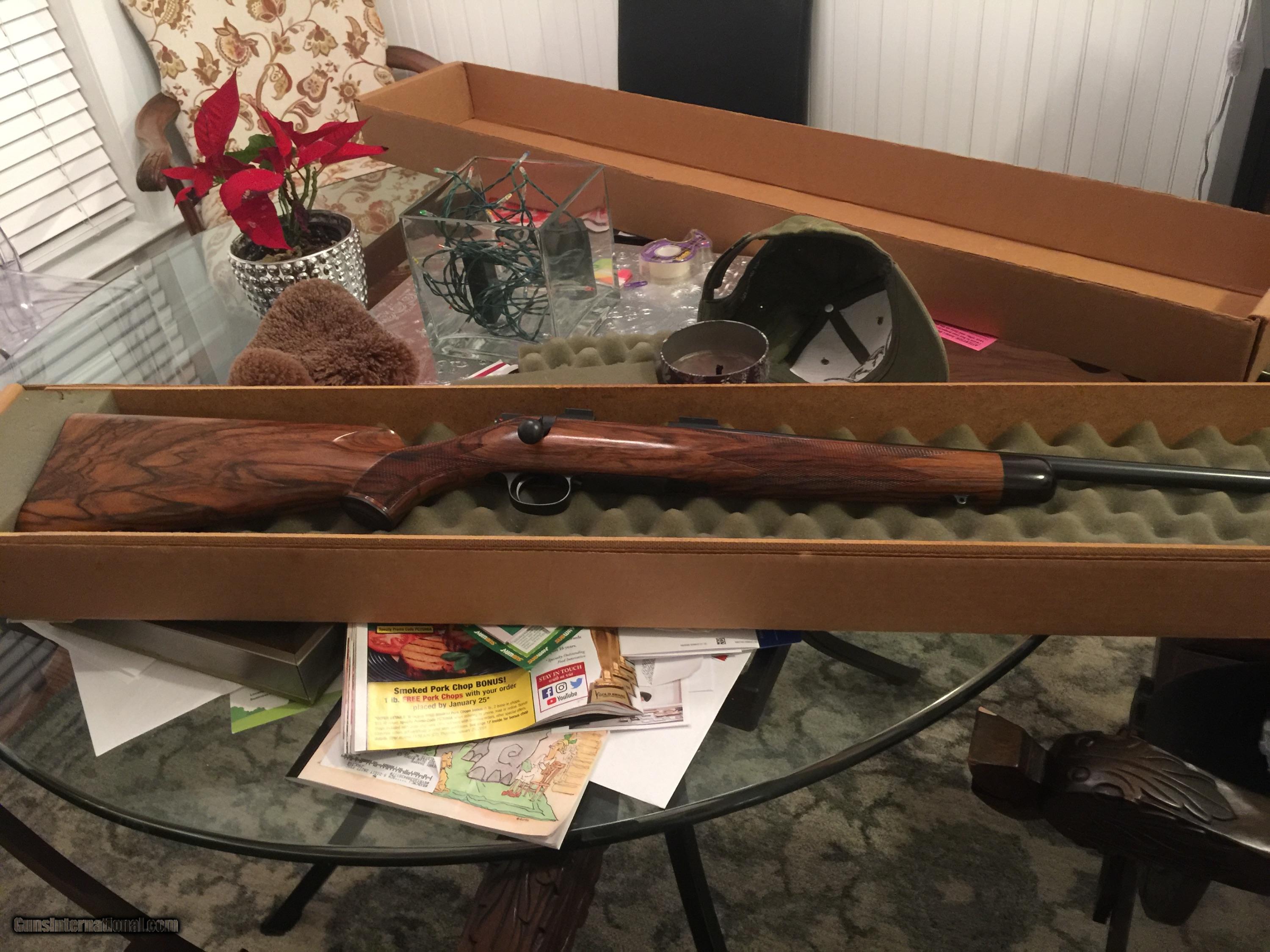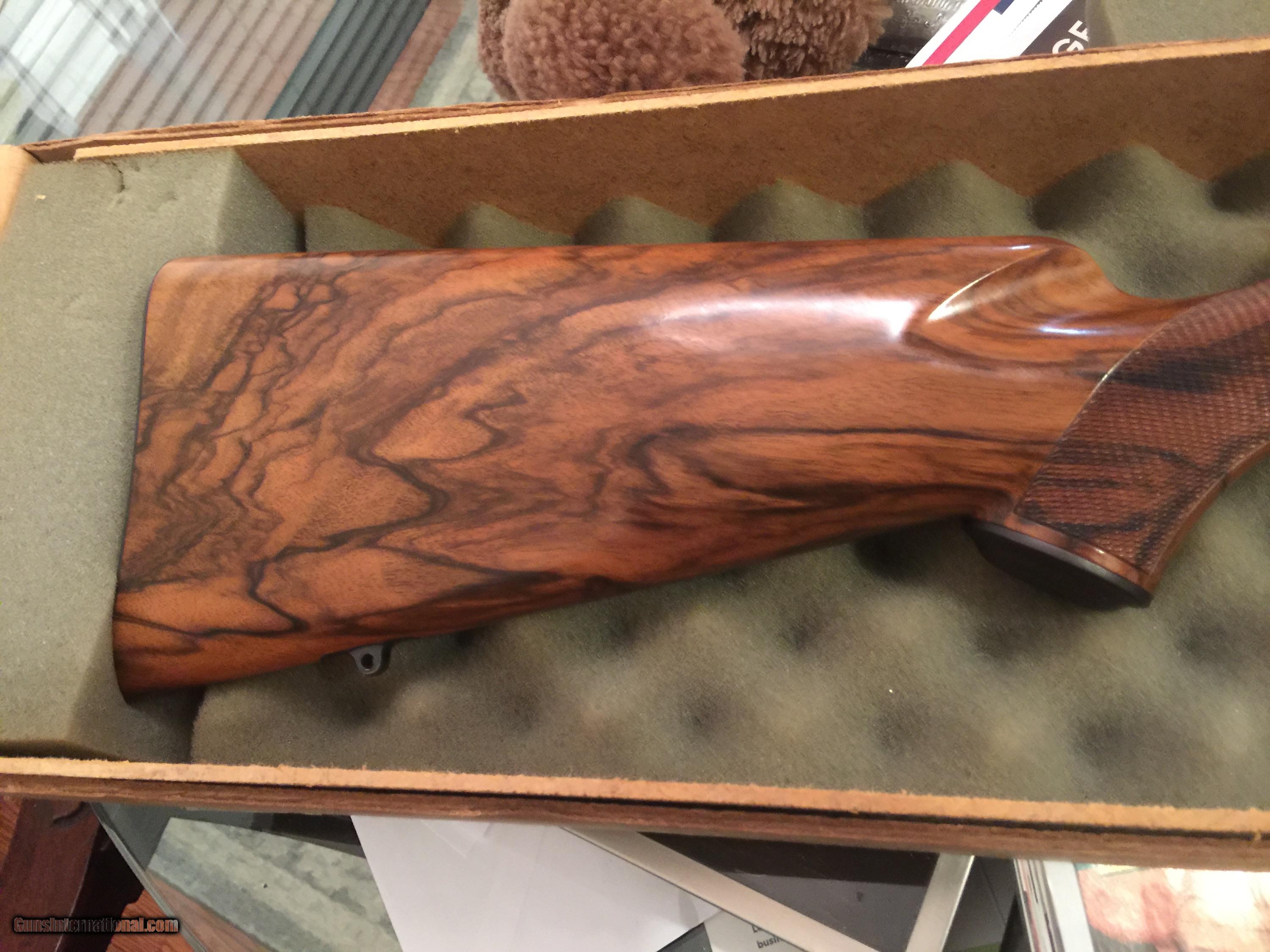 Description: Wood,Wood and more Calico CA. French Walnut stocked Kimber Custom Match serial # r XX of 200,caliber .223 with original box and rust blued Kimber quick release rings.I have owned a few and looked at many but have never seen one with this much figure.Straight grained quarter sawned examples are bringing over 8K.This is a 99% gun with the best wood I have seen on any Kimber rifle,any questions,call me at 704-975-1048,thanks for looking, John SOLD |