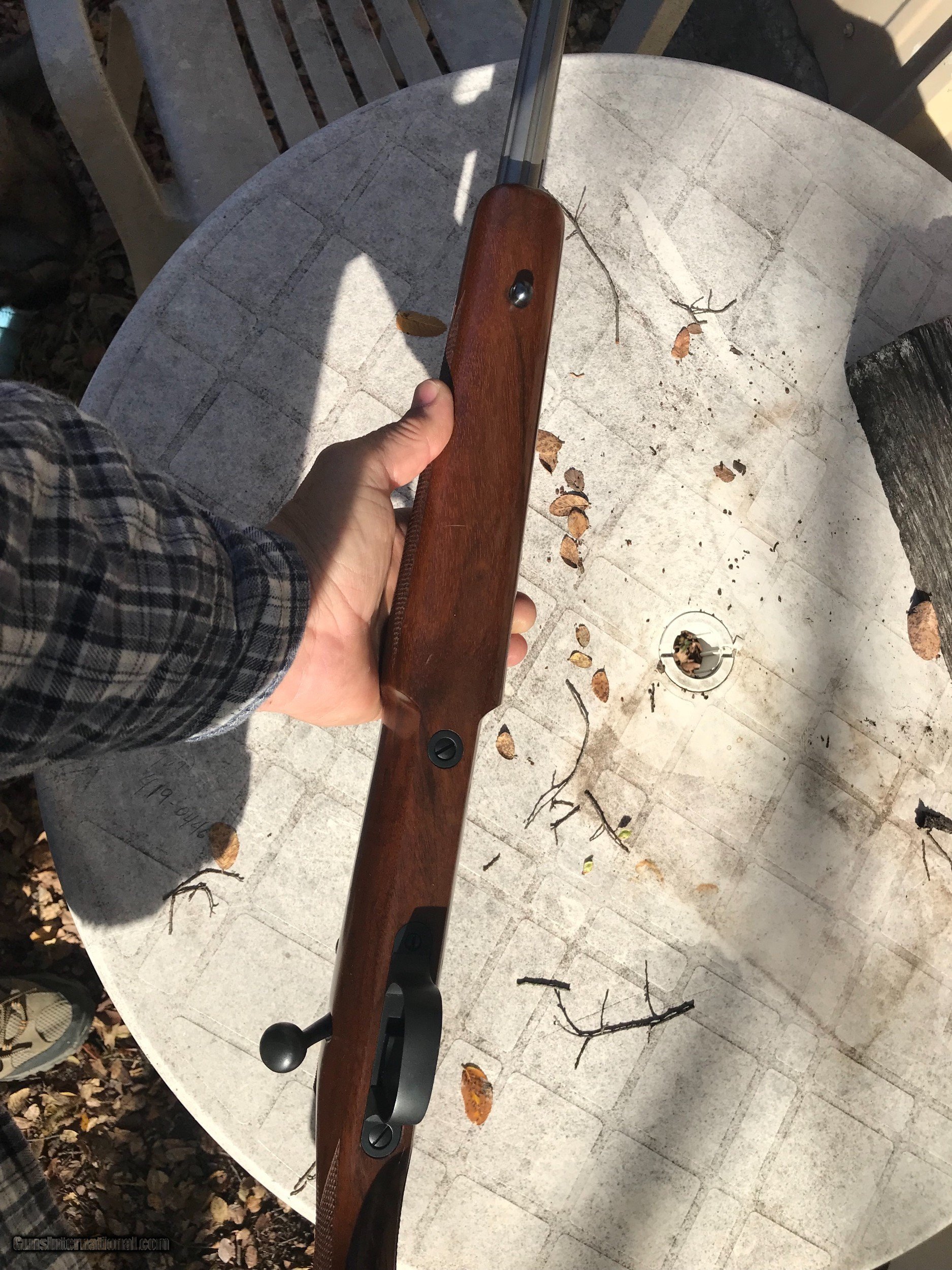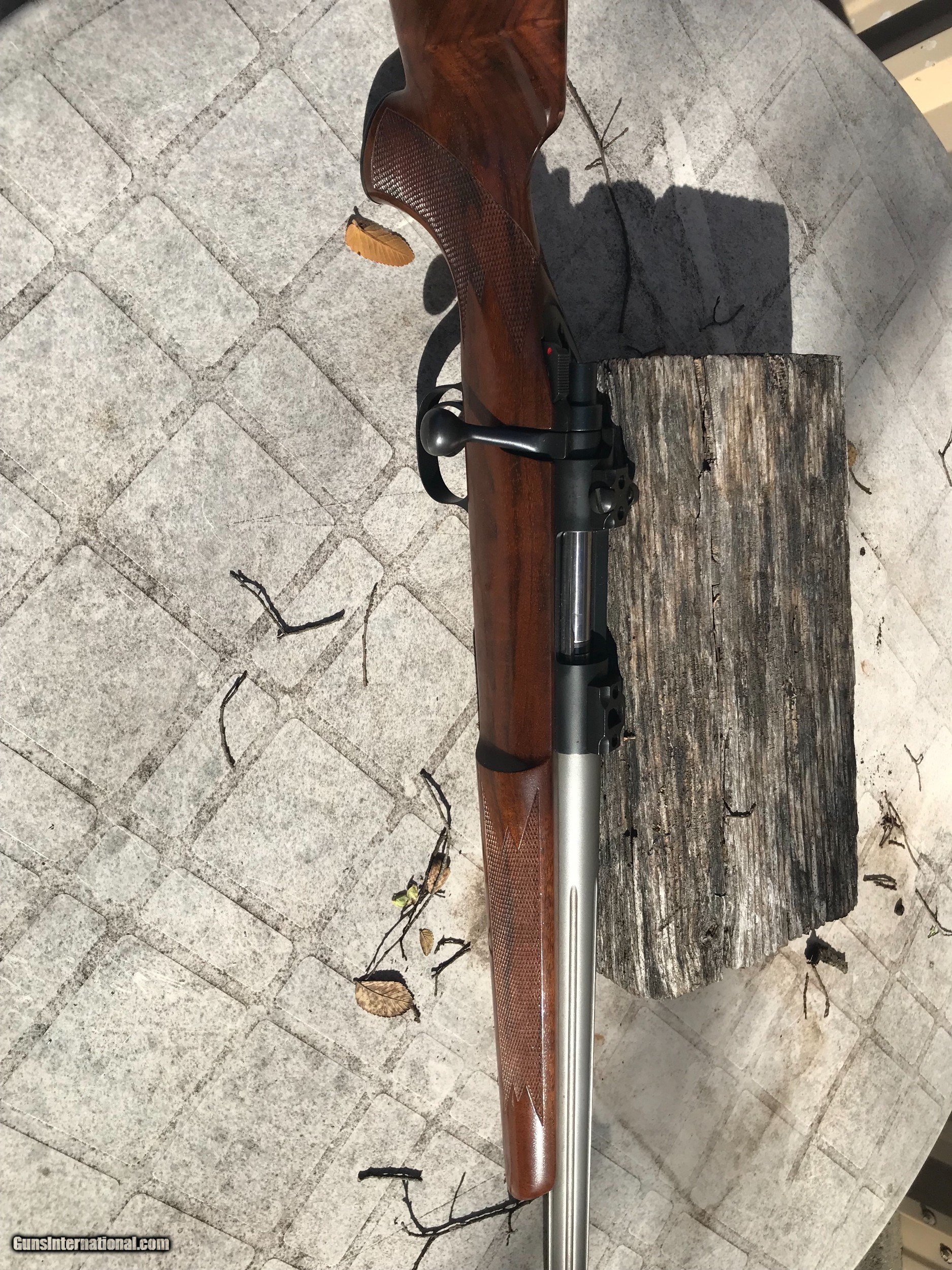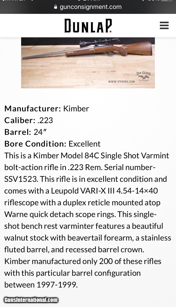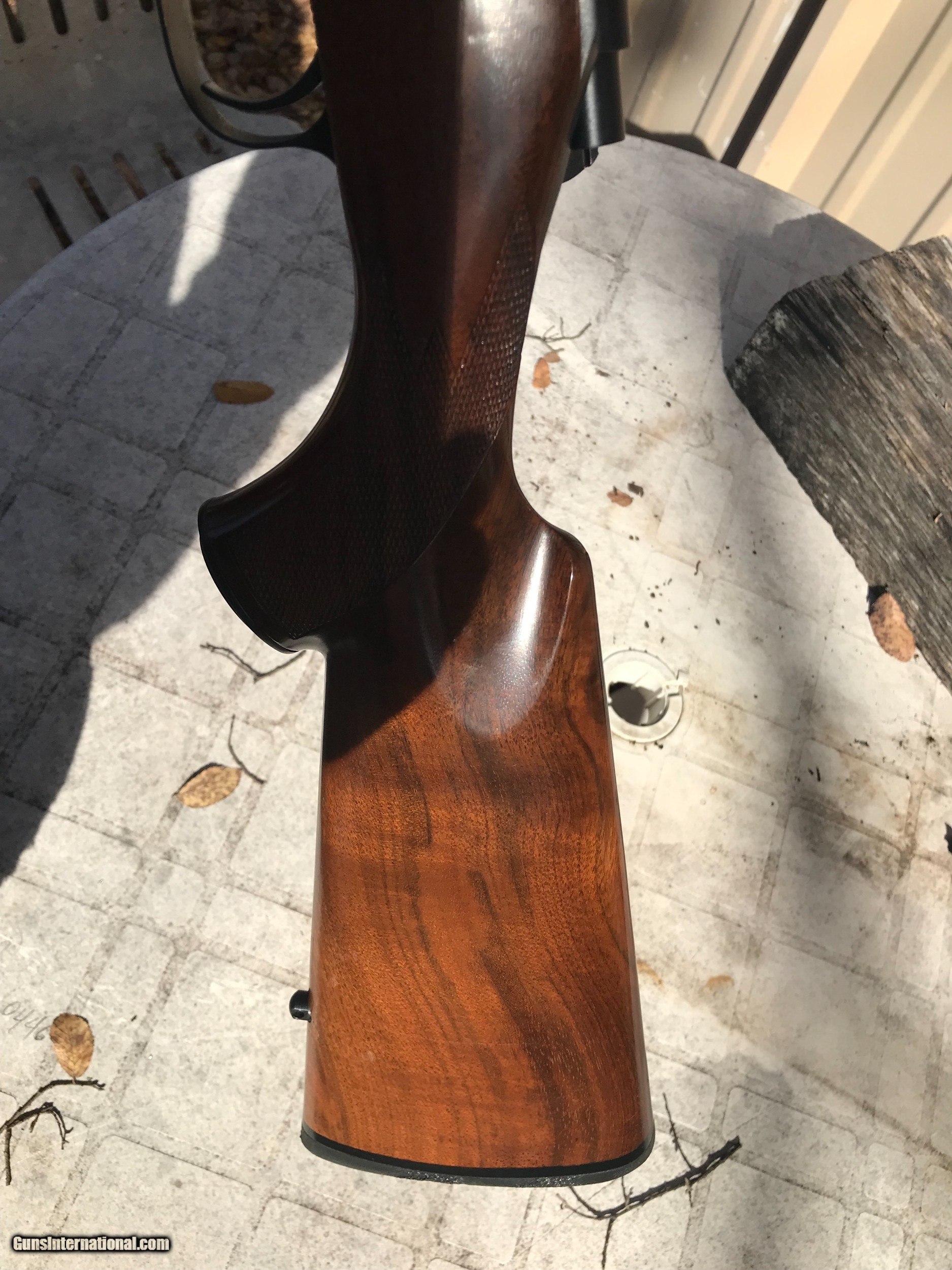 Description: Here’s a like new Kimber of Oregon custom. Only 200 made. It is a 223 caliber single shot target gun. Heavy fluted stainless barrel. Beaver tail forend and Monte Carlo butt made of beautiful Walnut with great figure. SOLD |