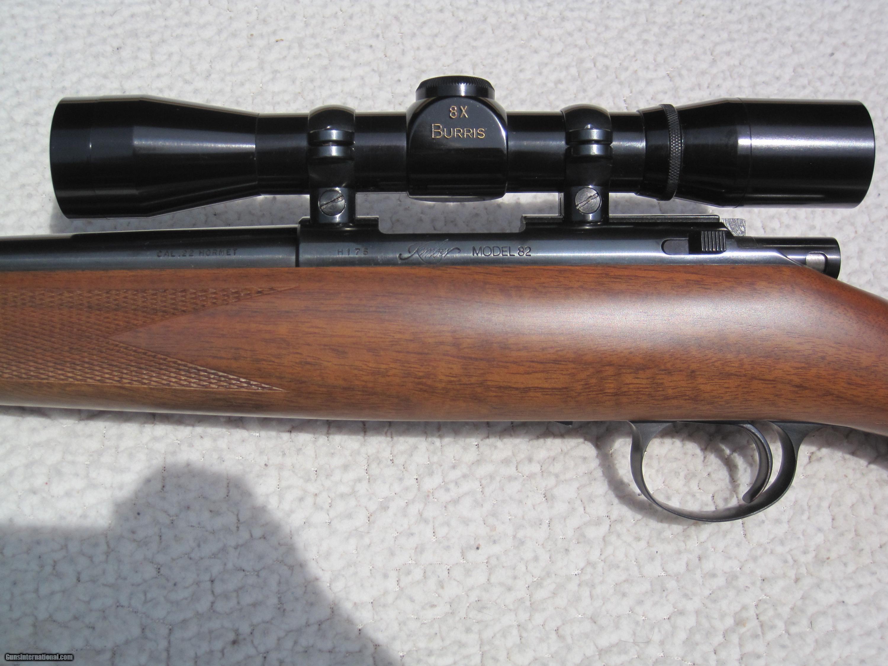 Description: Kimber of Oregon M-82 Classic 22 Hornet with rings and Burris 8X Compact scope. MINT-Perfect Metal and Wood. Not one mark on either. Unfired condition/No Box. $45 shipping which includes a new plastic rifle case. Rifle is better than the pictures show. SOLD Manufacturer: Kimber of Oregon Model: M-82 Serial Number: H |