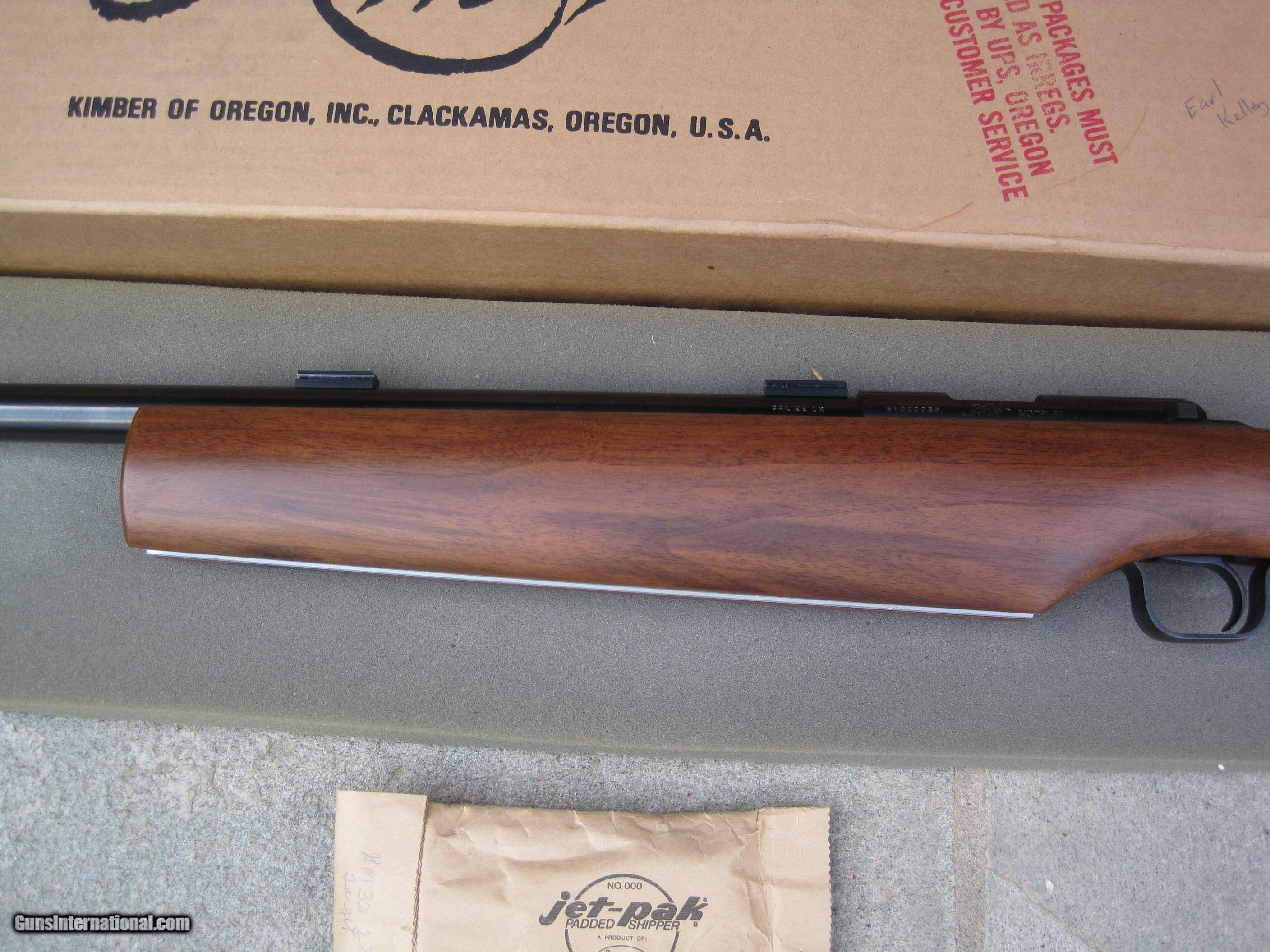 Description: The absolute BEST Kimber of Oregon M-82 Government Model for sale from the famed Earl Kelley Collection. Lots of Government Models for sale but this one is the BEST. Even the bolt has not been in the rifle since it left the Kimber of Oregon factory 30 years ago. Mint rifle. Un-opened Sight Package and great looking walnut stock. $65 shipping. SOLD Rifle Caliber: .22 Long Rifle Manufacturer: Kimber of Oregon Model: Government Serial Number: 000032 Condition: NEW |