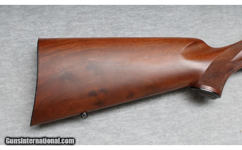 Description: This Kimber Model 82 is a right-hand bolt-action rifle in .22 Hornet. It has a 22-inch barrel. It is milled to receive 3/8" scope rings. No iron sights. The butt stock is walnut with a checkered grip and a black steel pistol-grip cap. The forearm is checkered walnut. It has sling swivel bases attached. The centerfire .22 Hornet is a varminting and small-game hunting cartridge that was introduced in 1930. It has ballistics somewhere between the .22 WMR and the .223 Remington. It comes with one magazine. This rifle appears to be unfired. .22 Hornet SOLD Metal Condition: Like new Wood Condition: Like new Bore Condition: Bright Barrels: 22 Inches Triggers: Factory Stock Dimensions: 13 1/2 Inches Fore End: Checkered Walnut Butt Pad: Metal Pad Item Location: La Vista, NE |