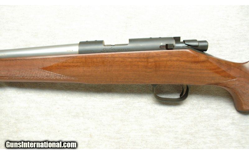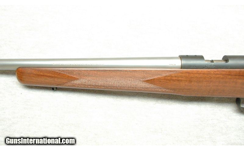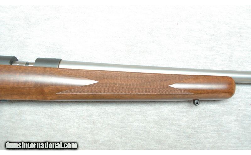 Description: This Kimber Model 82 is a right-hand bolt-action rifle in .22 Long Rifle Cal. It has a 22-inch barrel. Drilled and tapped for scope mount bases. No iron sights. The butt stock is a checkered grip walnut pistol grip with a black steel cap. The forearm is a checkered grip walnut. It has sling swivel bases attached. This beautiful rifle appears to be unfired. It comes with original box and 1 magazine. .22 Long Rifle SOLD Chambers: .22 Long Rifle Metal Condition: Like New Wood Condition: Like New with a very slight mark from handling Bore Condition: Like New Barrels: 22 Inch Stainless Triggers: Factory Stock Dimensions: LOP 13 3/4 Inch Fore End: Checkered Walnut Butt Pad: Factory rubber pad Sights: Drilled and tapped for scope bases Item Location: La Vista, NE |